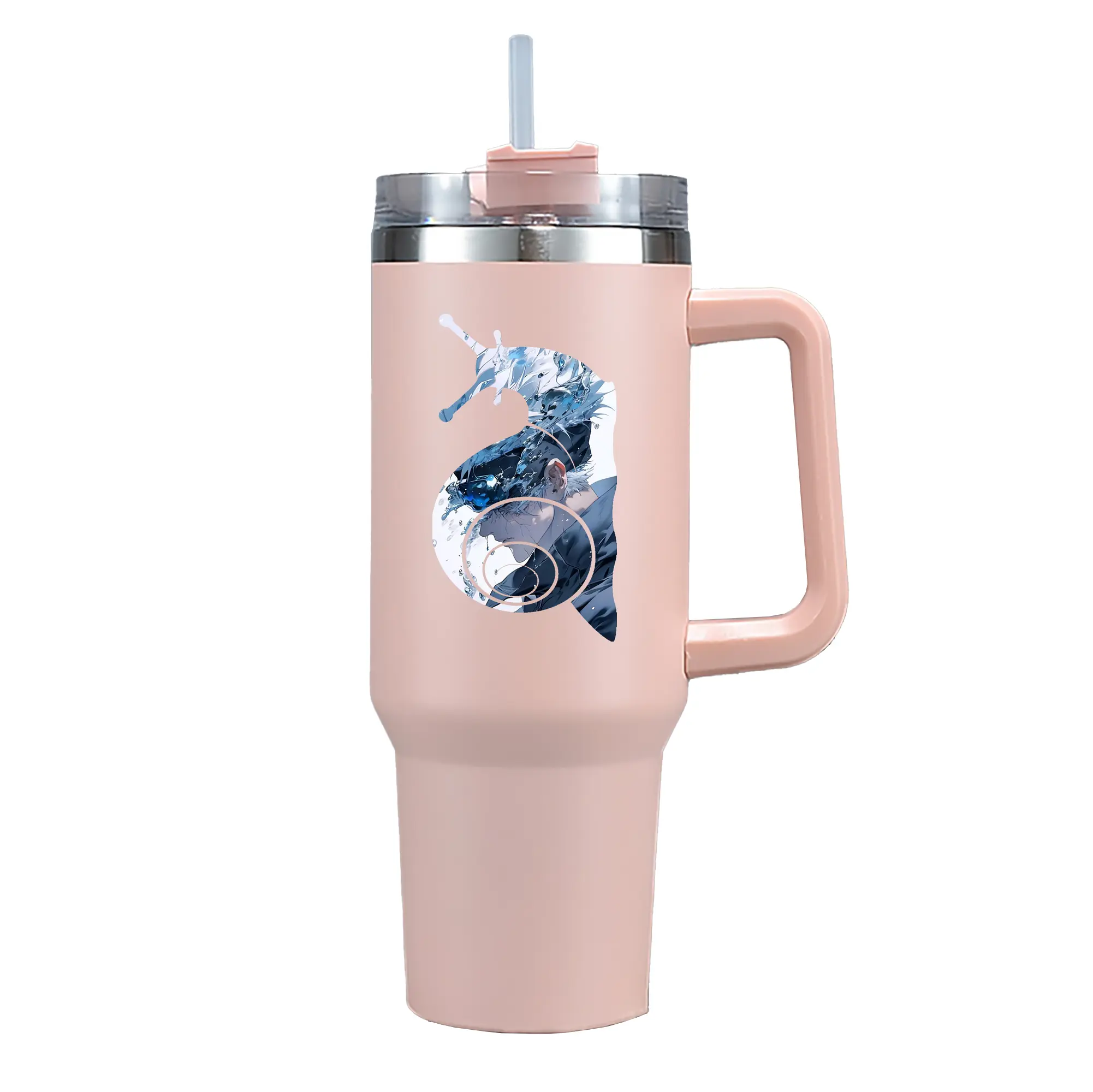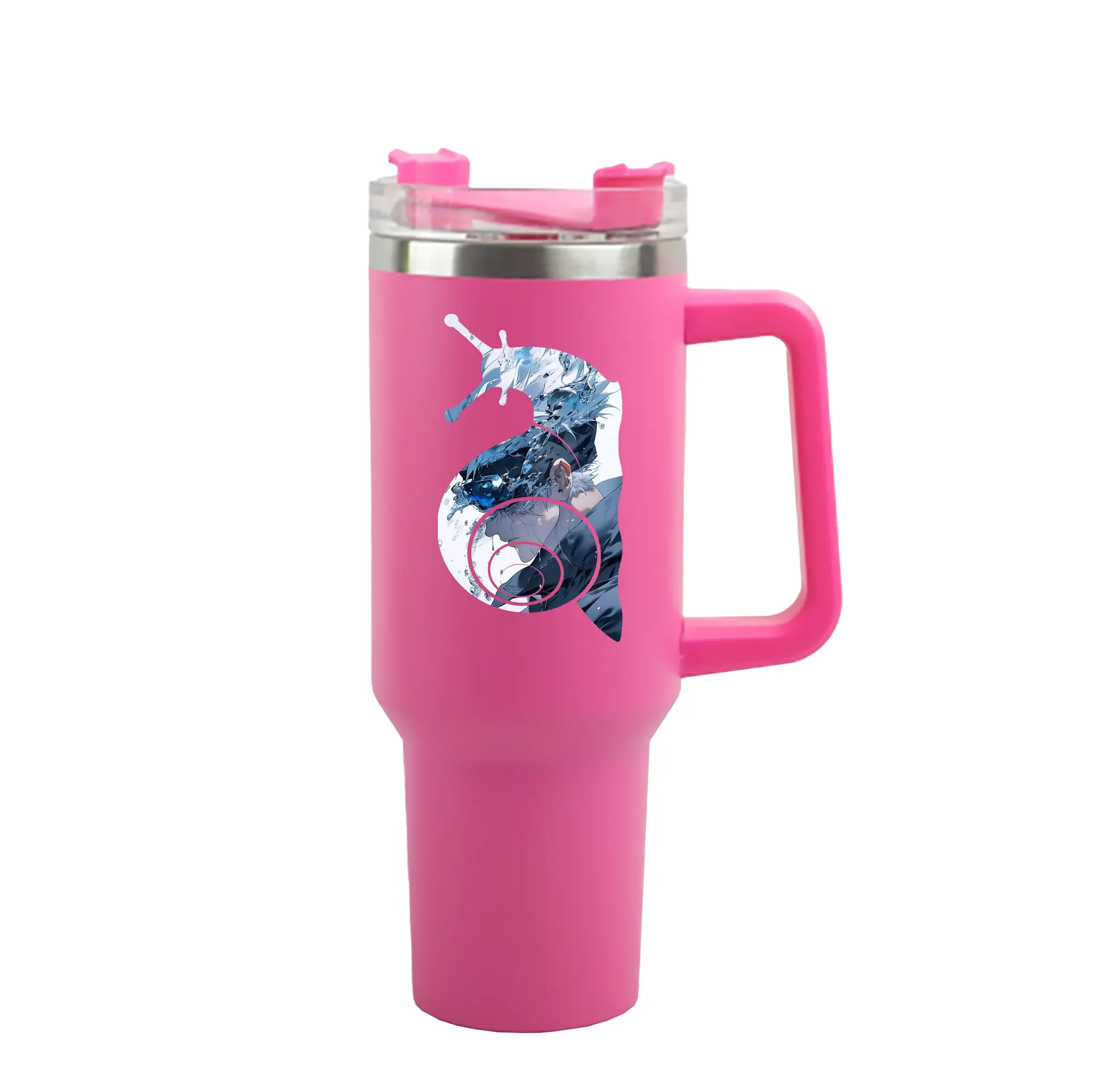1200mL(40オンス)の大容量ハンドル付きカータンブラー。キラキラと輝くクリスタルステッカーデザインが、毎日の使用に華やかさをプラスします。食品グレード304ステンレスの内側と頑丈な201ステンレスの外側を採用し、耐久性・耐腐食性・安全性を兼ね備えています。