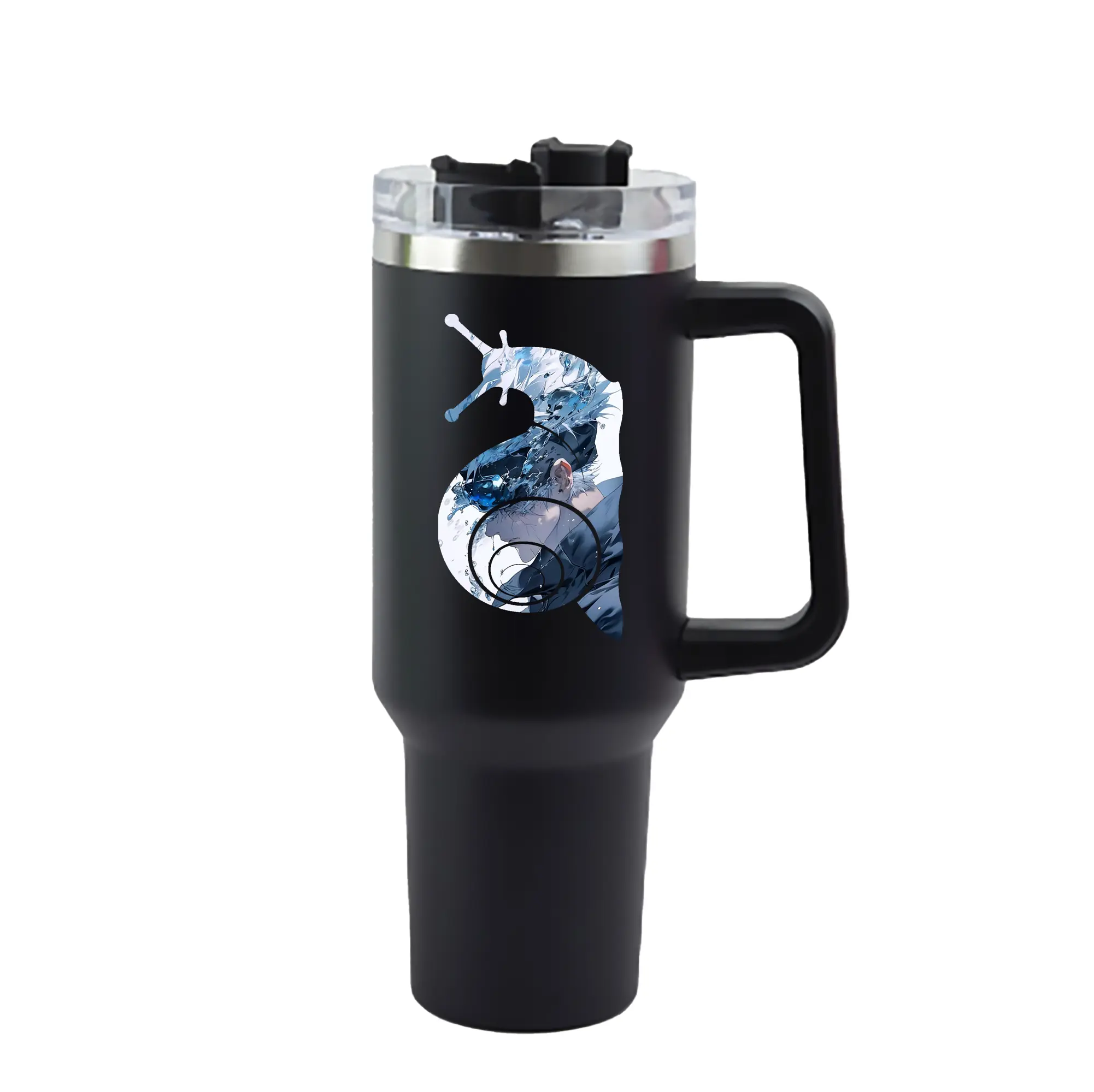 呪術廻戦 グッズ,五条 悟 - 1200mL 車用タンブラー ・ クリスタルステッカー ・ 304ステンレス 内側 ・ 201ステンレス 外側 ・ 保温 保冷 ・ ハンドル&ストロー付き ・ 通勤 ドライブ アウトドア用