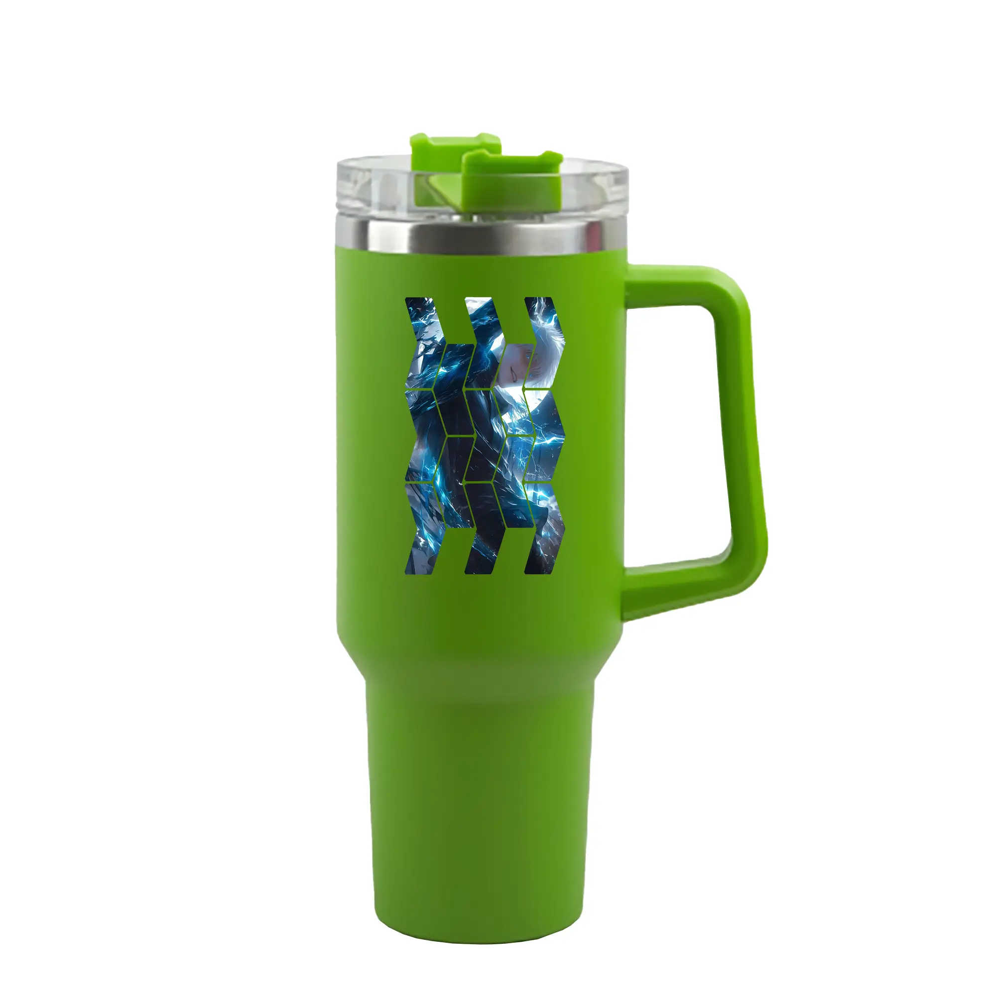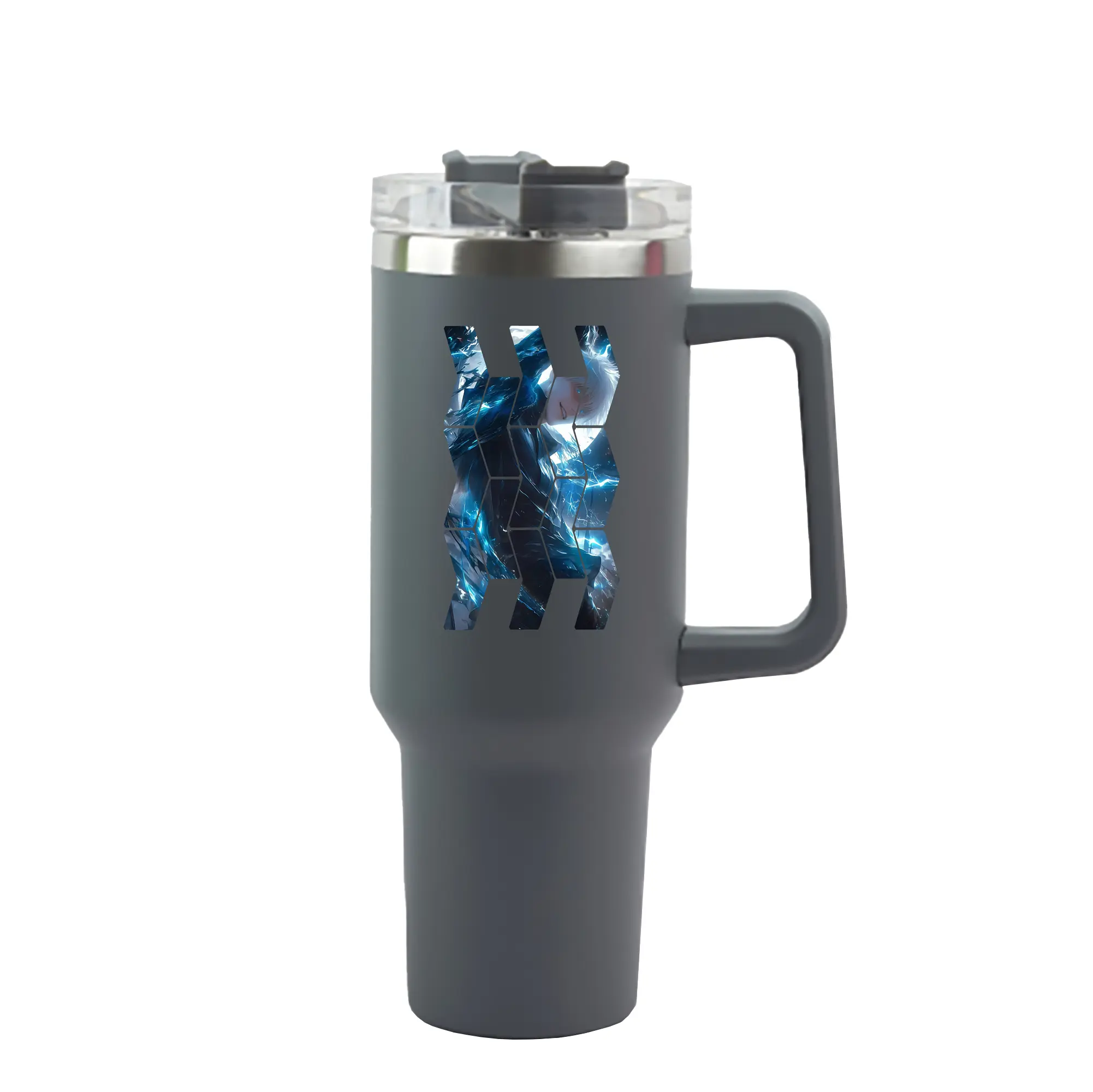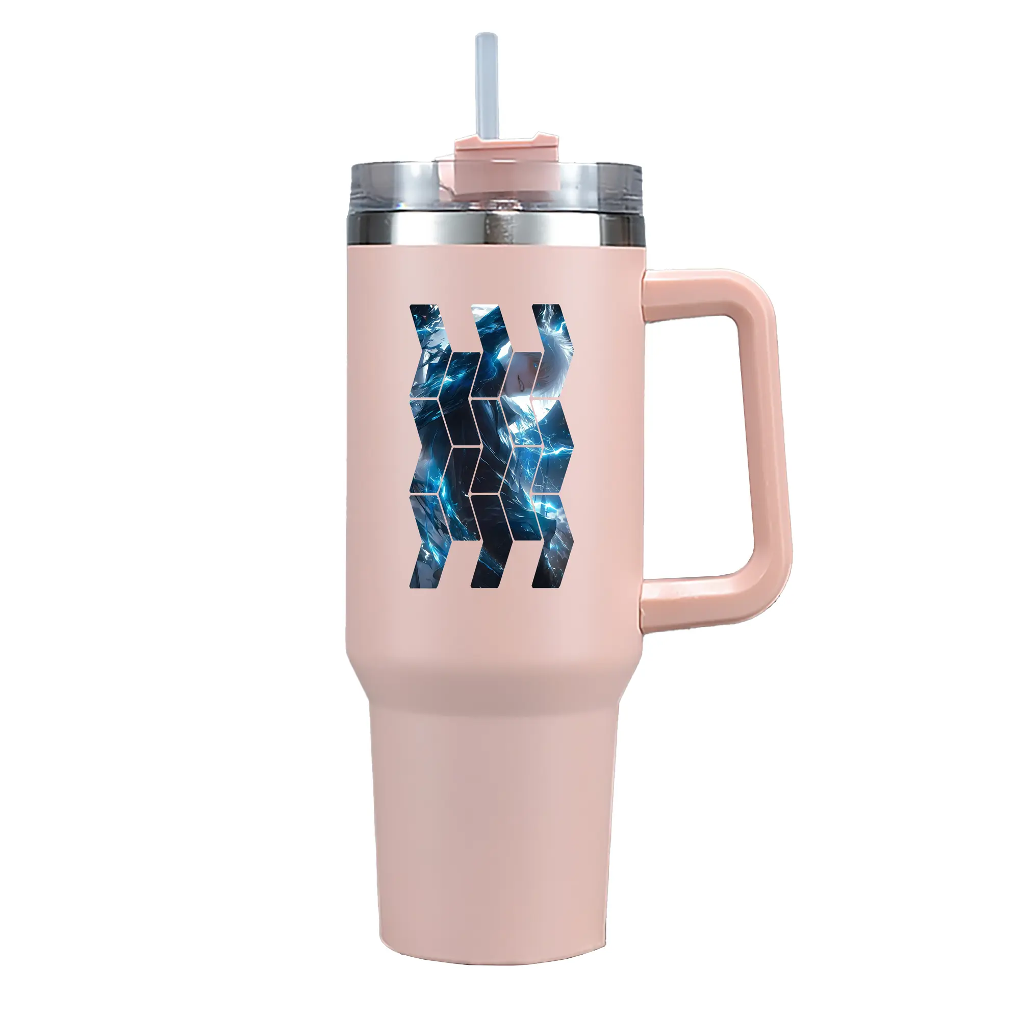 1200mL(40オンス)の大容量ハンドル付きカータンブラー。キラキラと輝くクリスタルステッカーデザインが、毎日の使用に華やかさをプラスします。食品グレード304ステンレスの内側と頑丈な201ステンレスの外側を採用し、耐久性・耐腐食性・安全性を兼ね備えています。