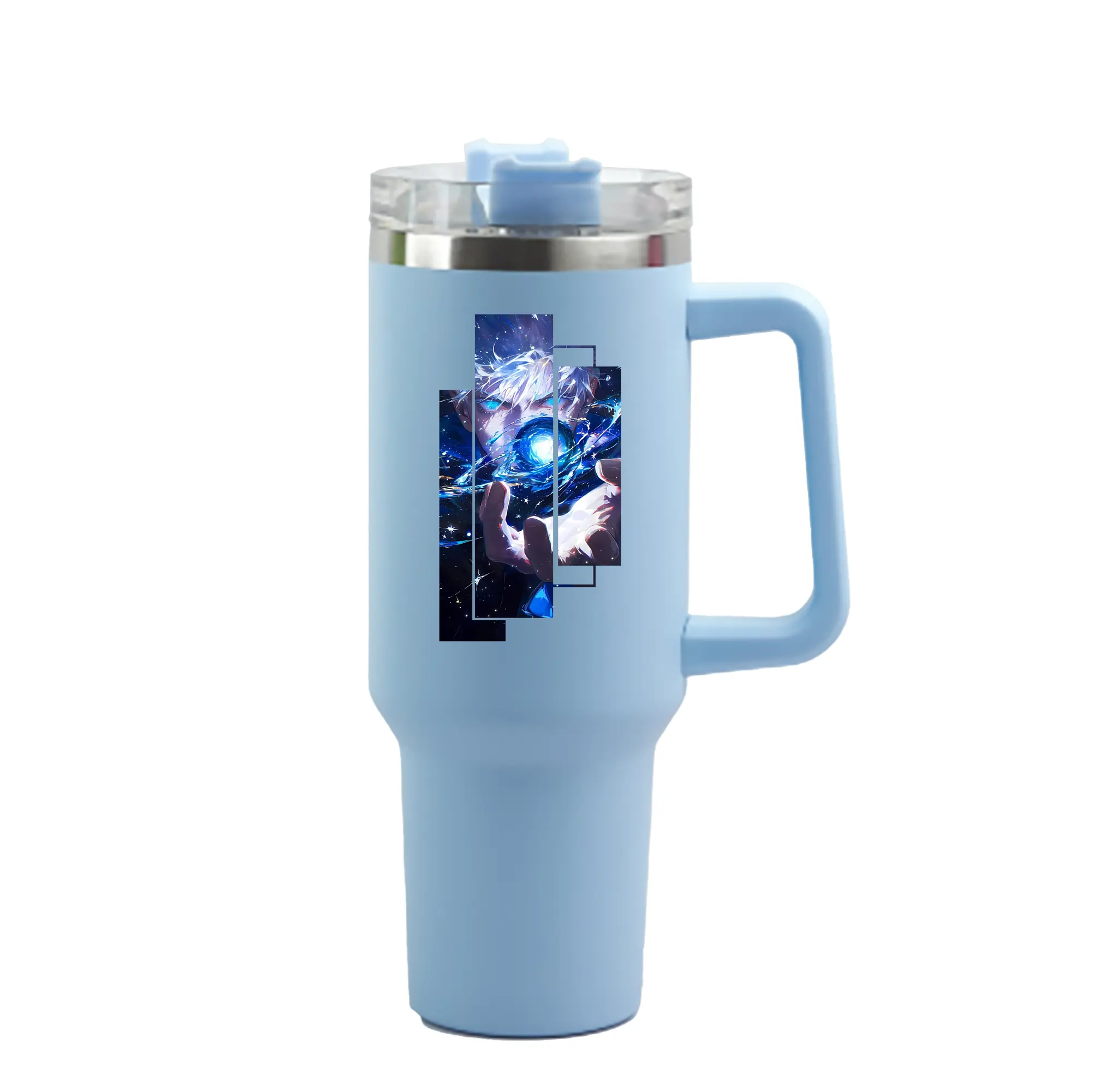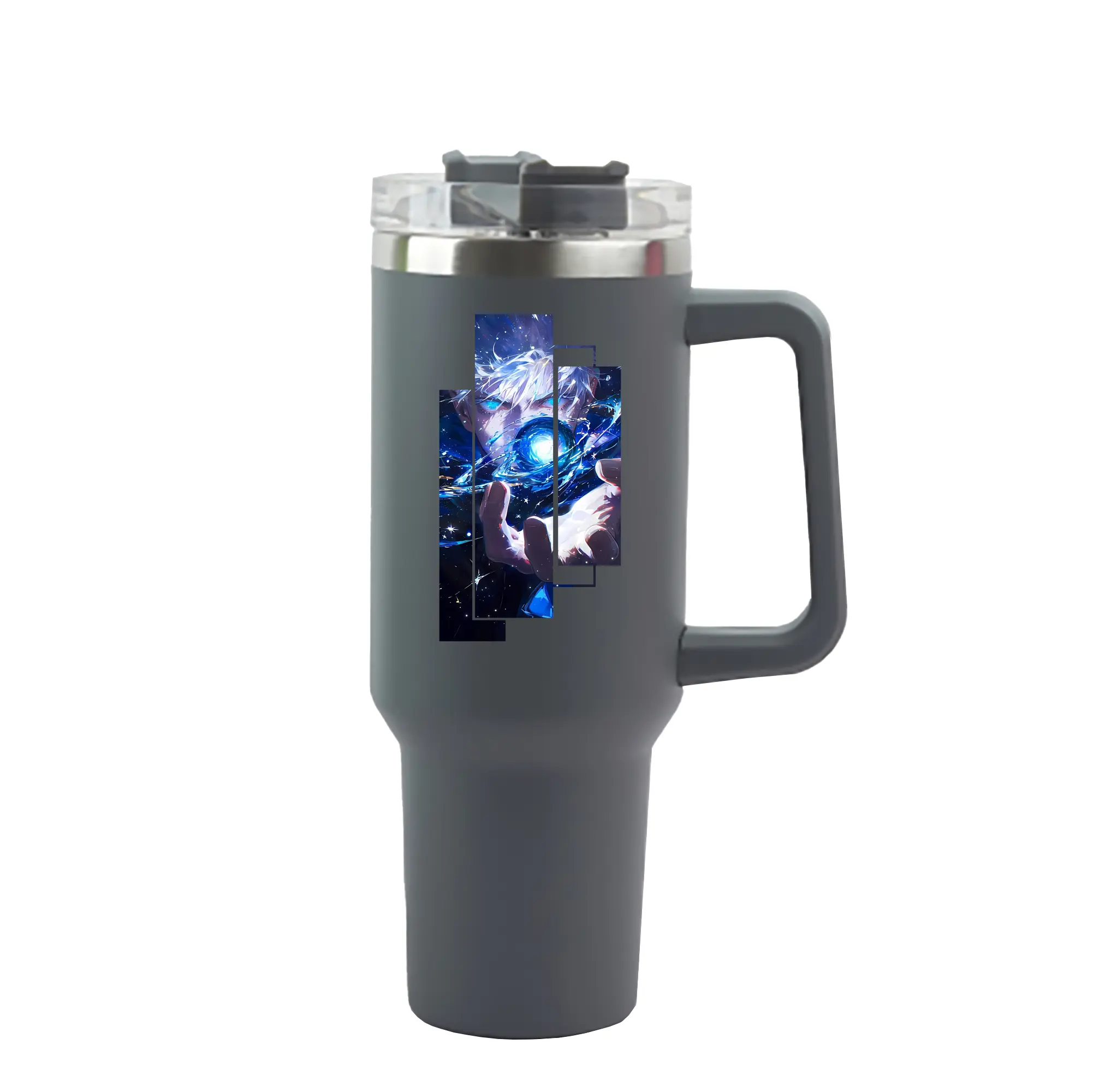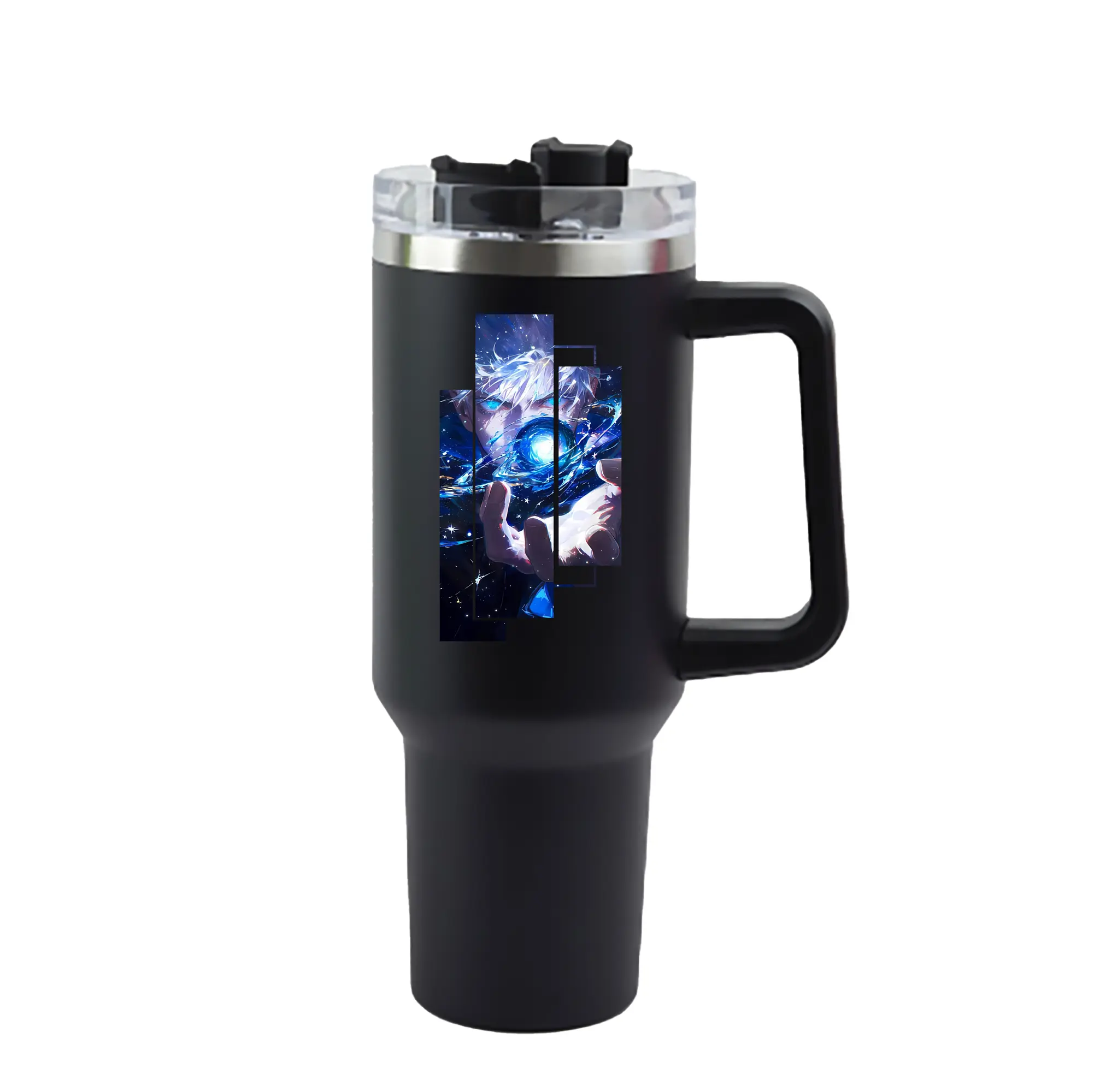 呪術廻戦 グッズ,五条 悟 - 1200mL 車用タンブラー ・ クリスタルステッカー ・ 304ステンレス 内側 ・ 201ステンレス 外側 ・ 保温 保冷 ・ ハンドル&ストロー付き ・ 通勤 ドライブ アウトドア用