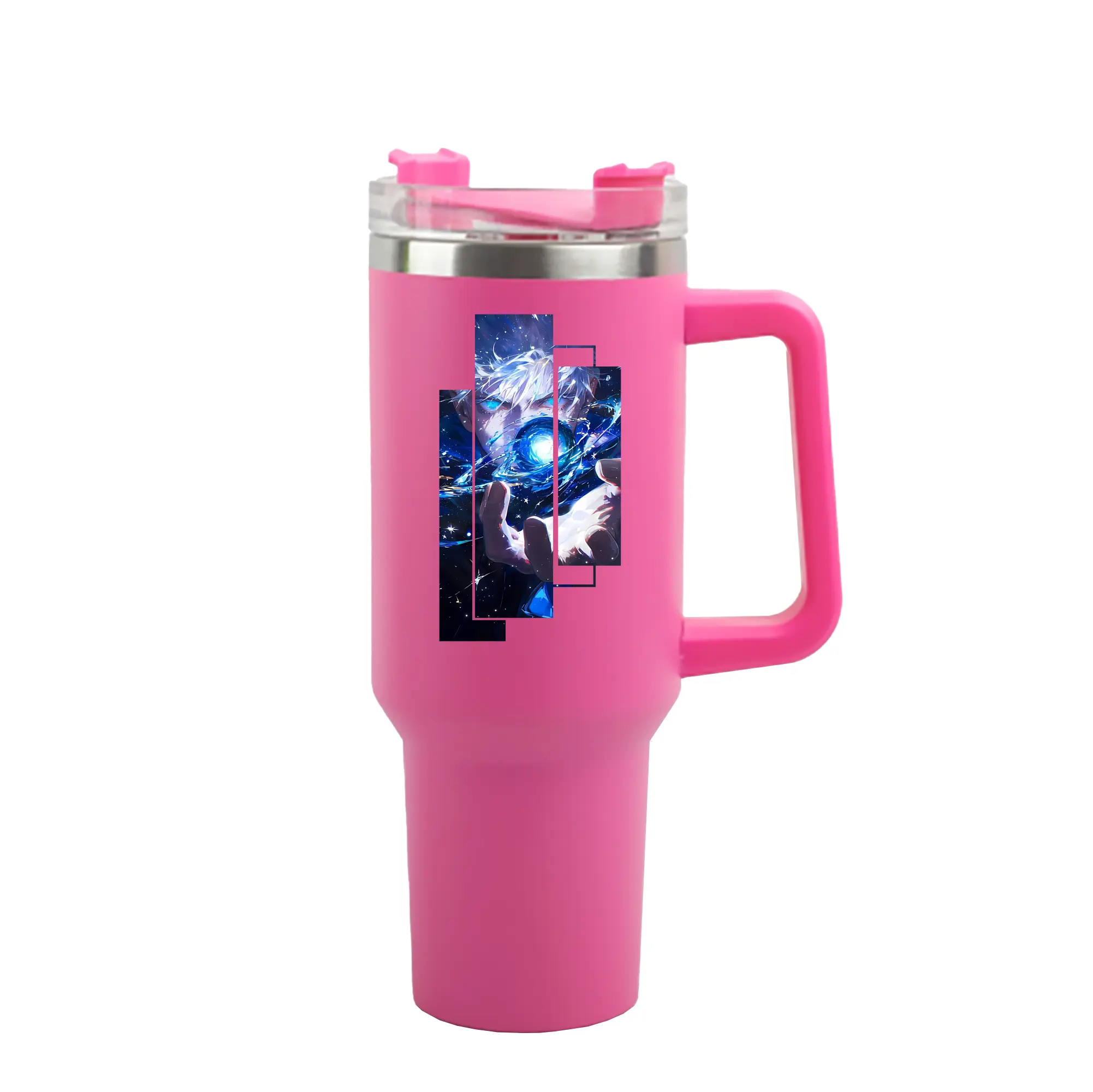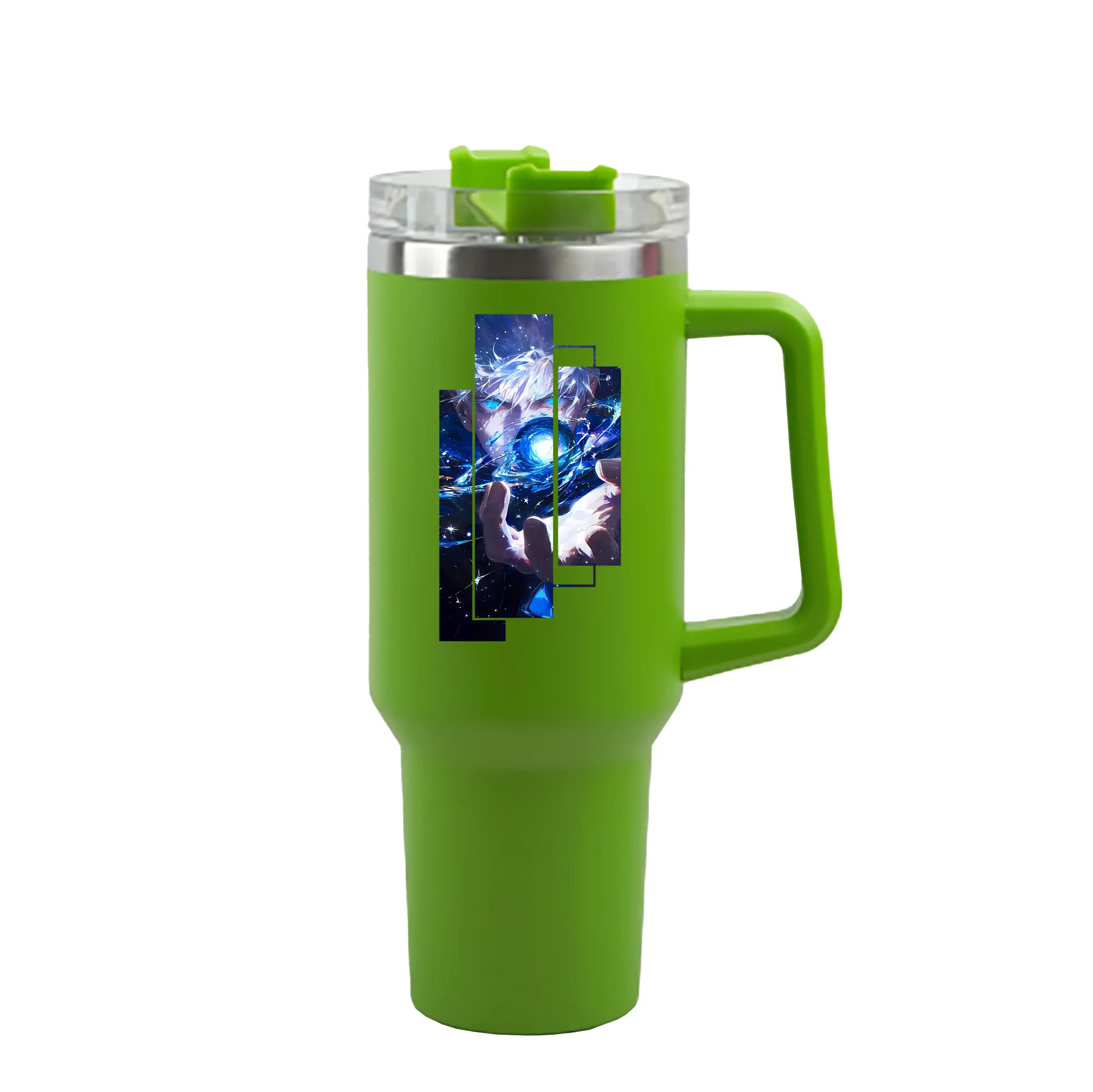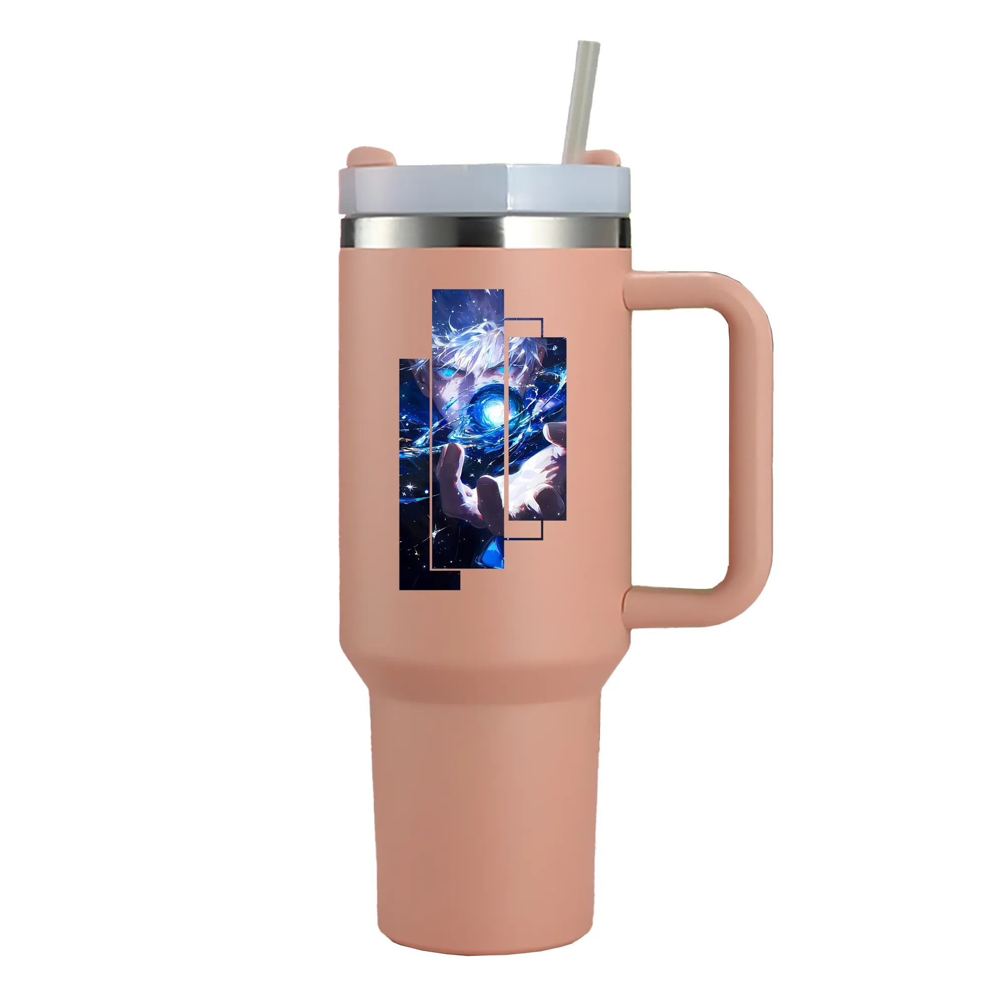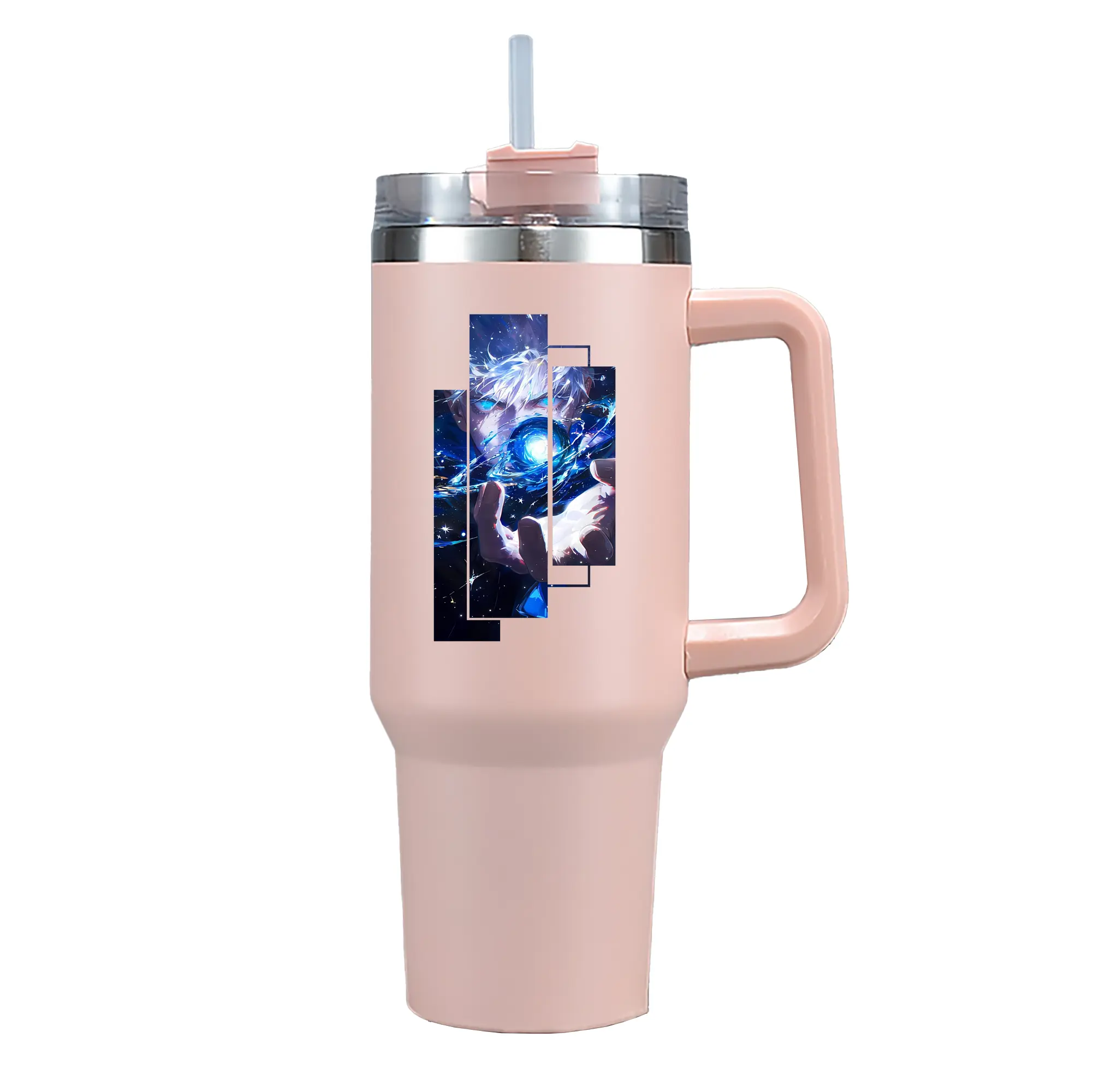 呪術廻戦 グッズ,五条 悟 - 1200mL 車用タンブラー ・ クリスタルステッカー ・ 304ステンレス 内側 ・ 201ステンレス 外側 ・ 保温 保冷 ・ ハンドル&ストロー付き ・ 通勤 ドライブ アウトドア用