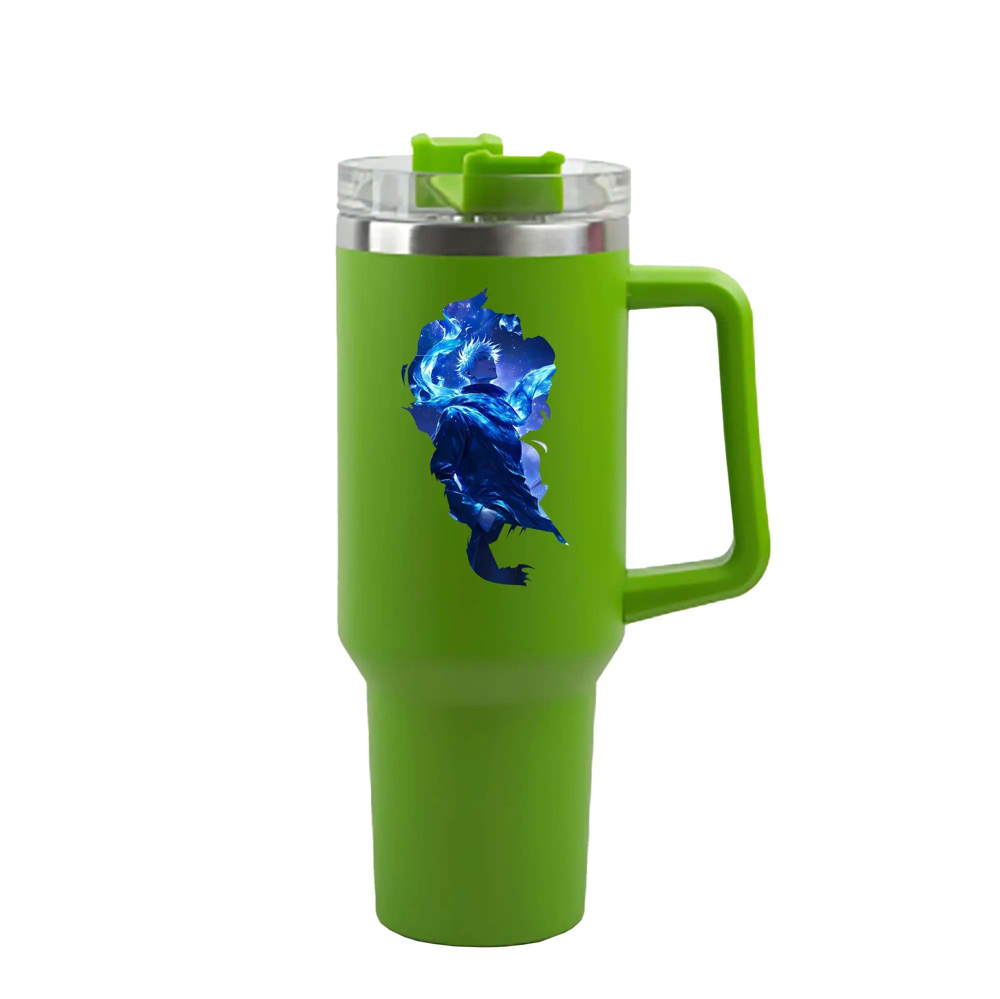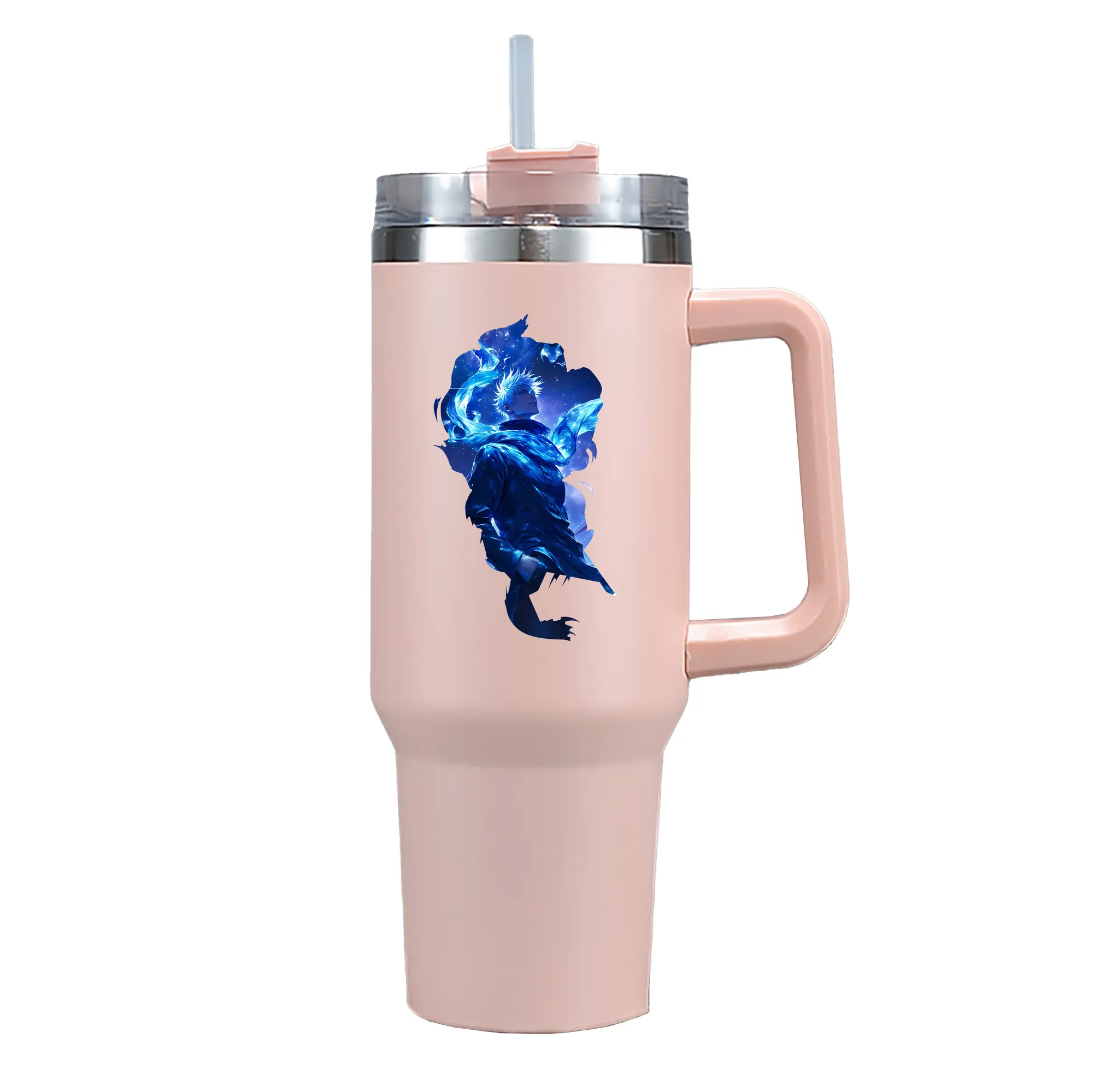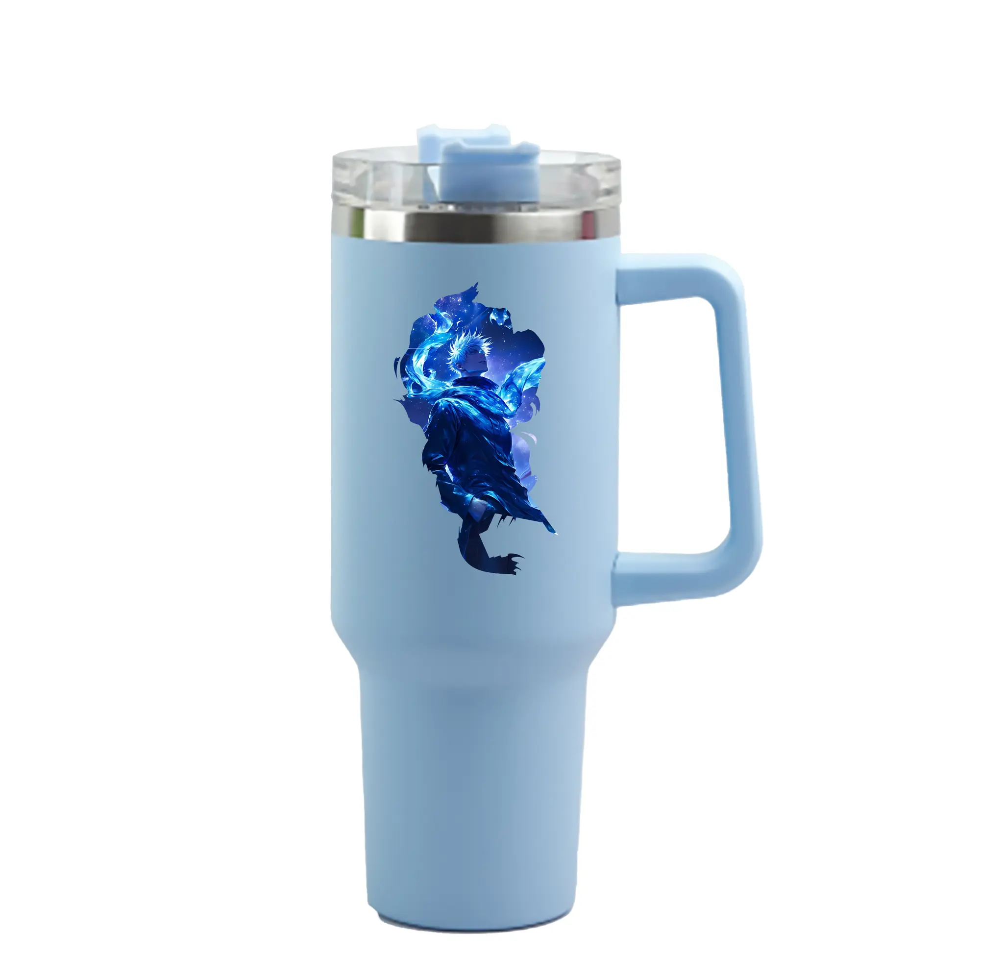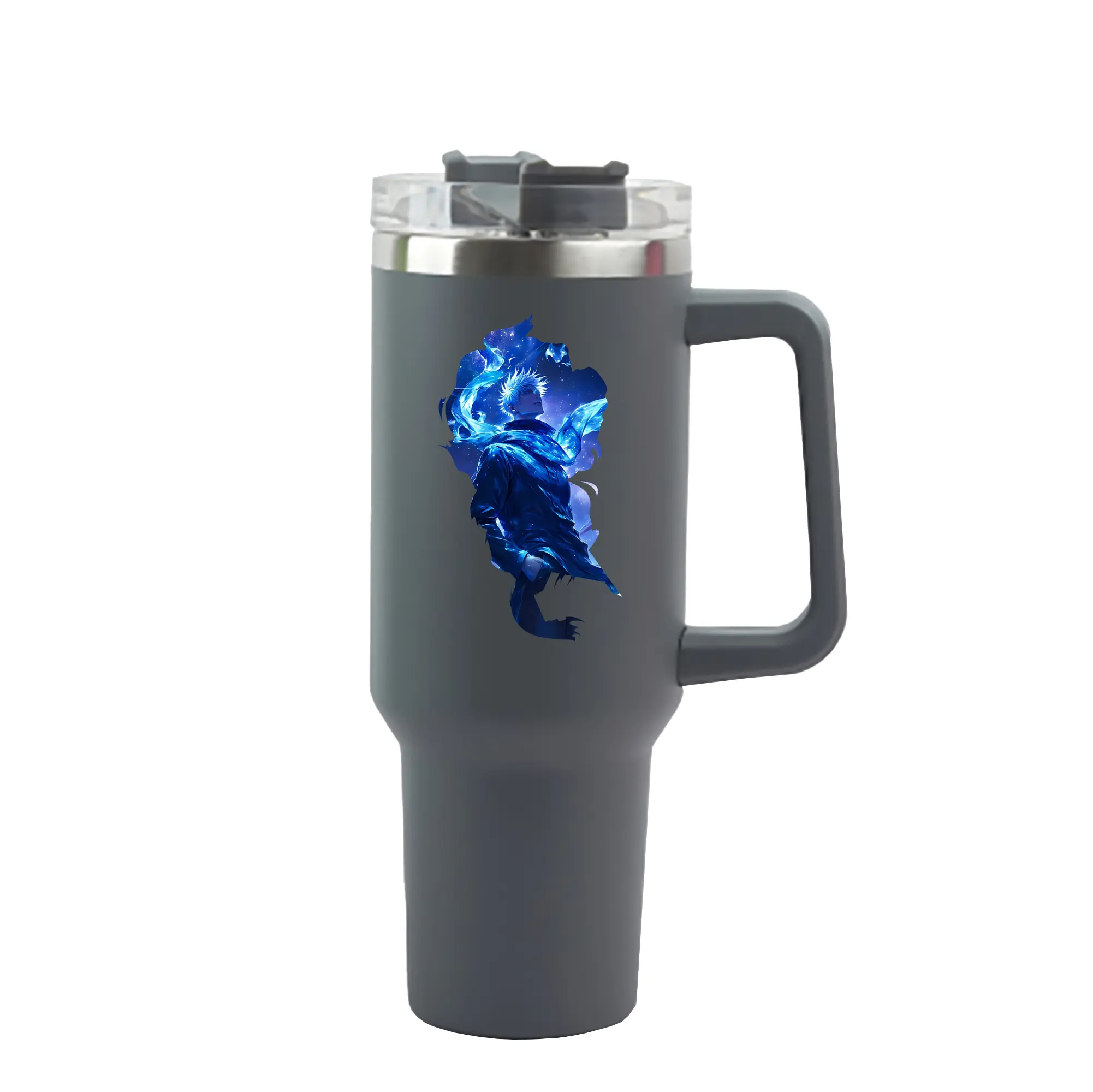 呪術廻戦 グッズ,五条 悟 - 1200mL 車用タンブラー ・ クリスタルステッカー ・ 304ステンレス 内側 ・ 201ステンレス 外側 ・ 保温 保冷 ・ ハンドル&ストロー付き ・ 通勤 ドライブ アウトドア用