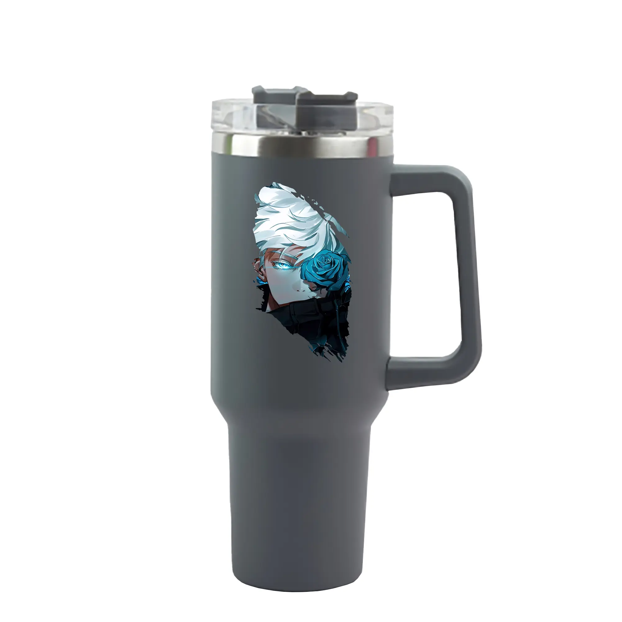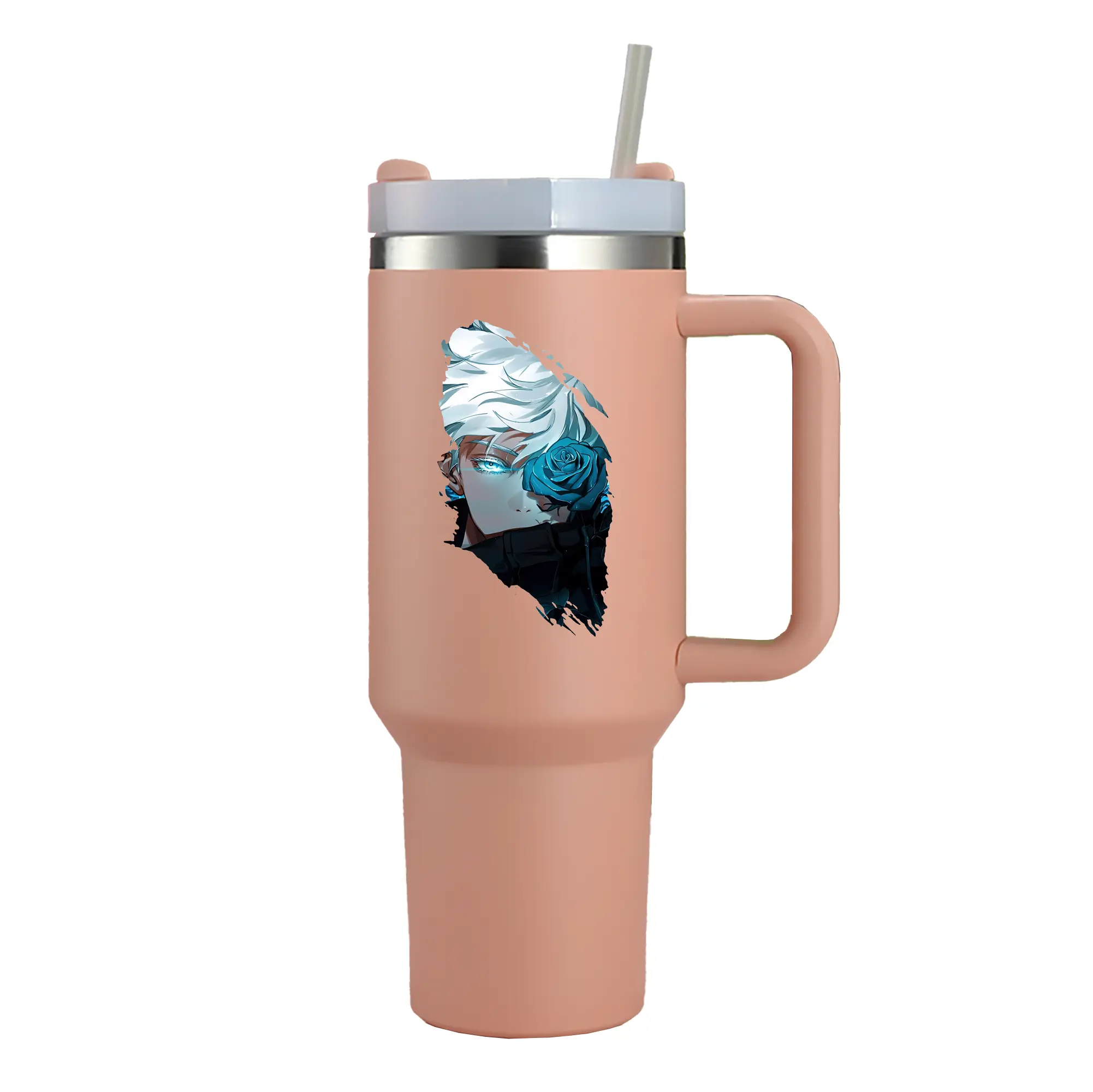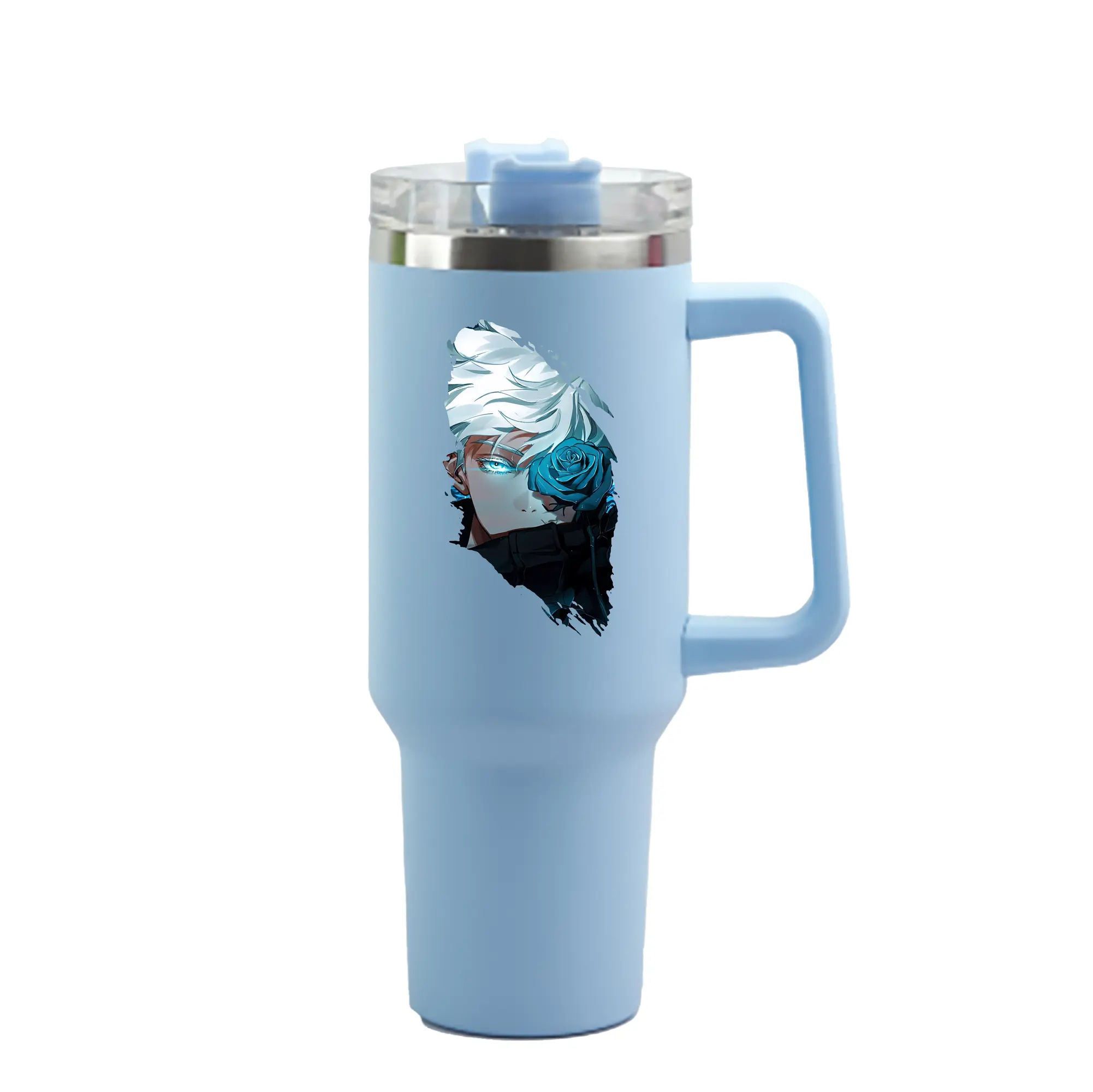 呪術廻戦 グッズ,五条 悟 - 1200mL 車用タンブラー ・ クリスタルステッカー ・ 304ステンレス 内側 ・ 201ステンレス 外側 ・ 保温 保冷 ・ ハンドル&ストロー付き ・ 通勤 ドライブ アウトドア用