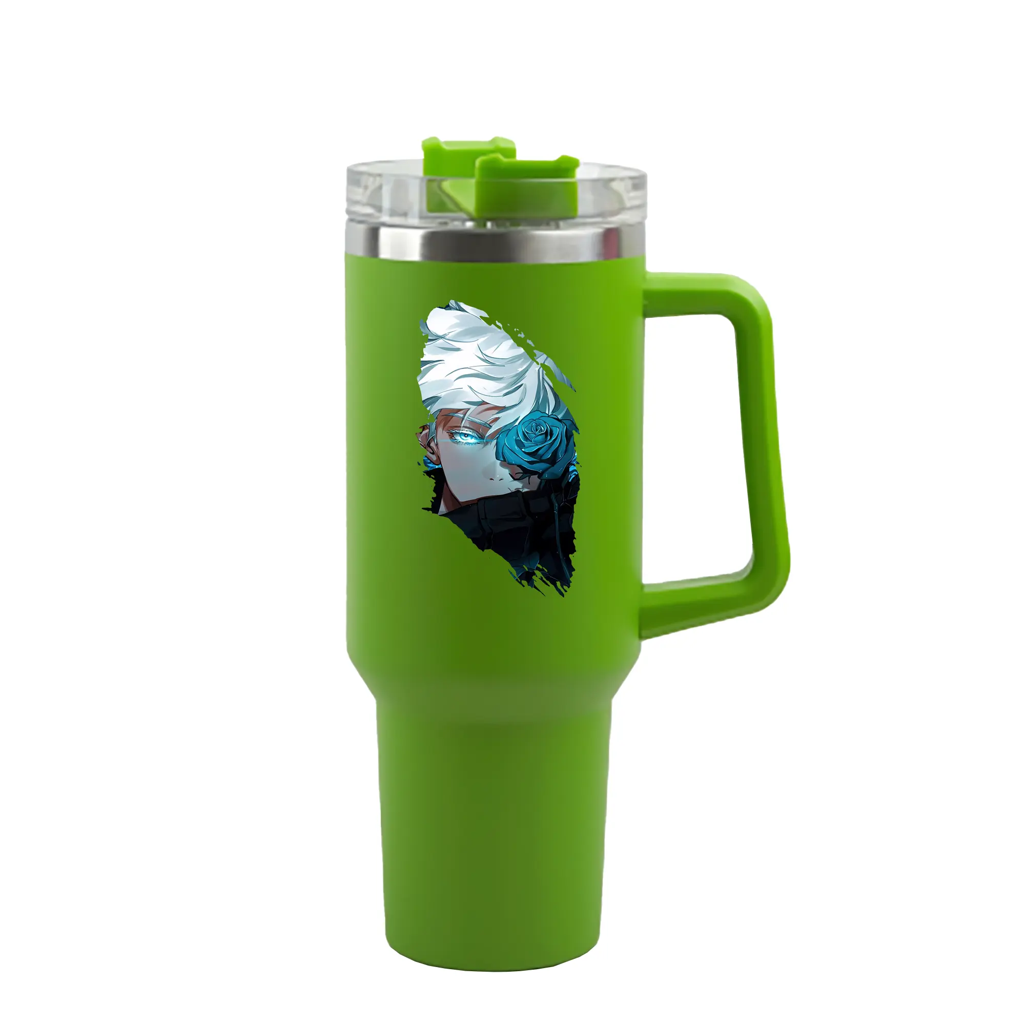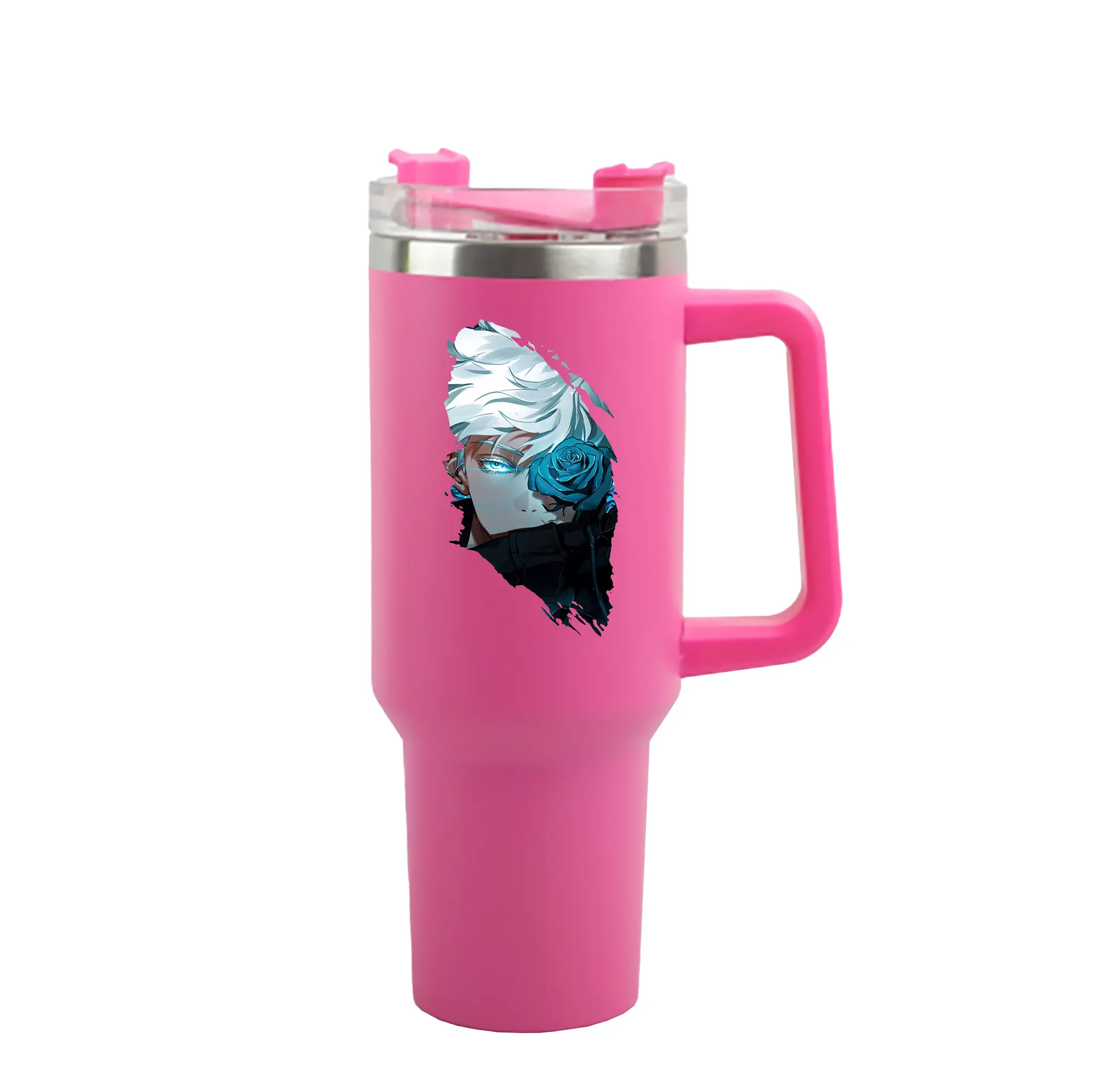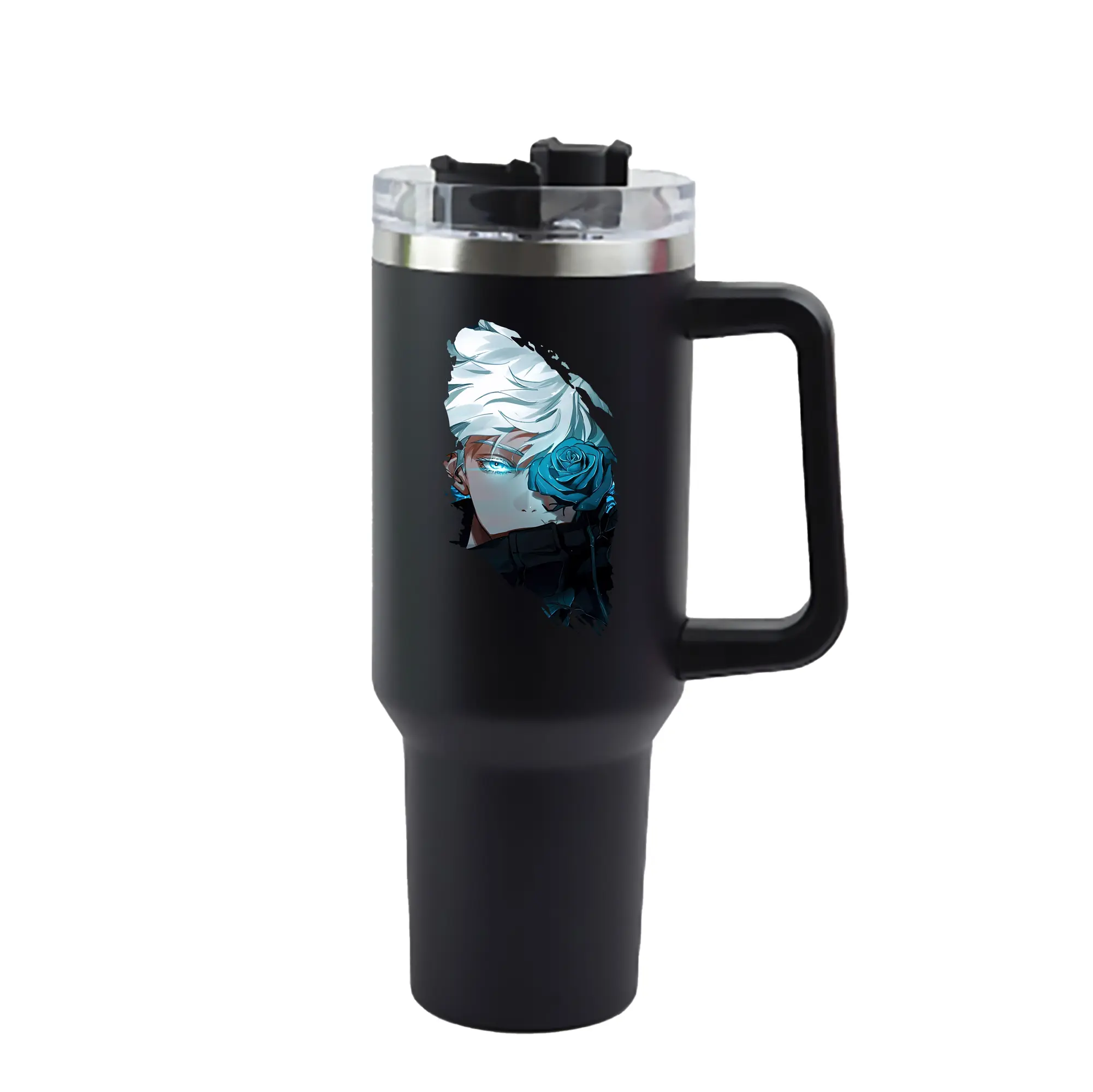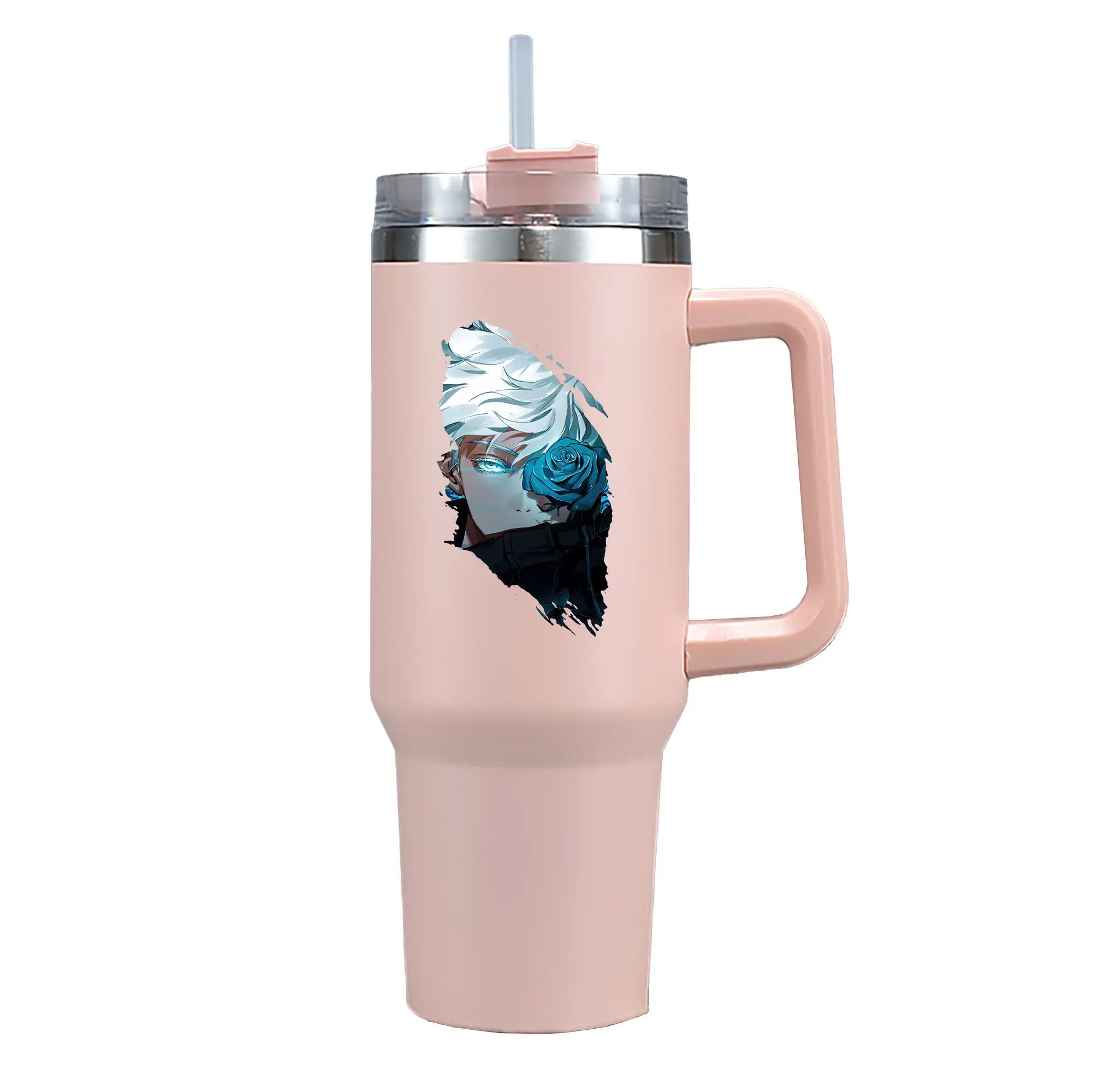 呪術廻戦 グッズ,五条 悟 - 1200mL 車用タンブラー ・ クリスタルステッカー ・ 304ステンレス 内側 ・ 201ステンレス 外側 ・ 保温 保冷 ・ ハンドル&ストロー付き ・ 通勤 ドライブ アウトドア用