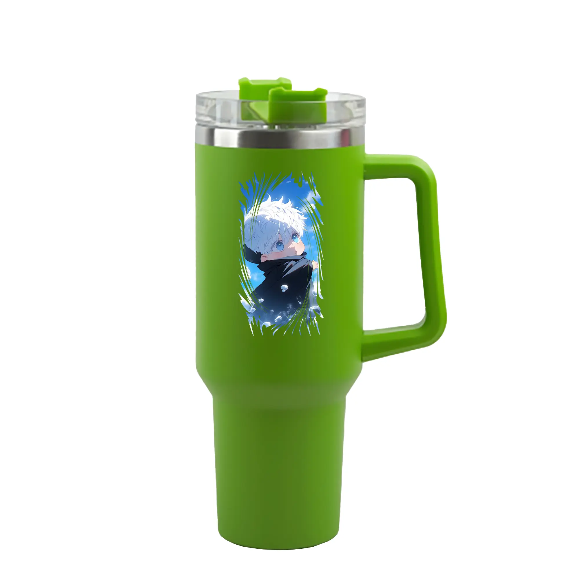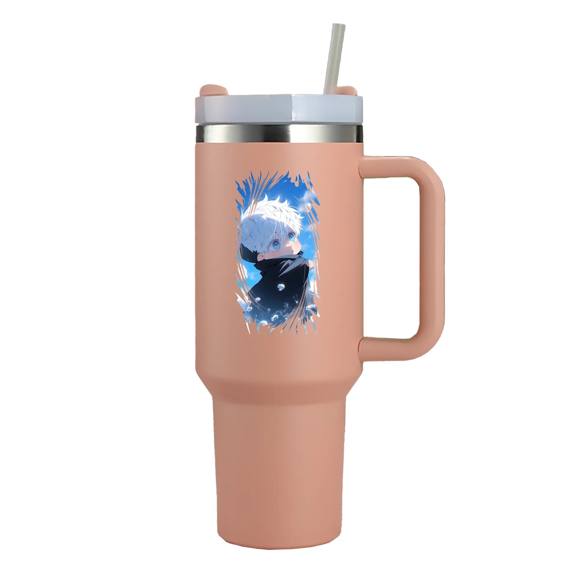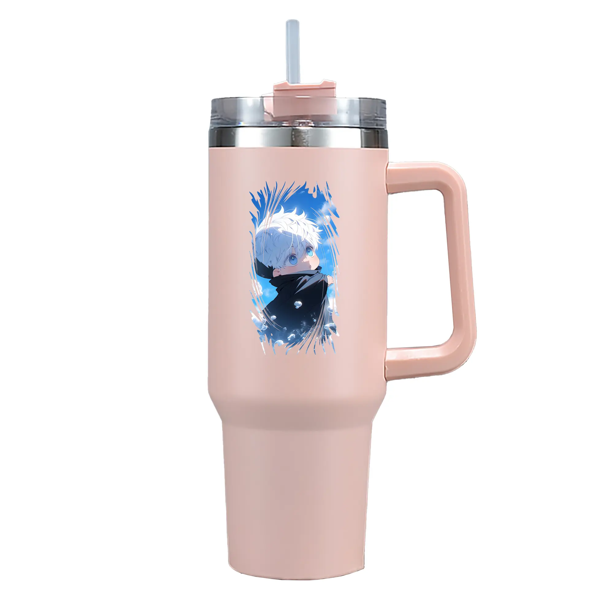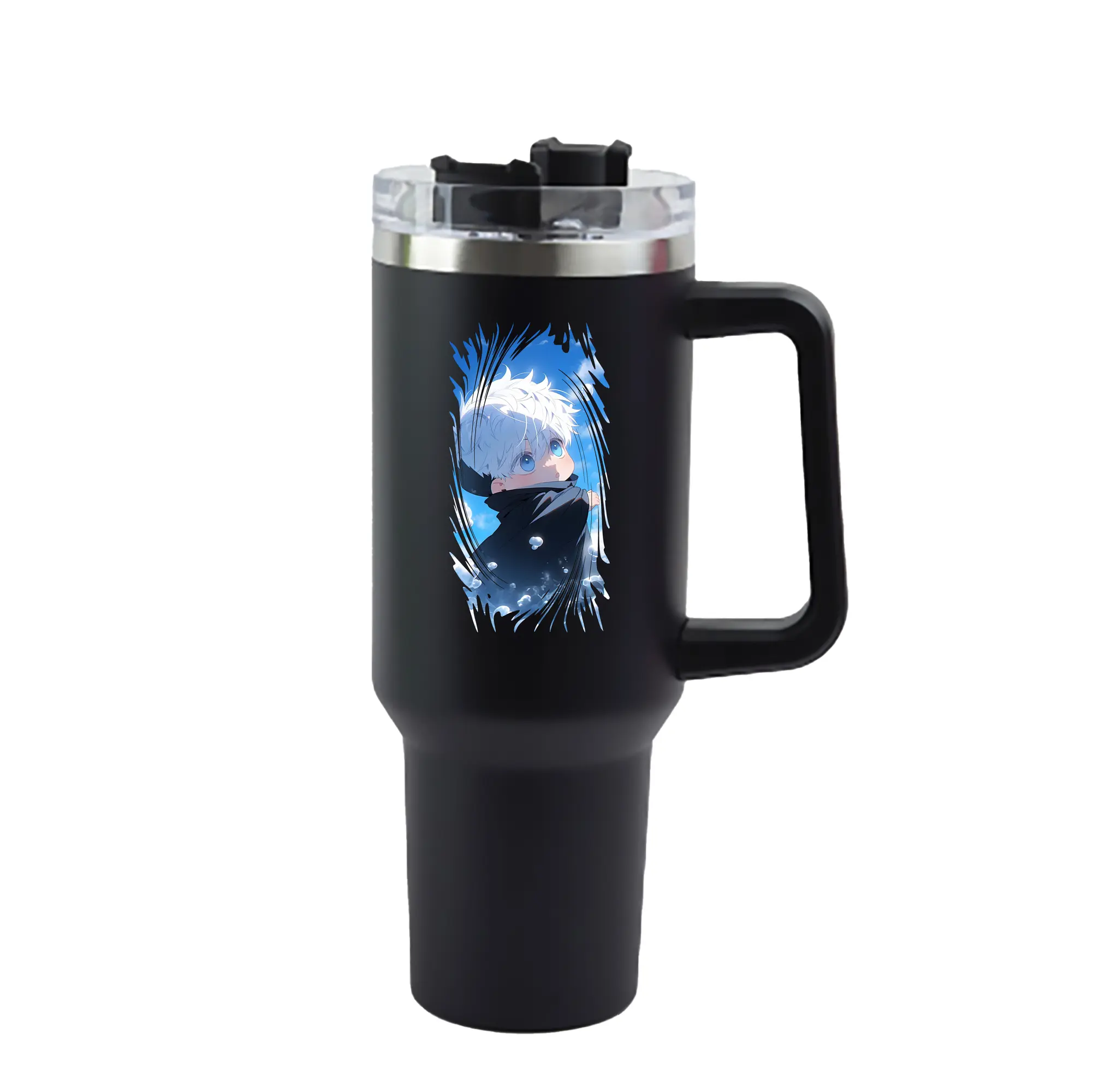 呪術廻戦 グッズ,五条 悟 - 1200mL 車用タンブラー ・ クリスタルステッカー ・ 304ステンレス 内側 ・ 201ステンレス 外側 ・ 保温 保冷 ・ ハンドル&ストロー付き ・ 通勤 ドライブ アウトドア用
