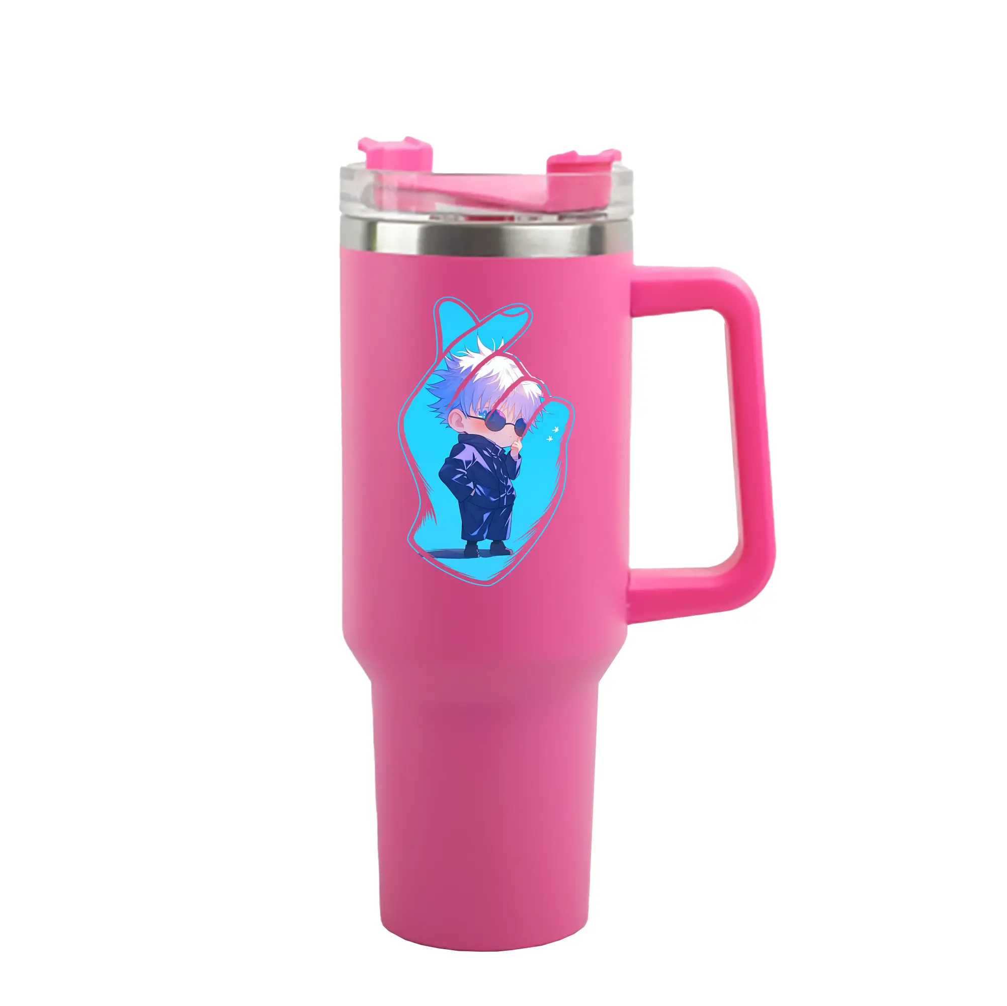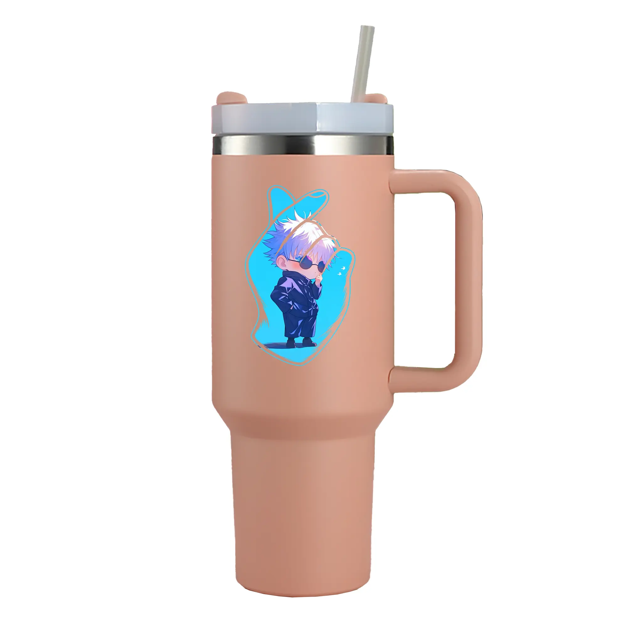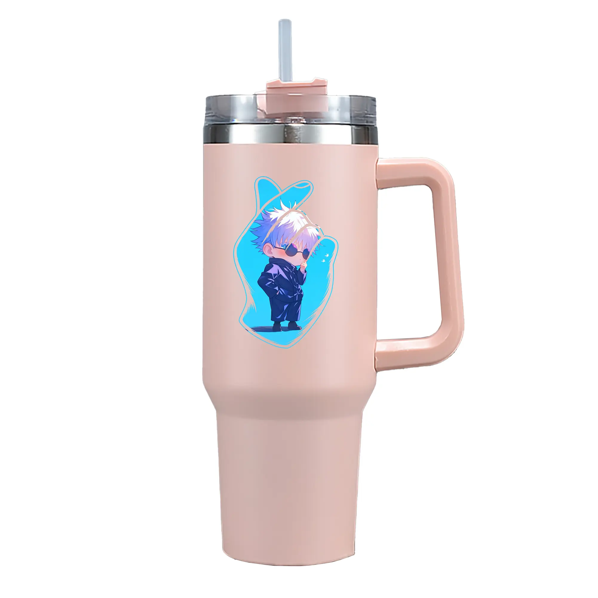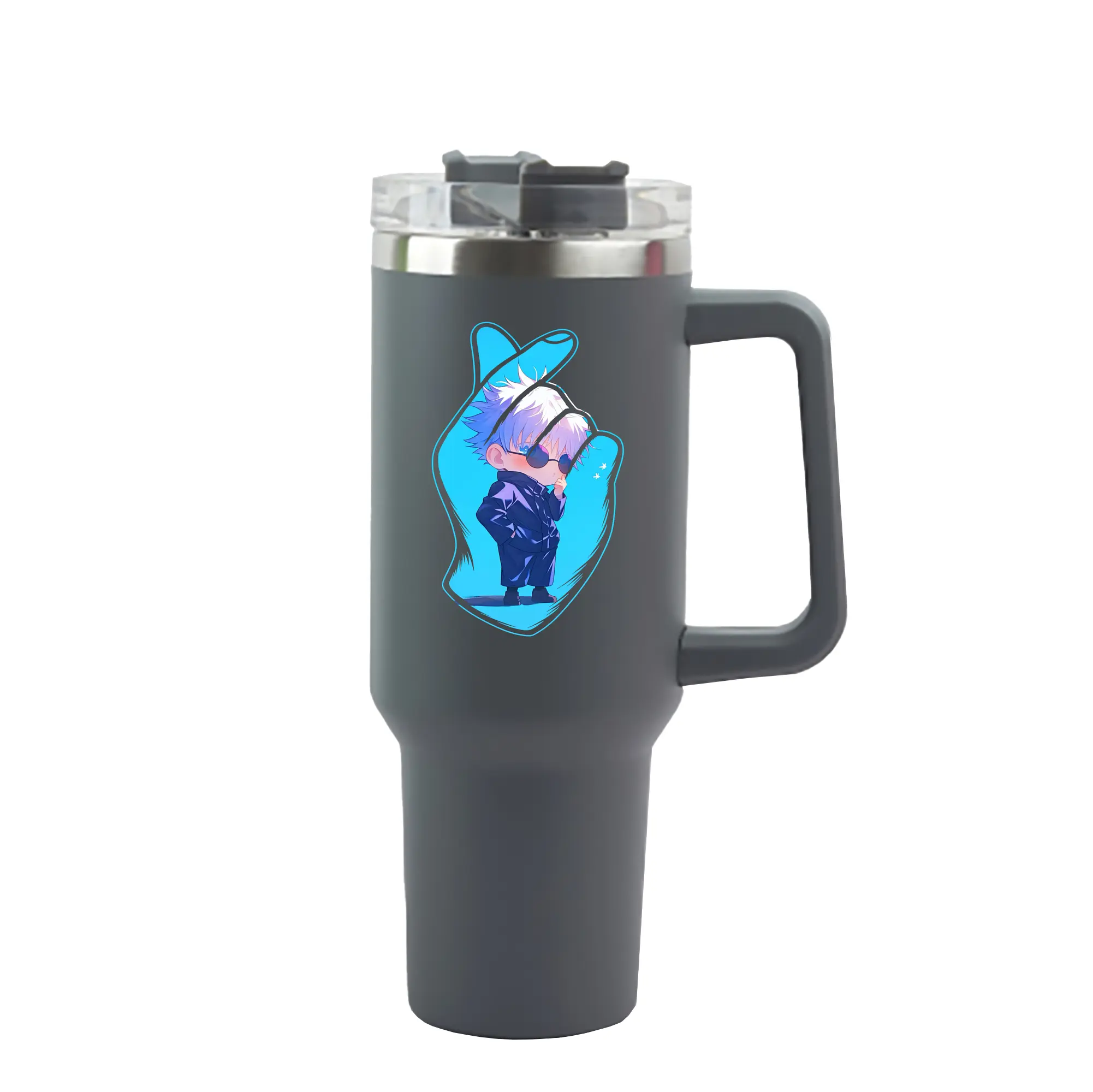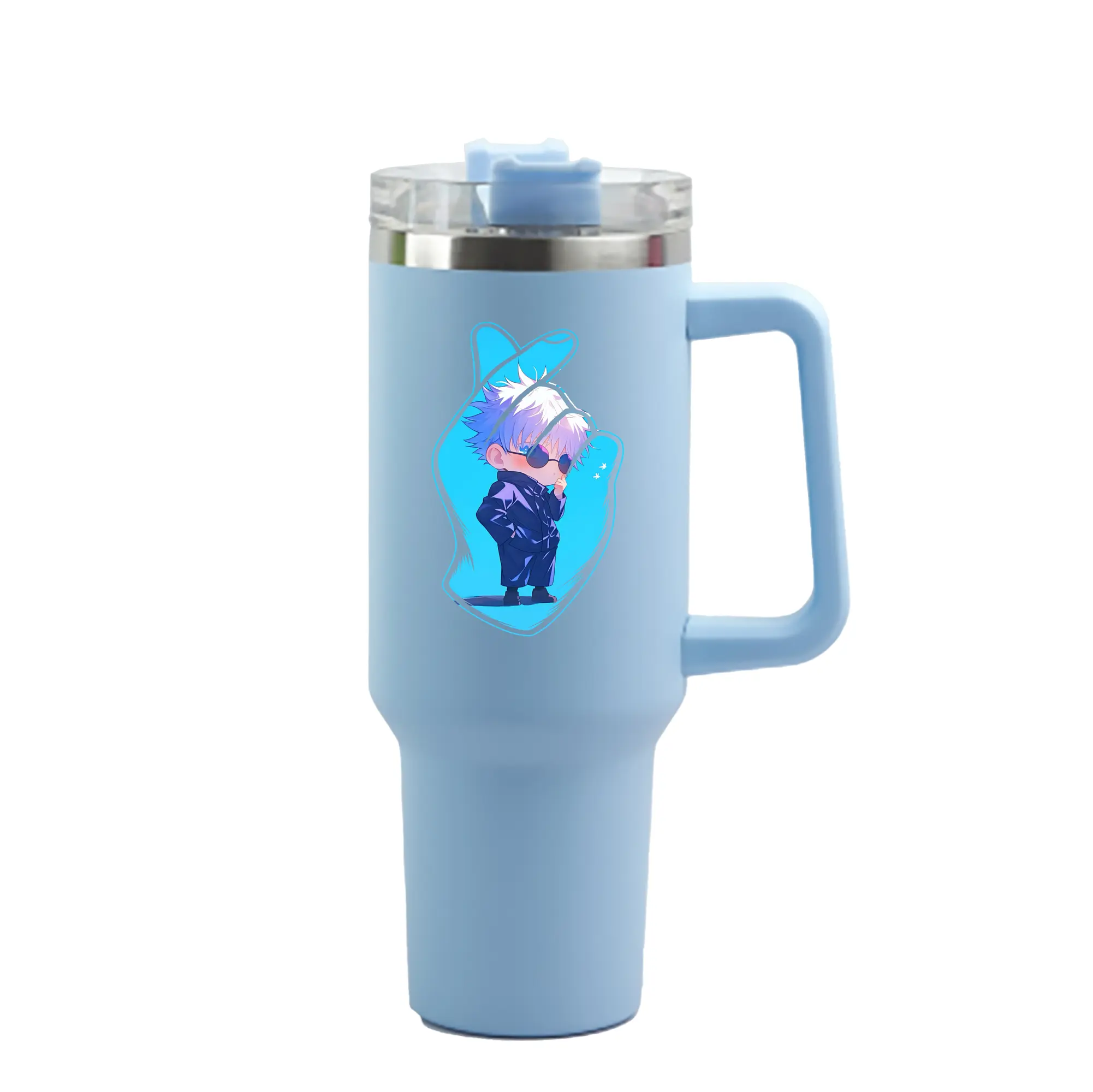 呪術廻戦 グッズ,五条 悟 - 1200mL 車用タンブラー ・ クリスタルステッカー ・ 304ステンレス 内側 ・ 201ステンレス 外側 ・ 保温 保冷 ・ ハンドル&ストロー付き ・ 通勤 ドライブ アウトドア用