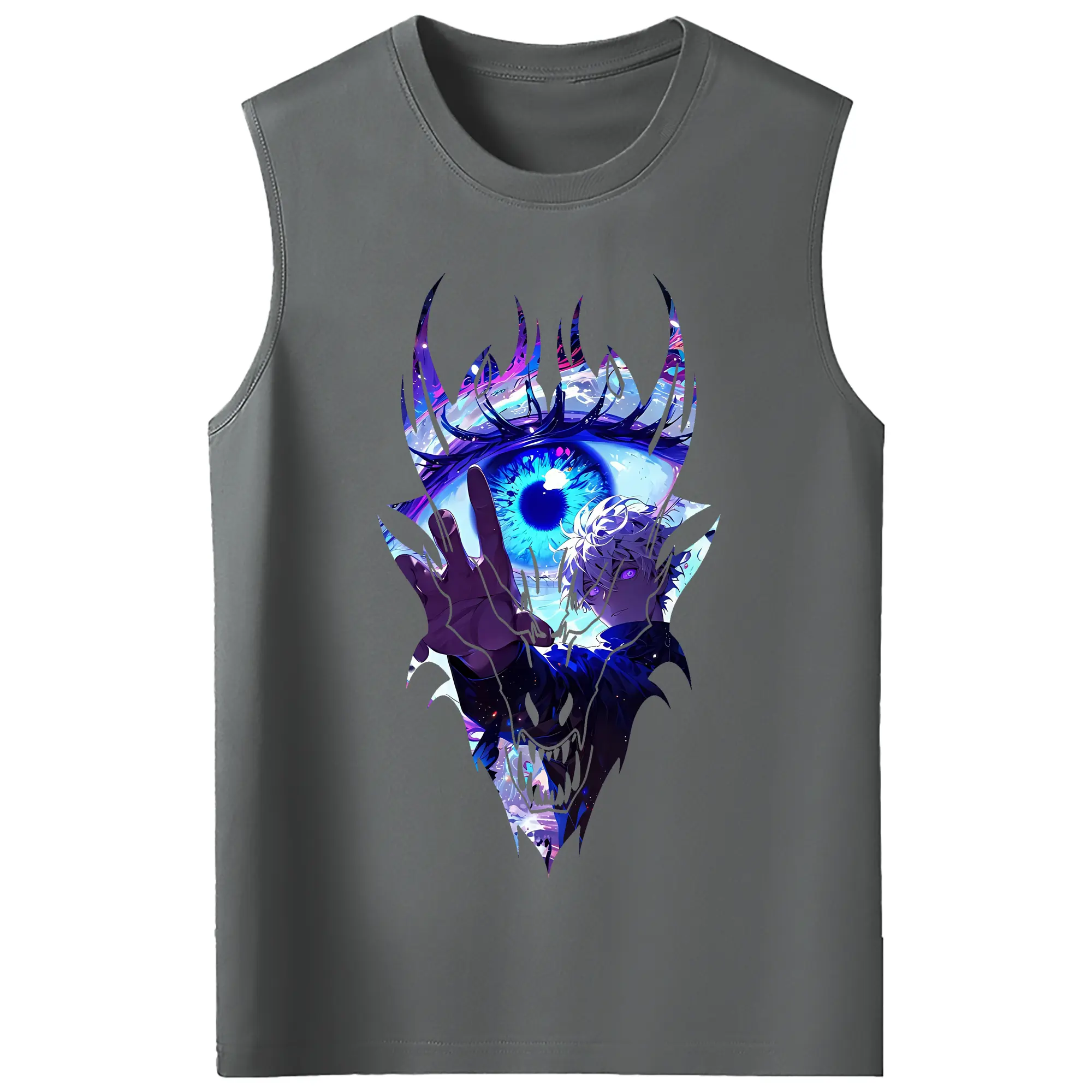 呪術廻戦 グッズ,五条 悟 - コットン100% タンクトップ ・ フロントプリント ・ タイトフィット ・ 快適 通気性 ・ スポーツ カジュアル 散歩用
