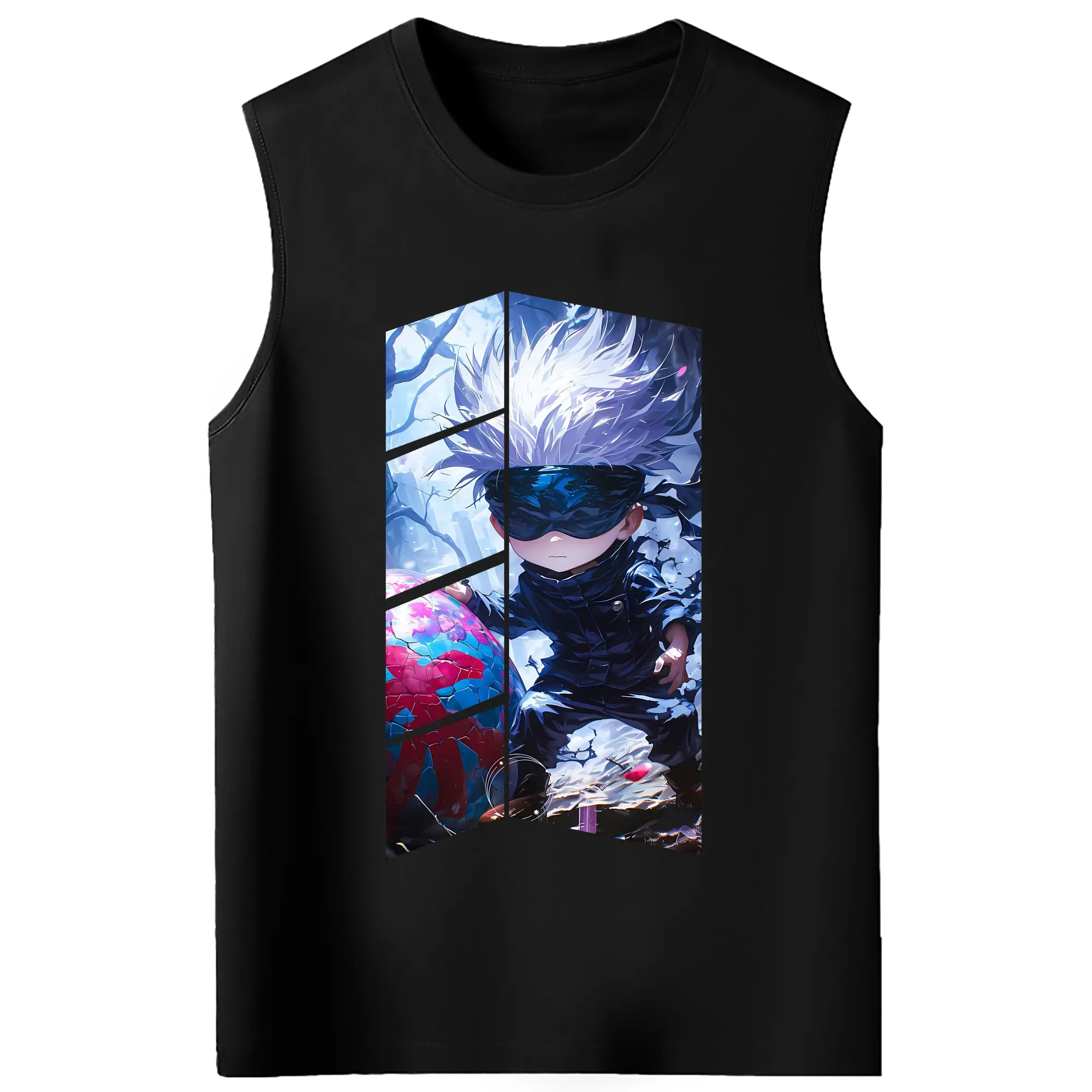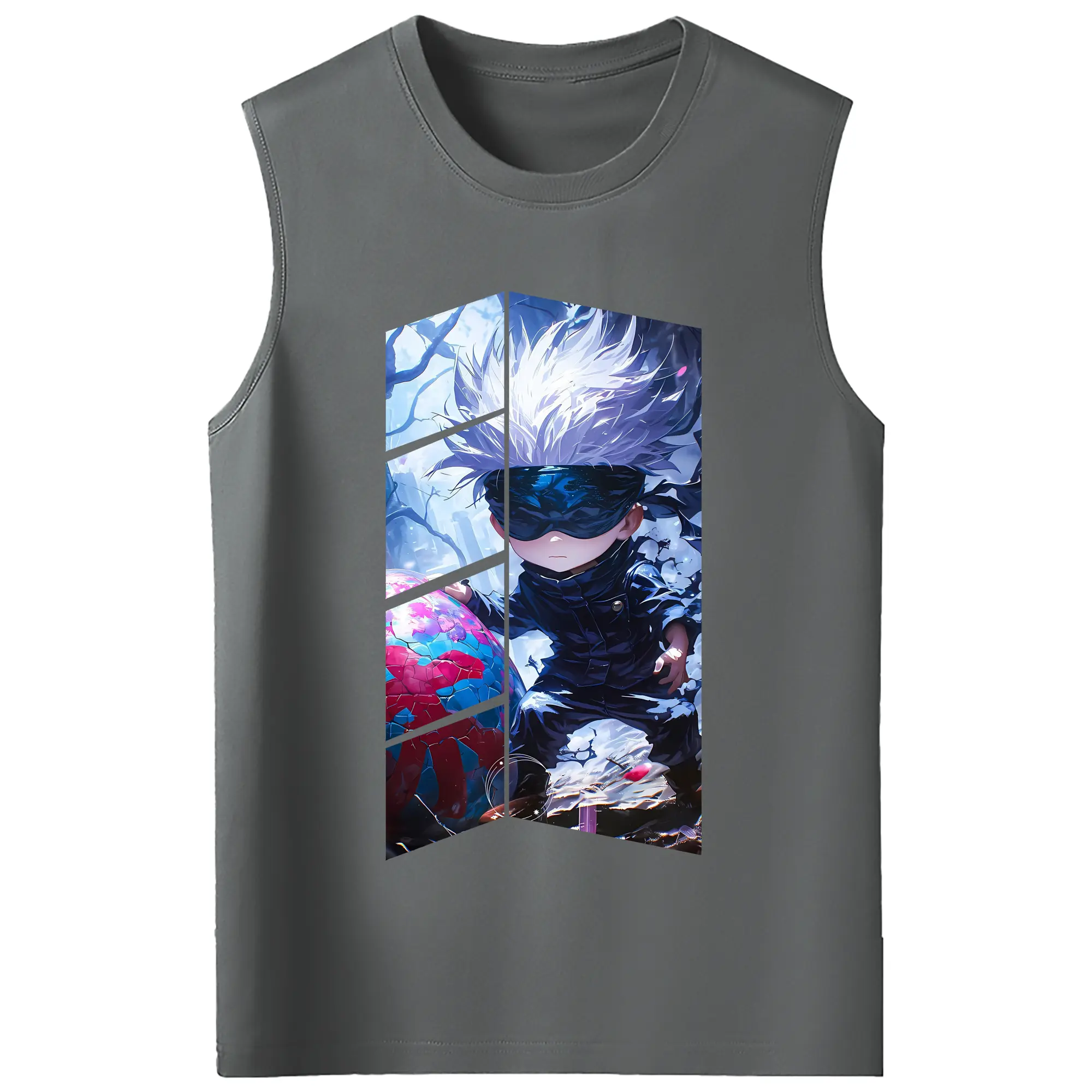 呪術廻戦 グッズ,五条 悟 - コットン100% タンクトップ ・ フロントプリント ・ タイトフィット ・ 快適 通気性 ・ スポーツ カジュアル 散歩用