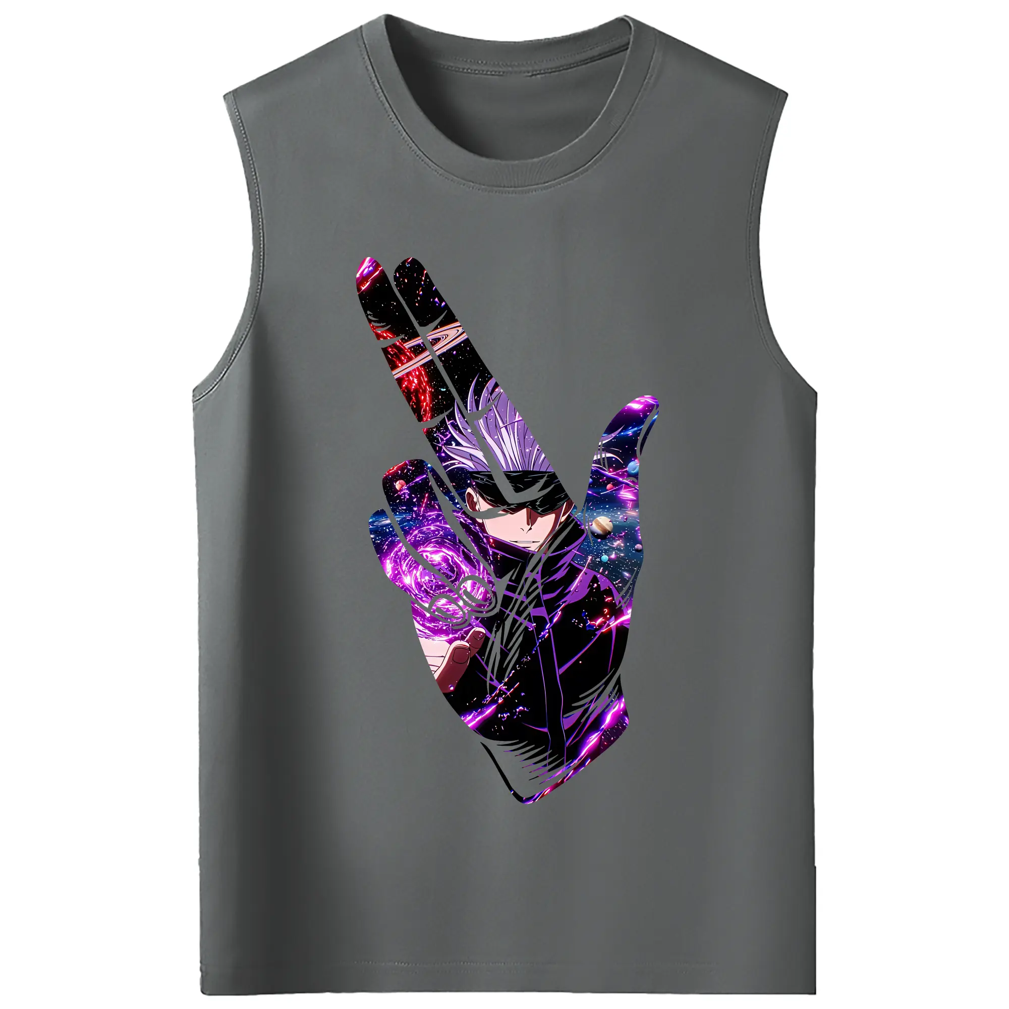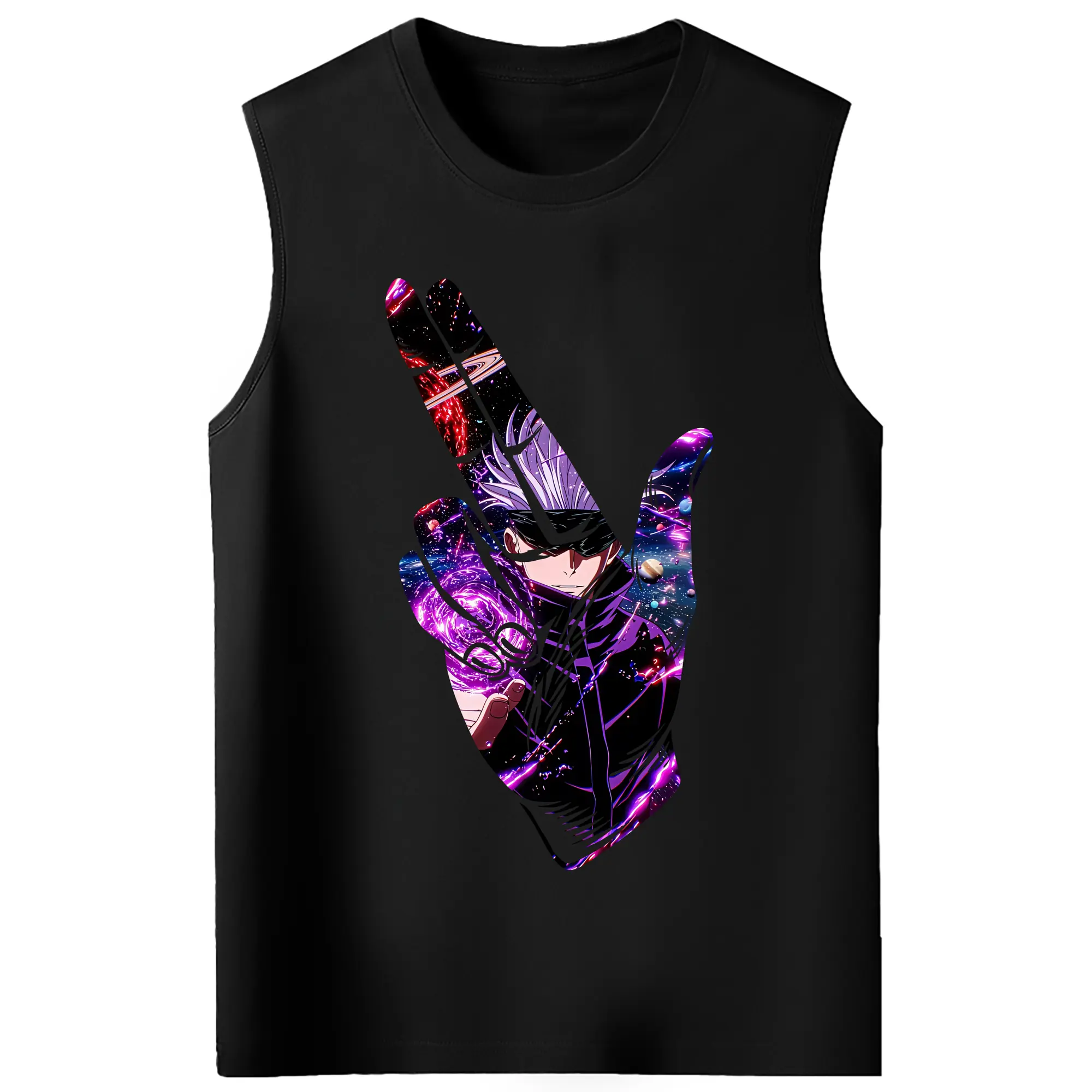 呪術廻戦 グッズ,五条 悟 - コットン100% タンクトップ ・ フロントプリント ・ タイトフィット ・ 快適 通気性 ・ スポーツ カジュアル 散歩用