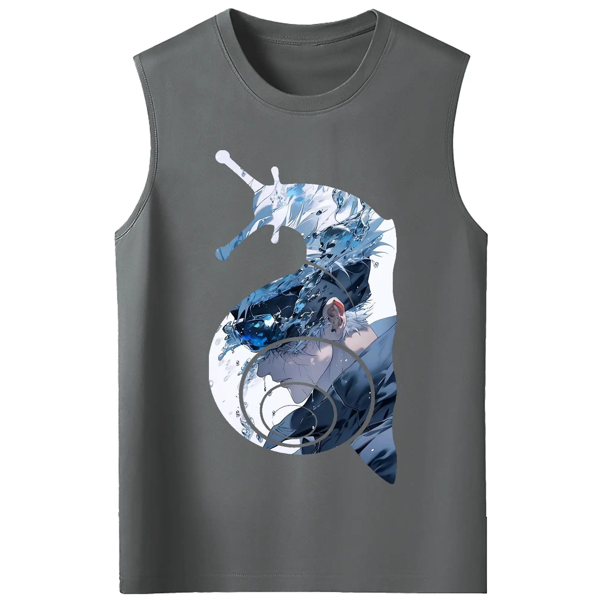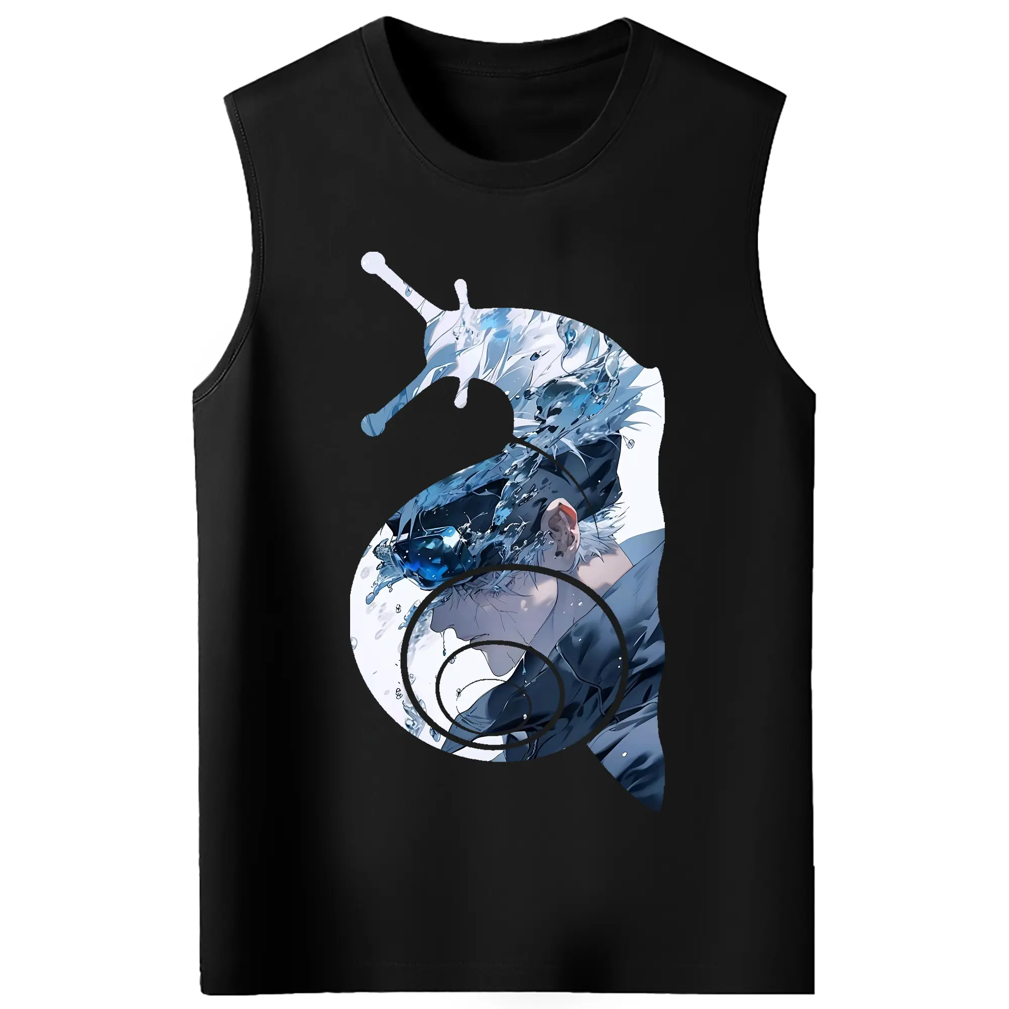 呪術廻戦 グッズ,五条 悟 - コットン100% タンクトップ ・ フロントプリント ・ タイトフィット ・ 快適 通気性 ・ スポーツ カジュアル 散歩用