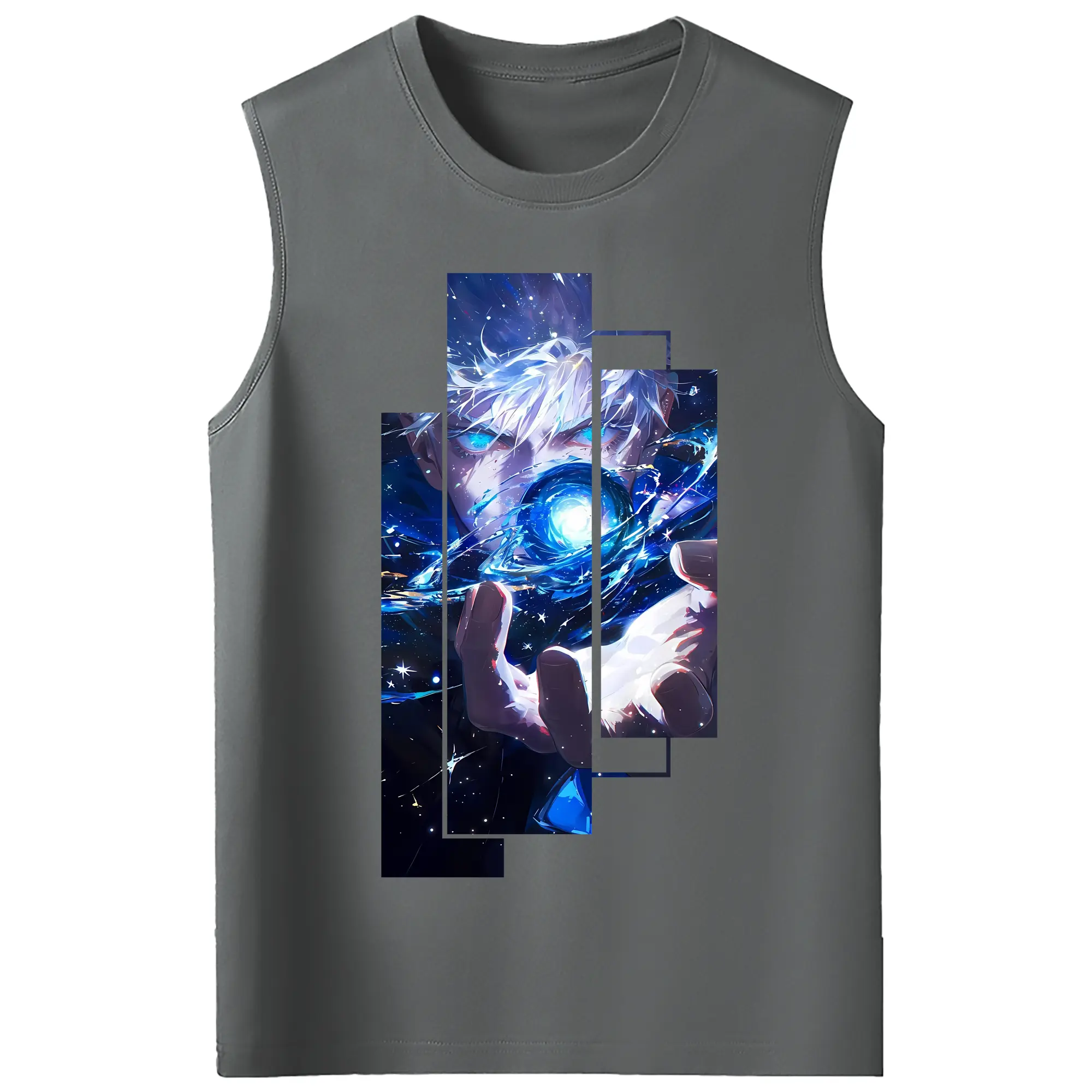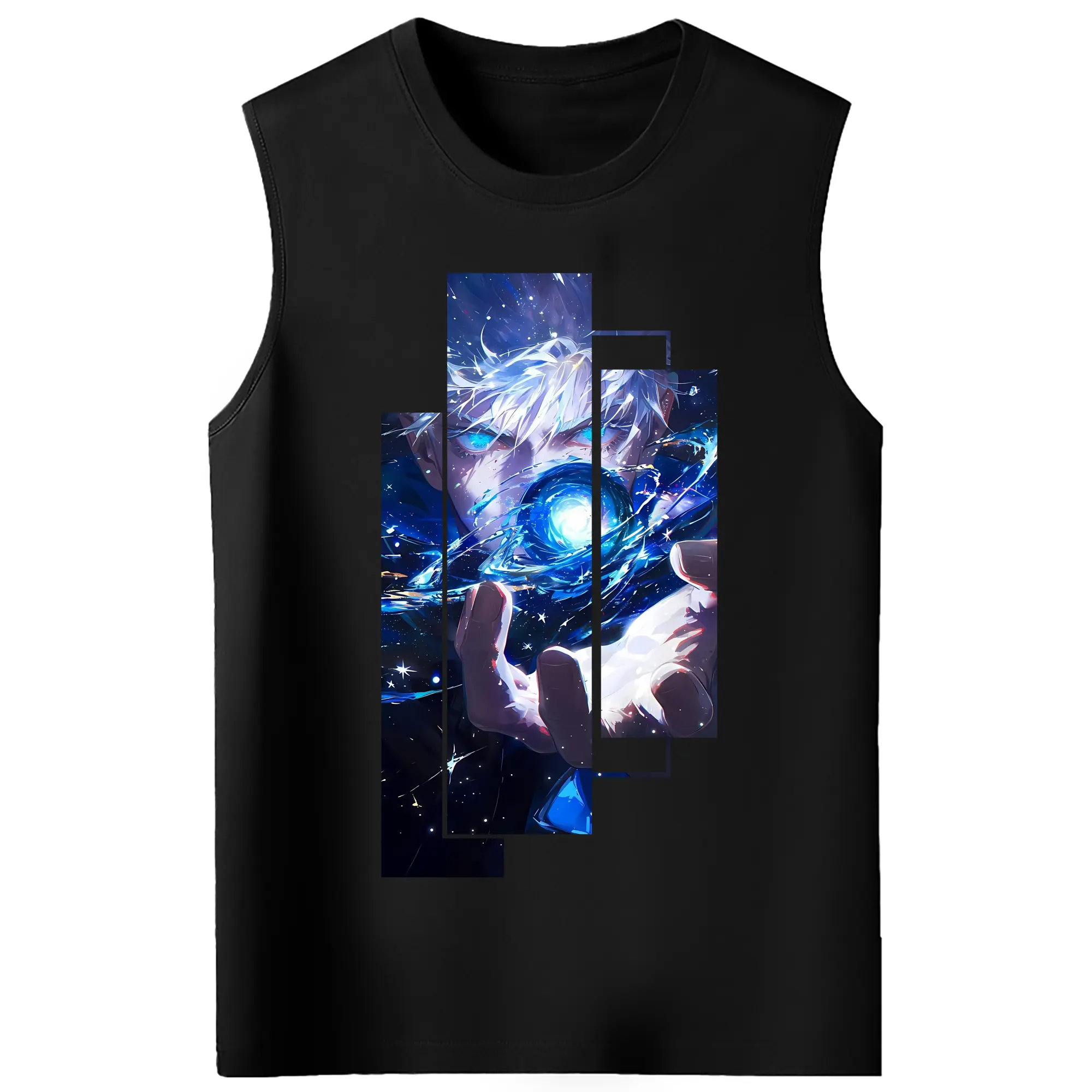 呪術廻戦 グッズ,五条 悟 - コットン100% タンクトップ ・ フロントプリント ・ タイトフィット ・ 快適 通気性 ・ スポーツ カジュアル 散歩用
