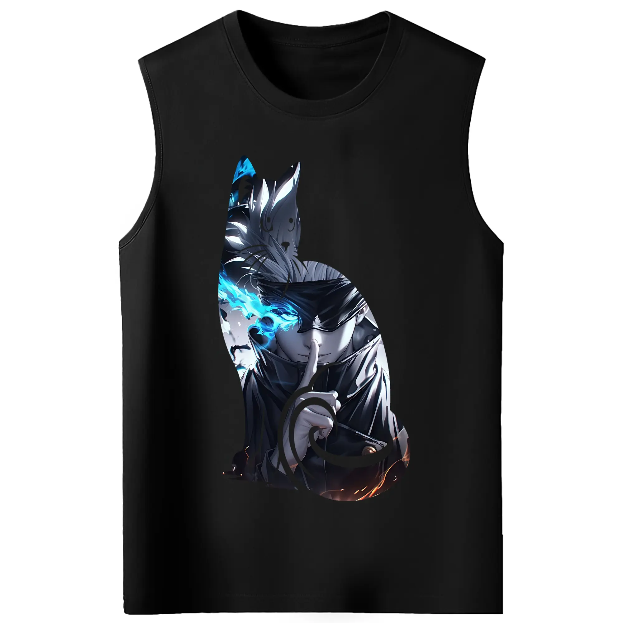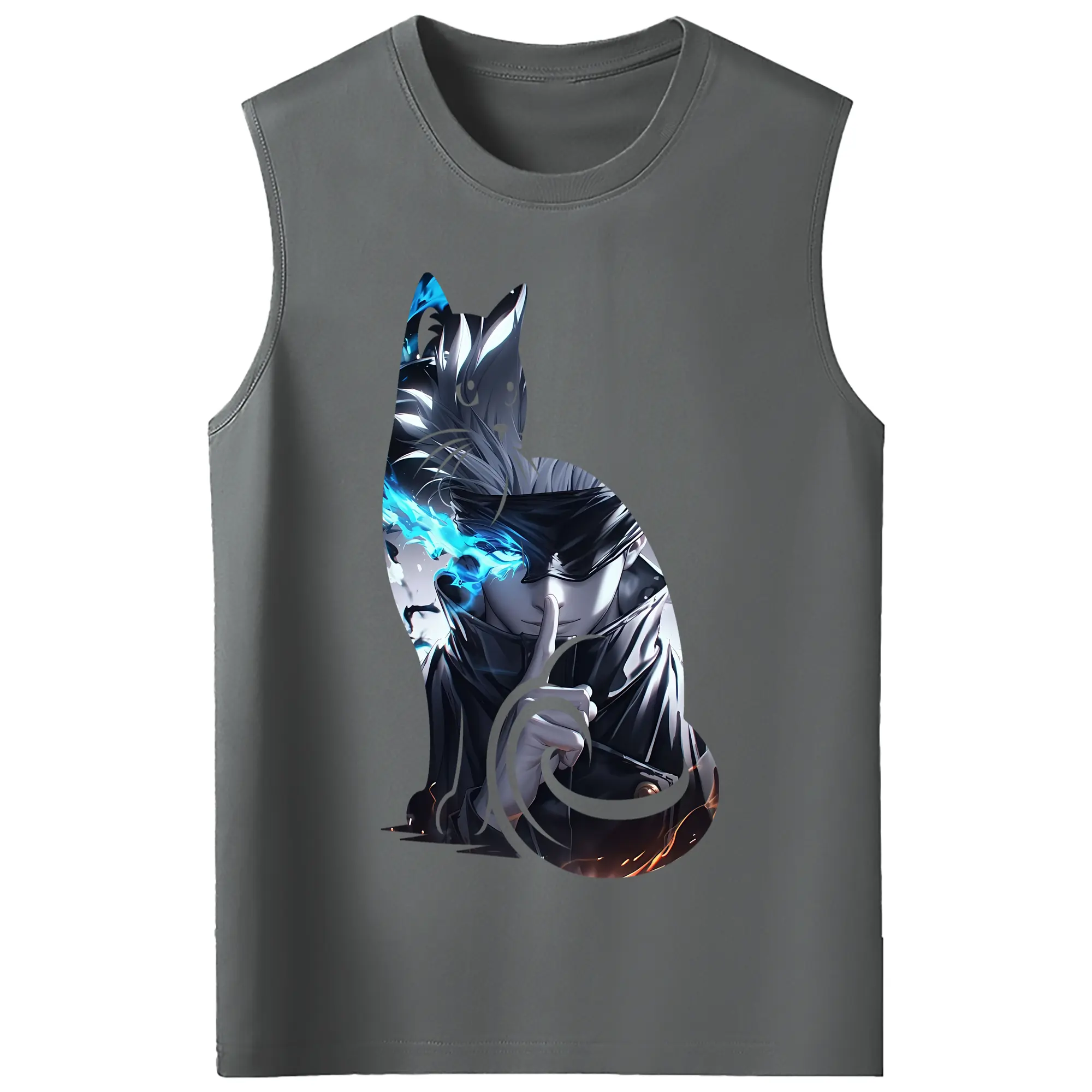 呪術廻戦 グッズ,五条 悟 - コットン100% タンクトップ ・ フロントプリント ・ タイトフィット ・ 快適 通気性 ・ スポーツ カジュアル 散歩用
