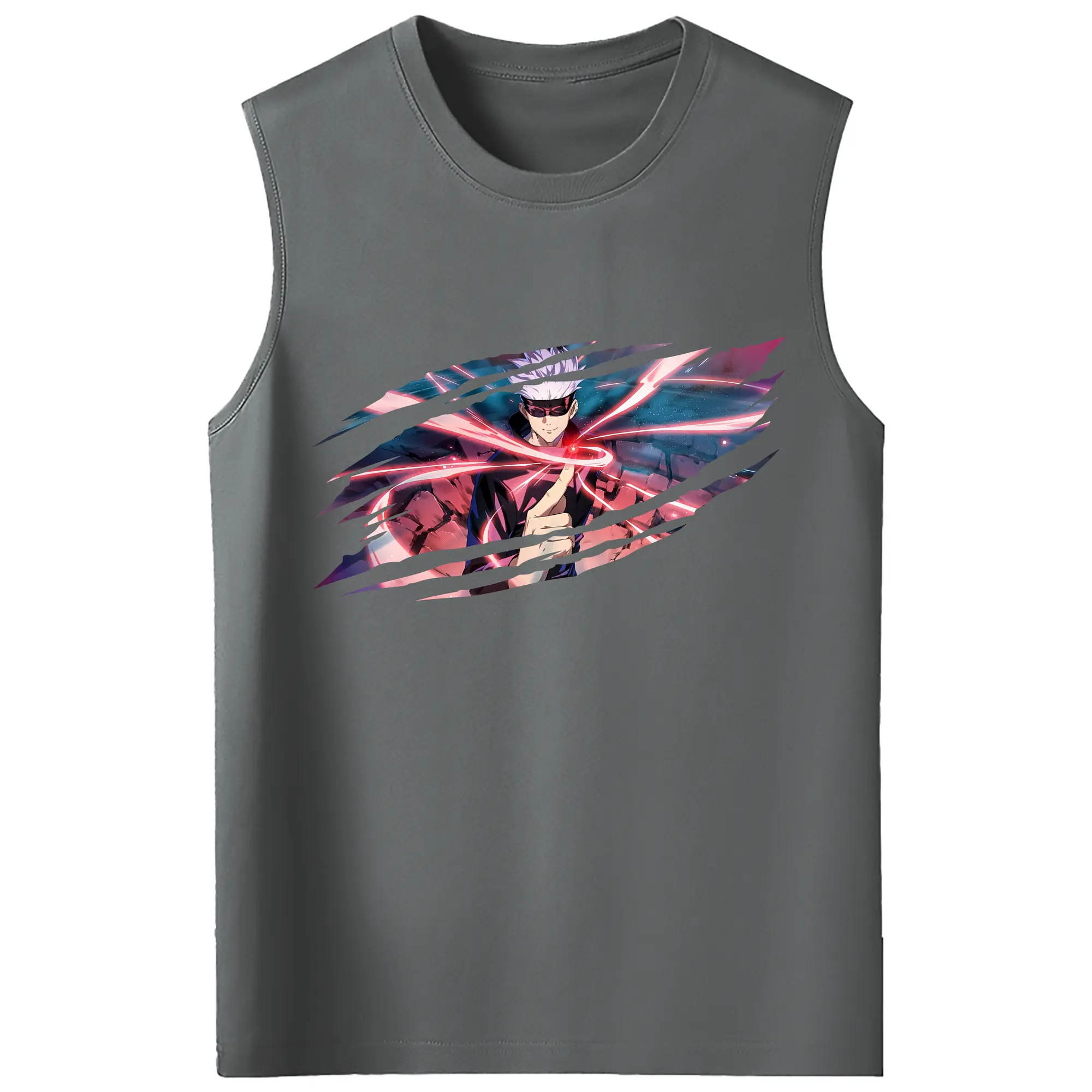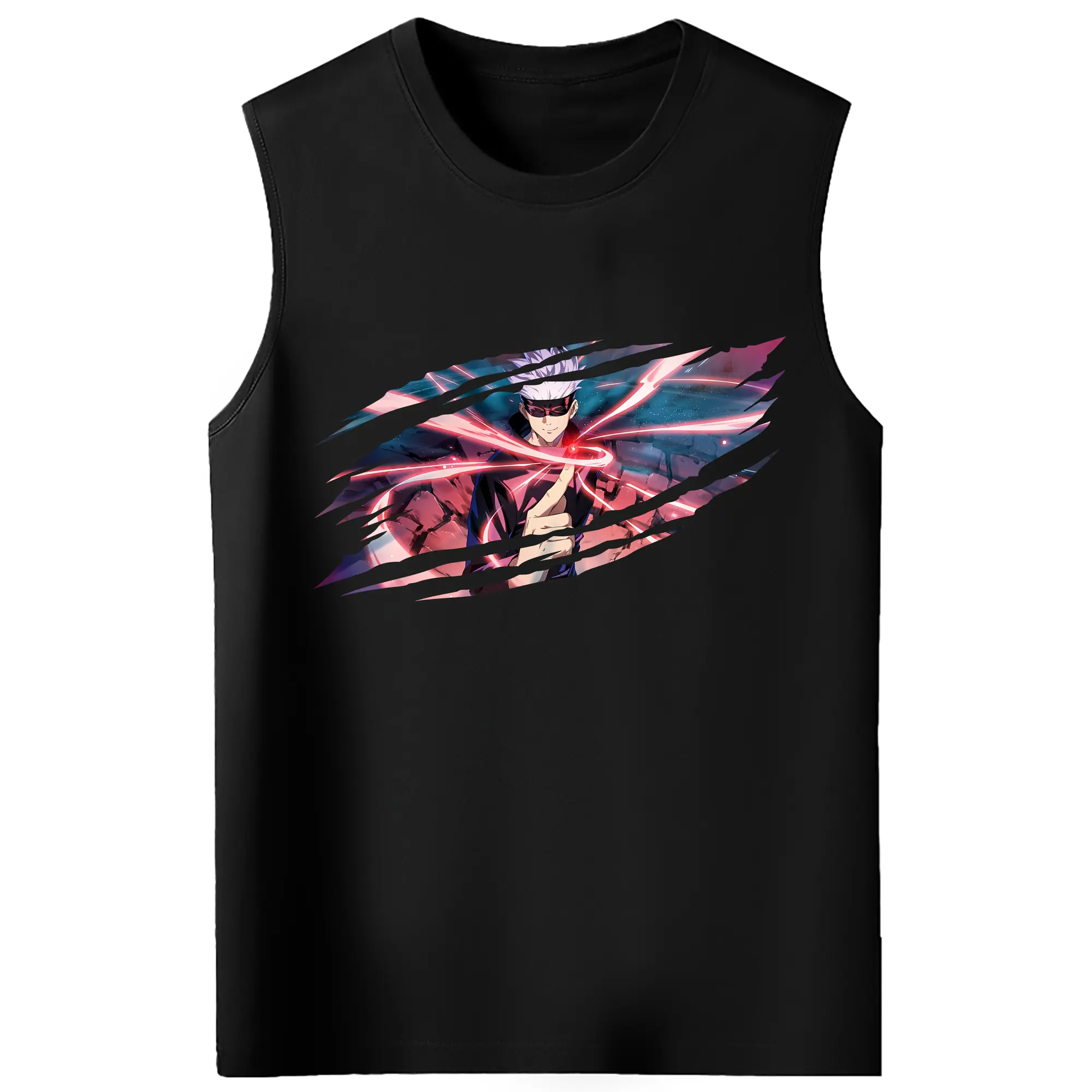 呪術廻戦 グッズ,五条 悟 - コットン100% タンクトップ ・ フロントプリント ・ タイトフィット ・ 快適 通気性 ・ スポーツ カジュアル 散歩用