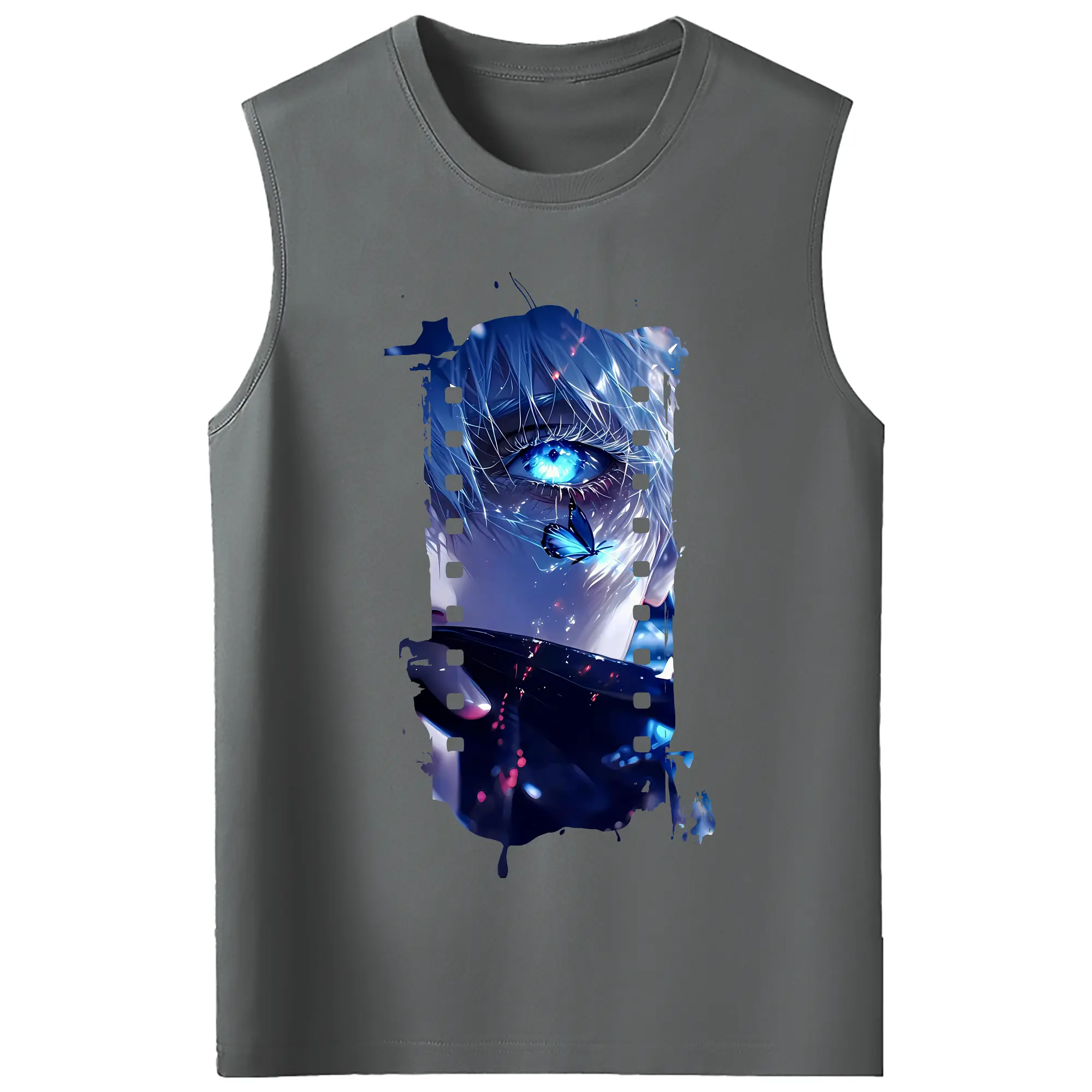 呪術廻戦 グッズ,五条 悟 - コットン100% タンクトップ ・ フロントプリント ・ タイトフィット ・ 快適 通気性 ・ スポーツ カジュアル 散歩用