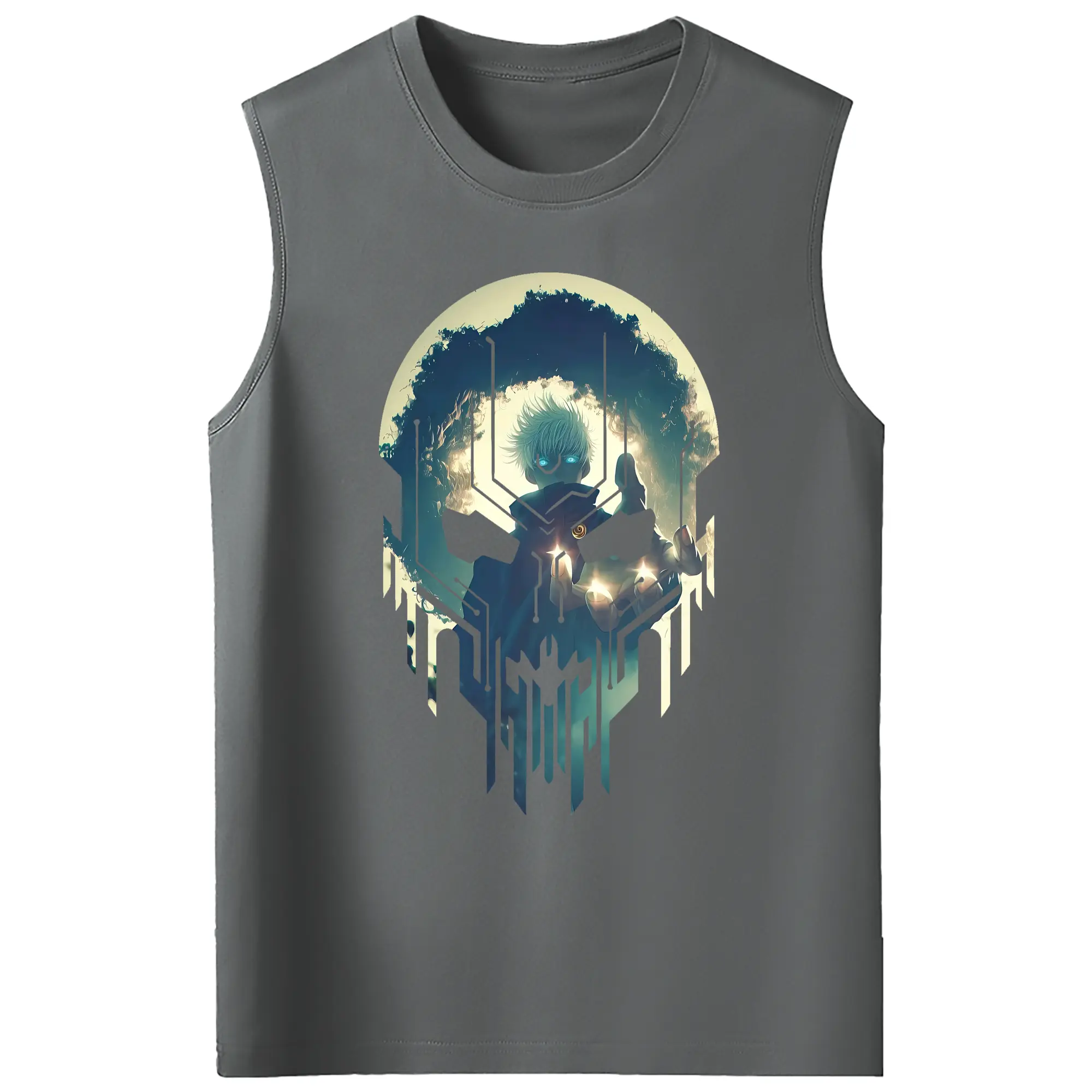 呪術廻戦 グッズ,五条 悟 - コットン100% タンクトップ ・ フロントプリント ・ タイトフィット ・ 快適 通気性 ・ スポーツ カジュアル 散歩用