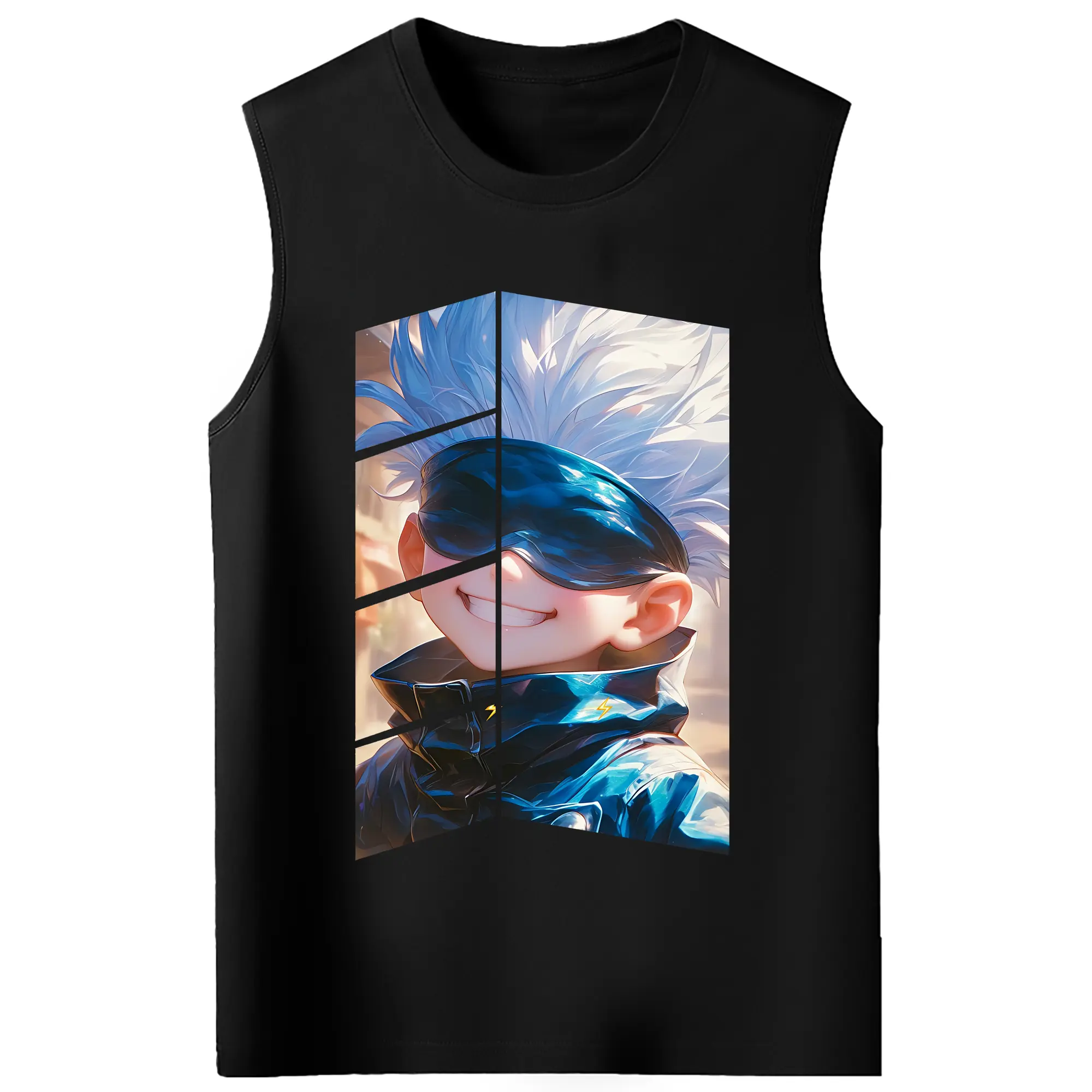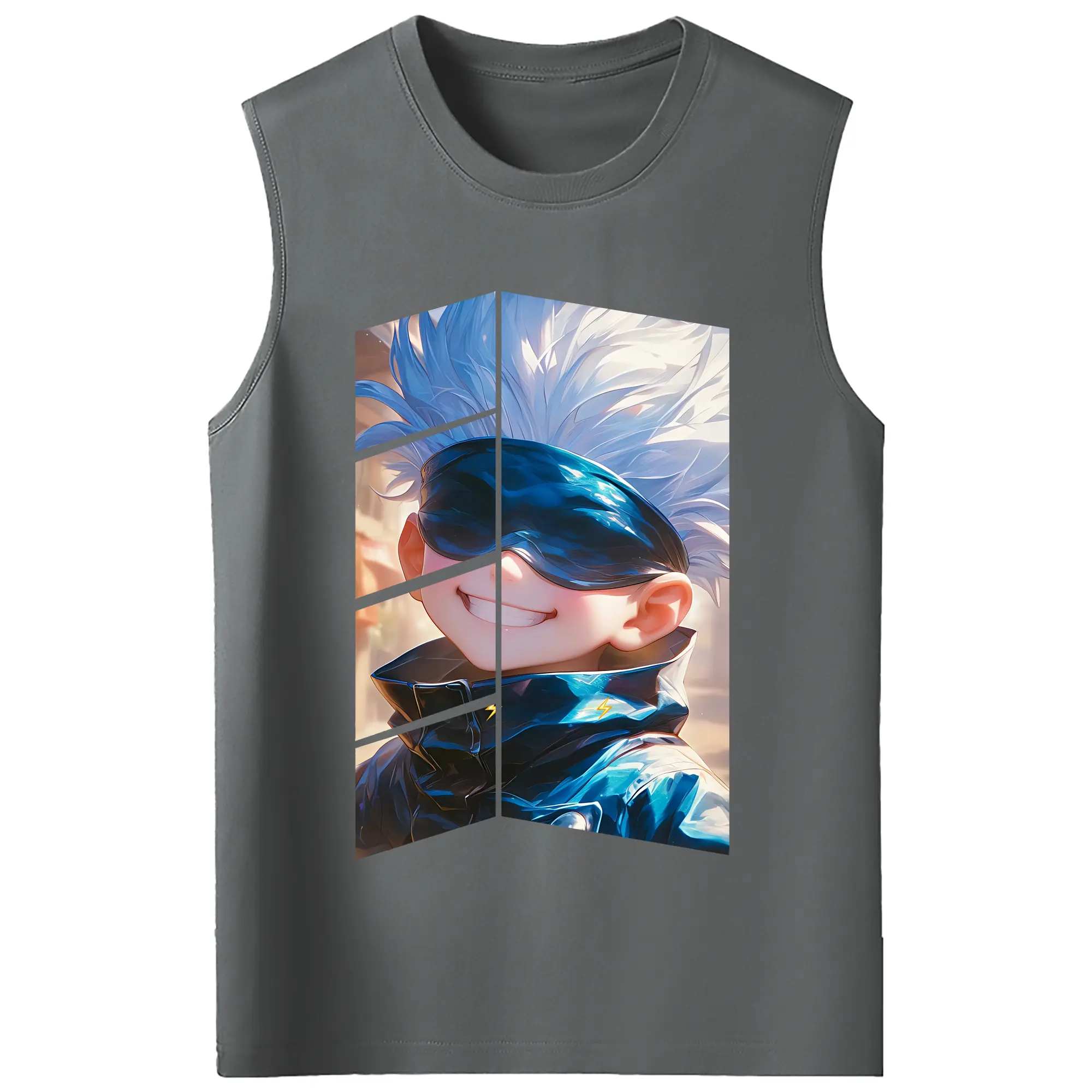 呪術廻戦 グッズ,五条 悟 - コットン100% タンクトップ ・ フロントプリント ・ タイトフィット ・ 快適 通気性 ・ スポーツ カジュアル 散歩用
