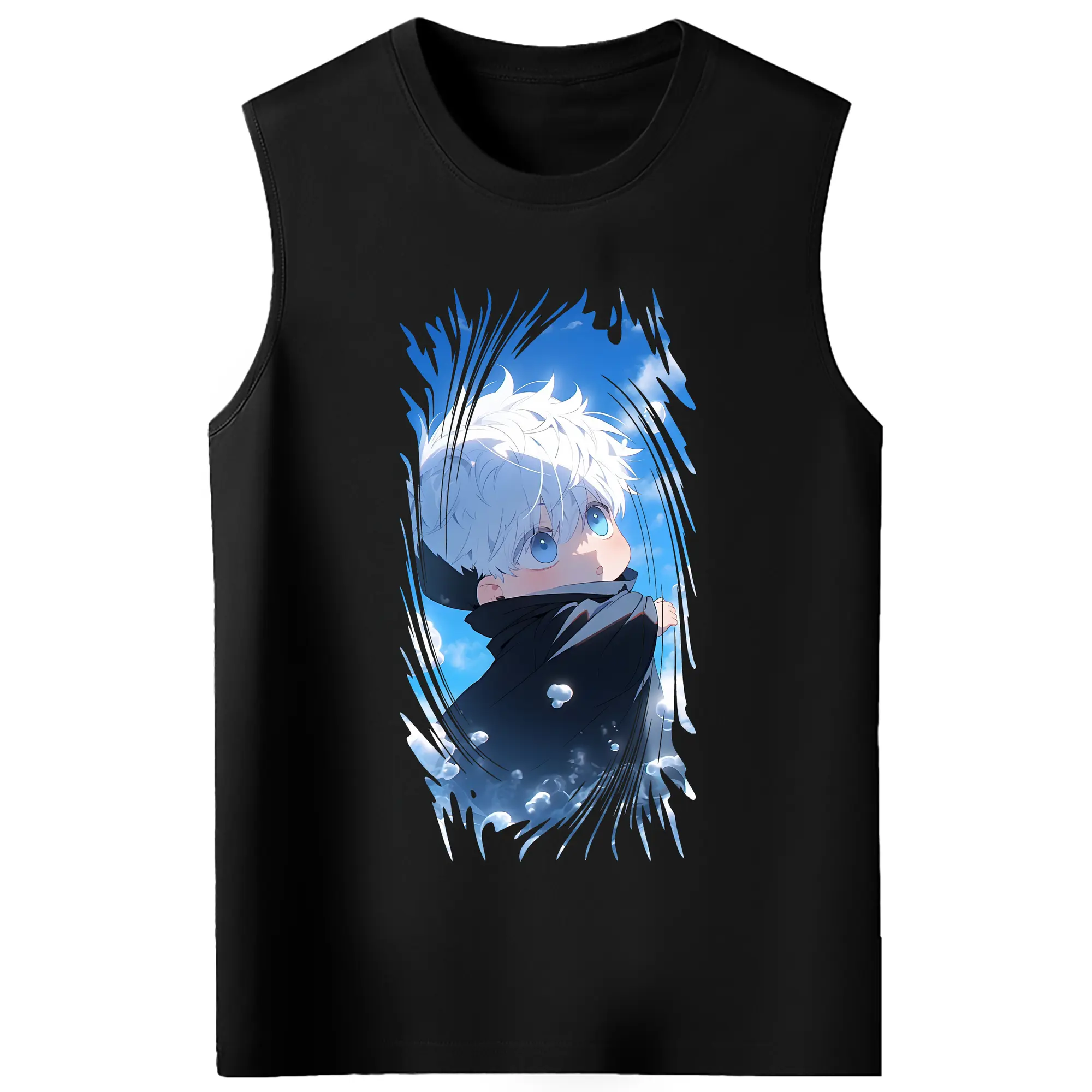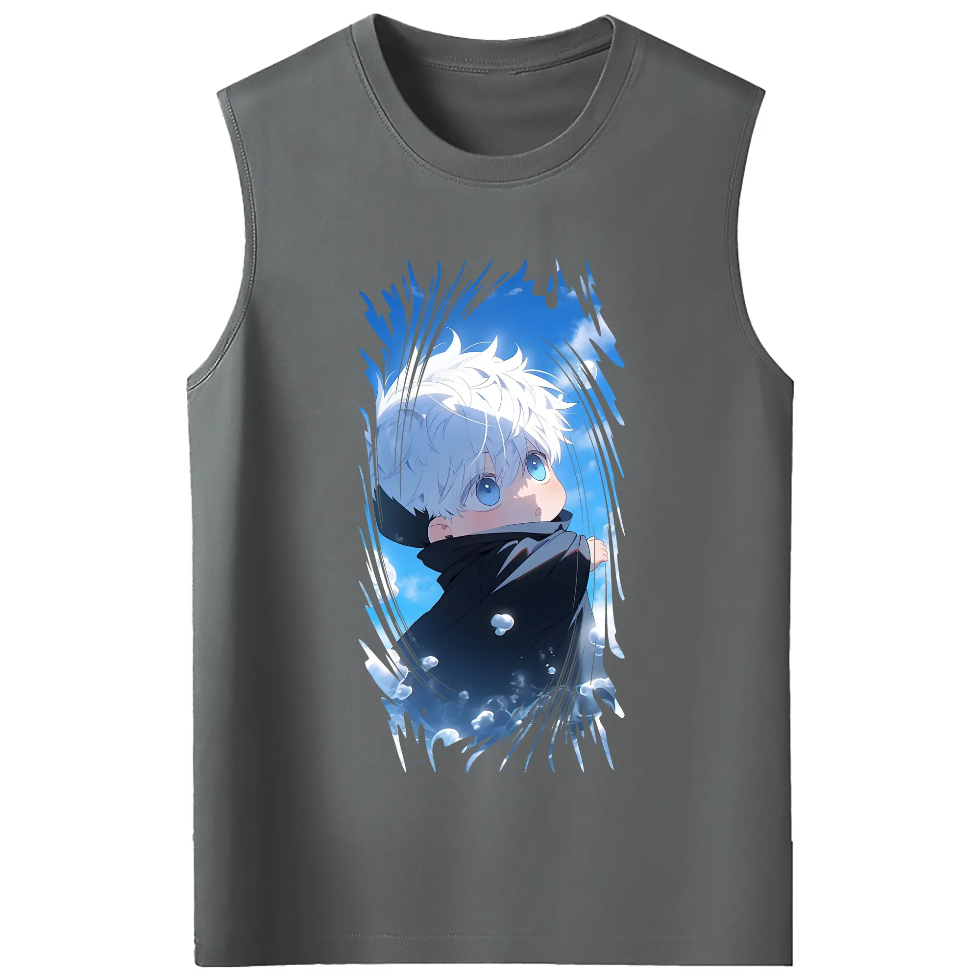 呪術廻戦 グッズ,五条 悟 - コットン100% タンクトップ ・ フロントプリント ・ タイトフィット ・ 快適 通気性 ・ スポーツ カジュアル 散歩用