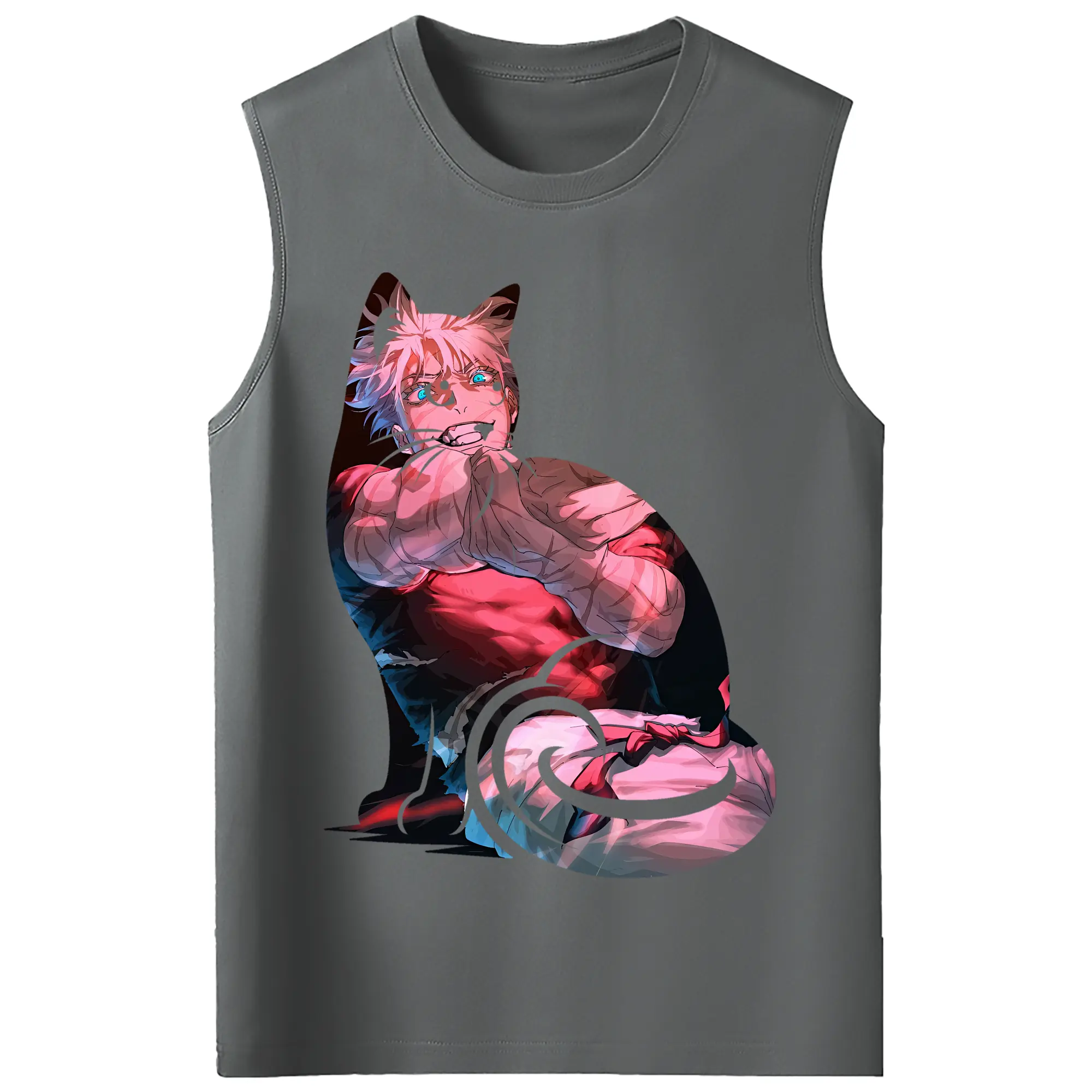 呪術廻戦 グッズ,五条 悟 - コットン100% タンクトップ ・ フロントプリント ・ タイトフィット ・ 快適 通気性 ・ スポーツ カジュアル 散歩用
