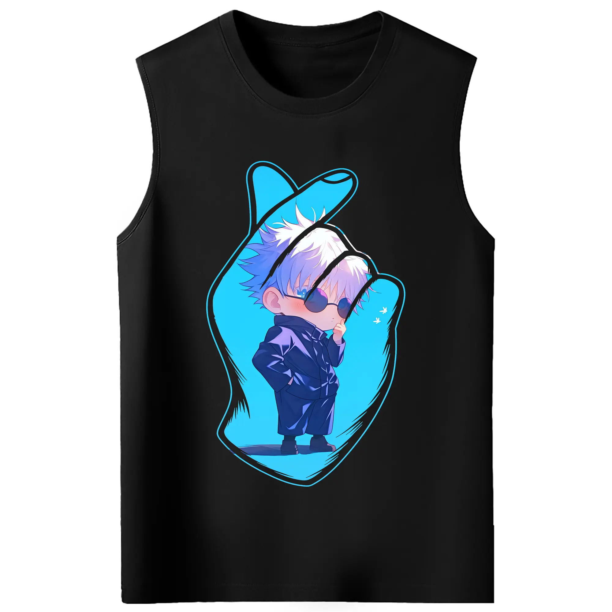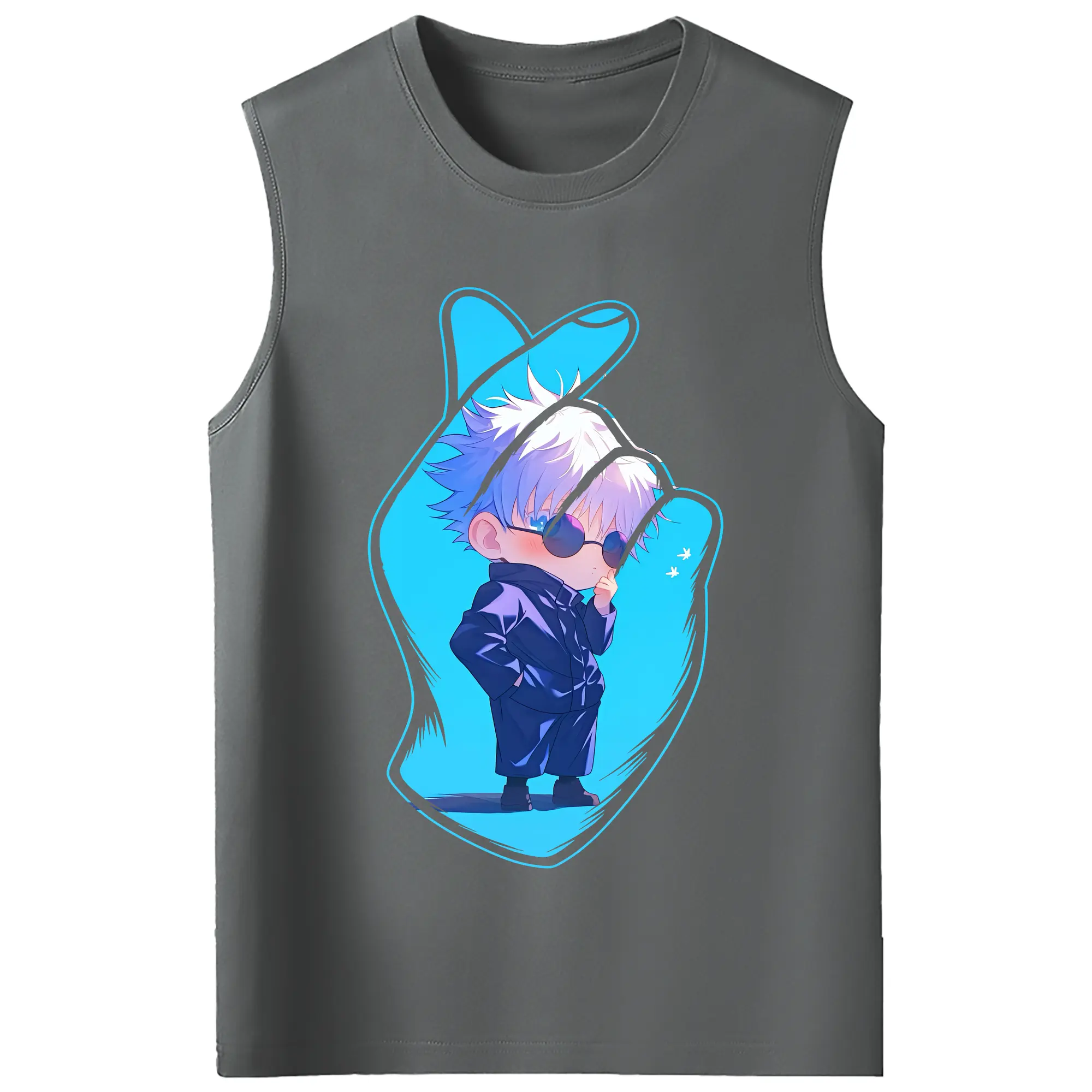 呪術廻戦 グッズ,五条 悟 - コットン100% タンクトップ ・ フロントプリント ・ タイトフィット ・ 快適 通気性 ・ スポーツ カジュアル 散歩用