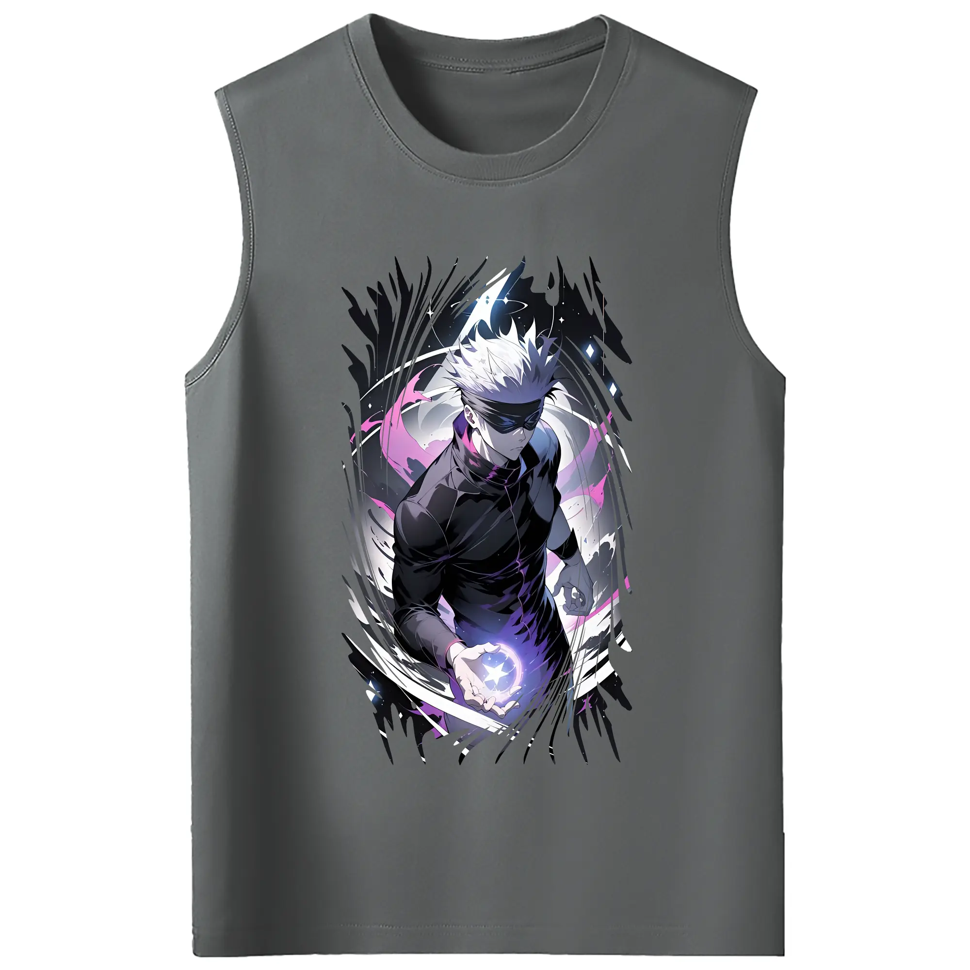 呪術廻戦 グッズ,五条 悟 - コットン100% タンクトップ ・ フロントプリント ・ タイトフィット ・ 快適 通気性 ・ スポーツ カジュアル 散歩用