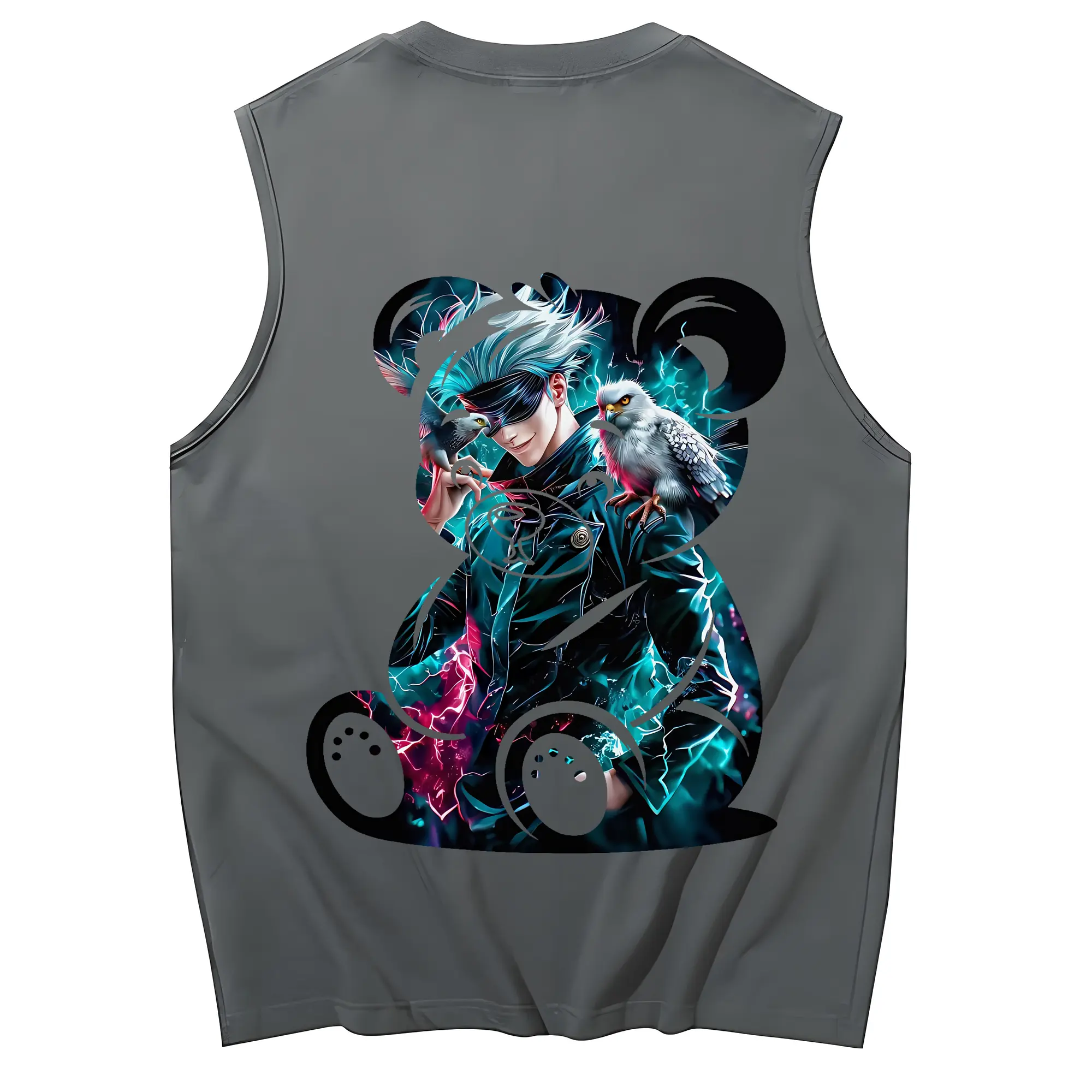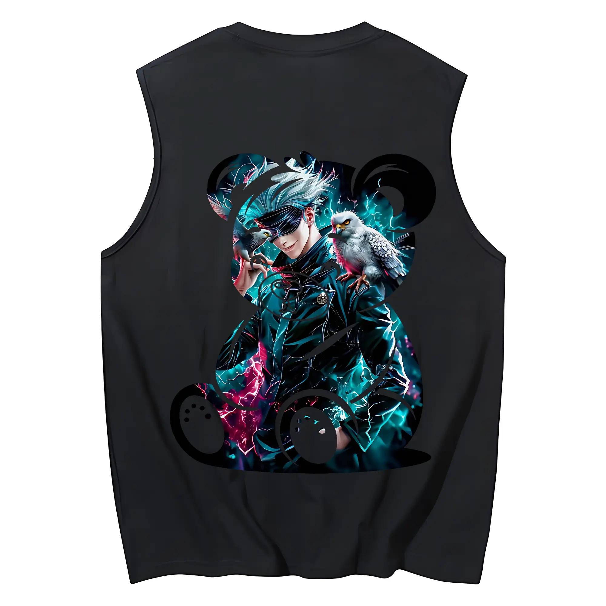 呪術廻戦 グッズ,五条 悟 - コットン100% タンクトップ ・ 背面プリント ・ タイトシルエット ・ 快適 通気性 ・ スポーツ カジュアル 散歩用