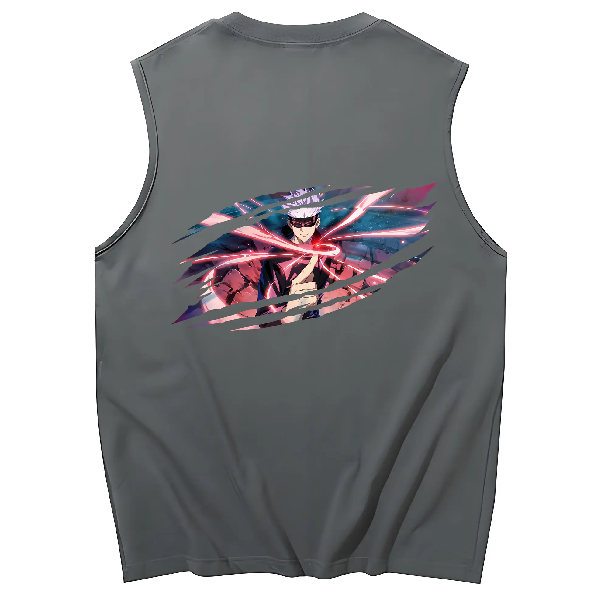 呪術廻戦 グッズ,五条 悟 - コットン100% タンクトップ ・ 背面プリント ・ タイトシルエット ・ 快適 通気性 ・ スポーツ カジュアル 散歩用