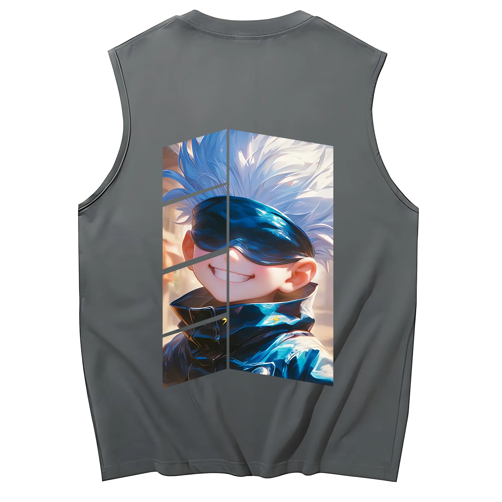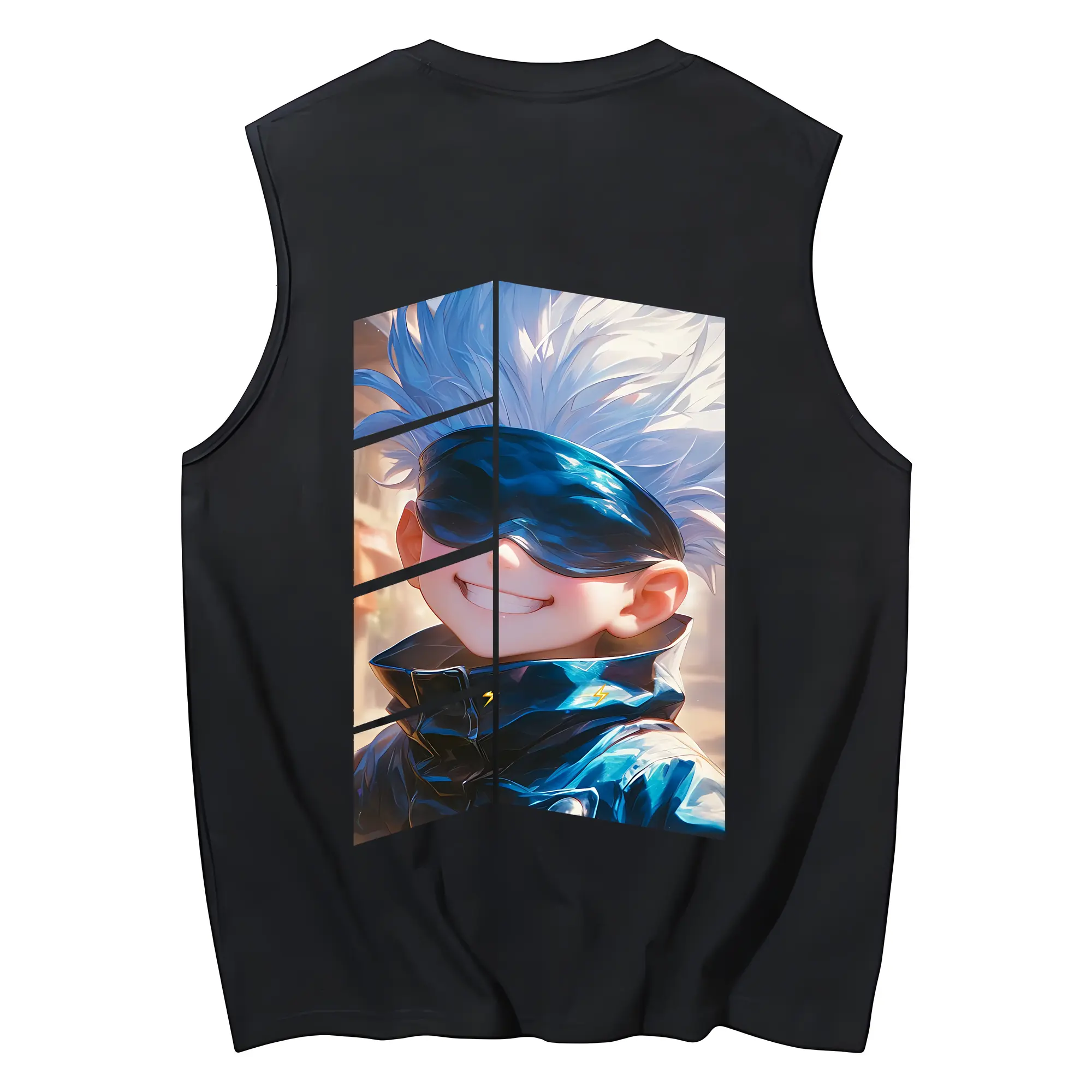 呪術廻戦 グッズ,五条 悟 - コットン100% タンクトップ ・ 背面プリント ・ タイトシルエット ・ 快適 通気性 ・ スポーツ カジュアル 散歩用