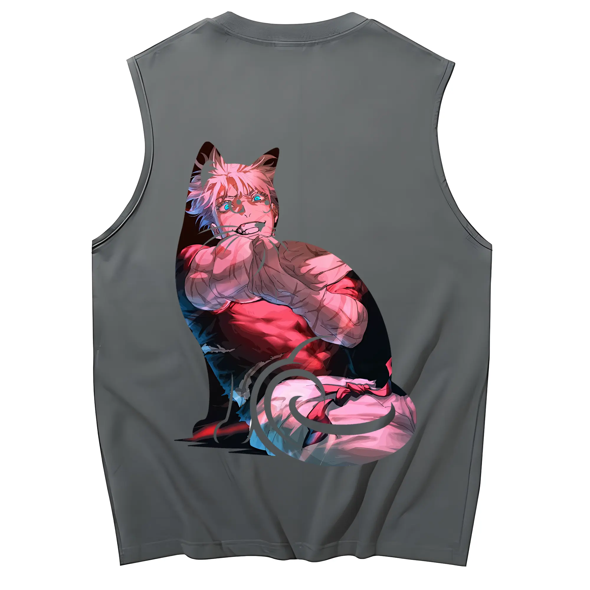 呪術廻戦 グッズ,五条 悟 - コットン100% タンクトップ ・ 背面プリント ・ タイトシルエット ・ 快適 通気性 ・ スポーツ カジュアル 散歩用