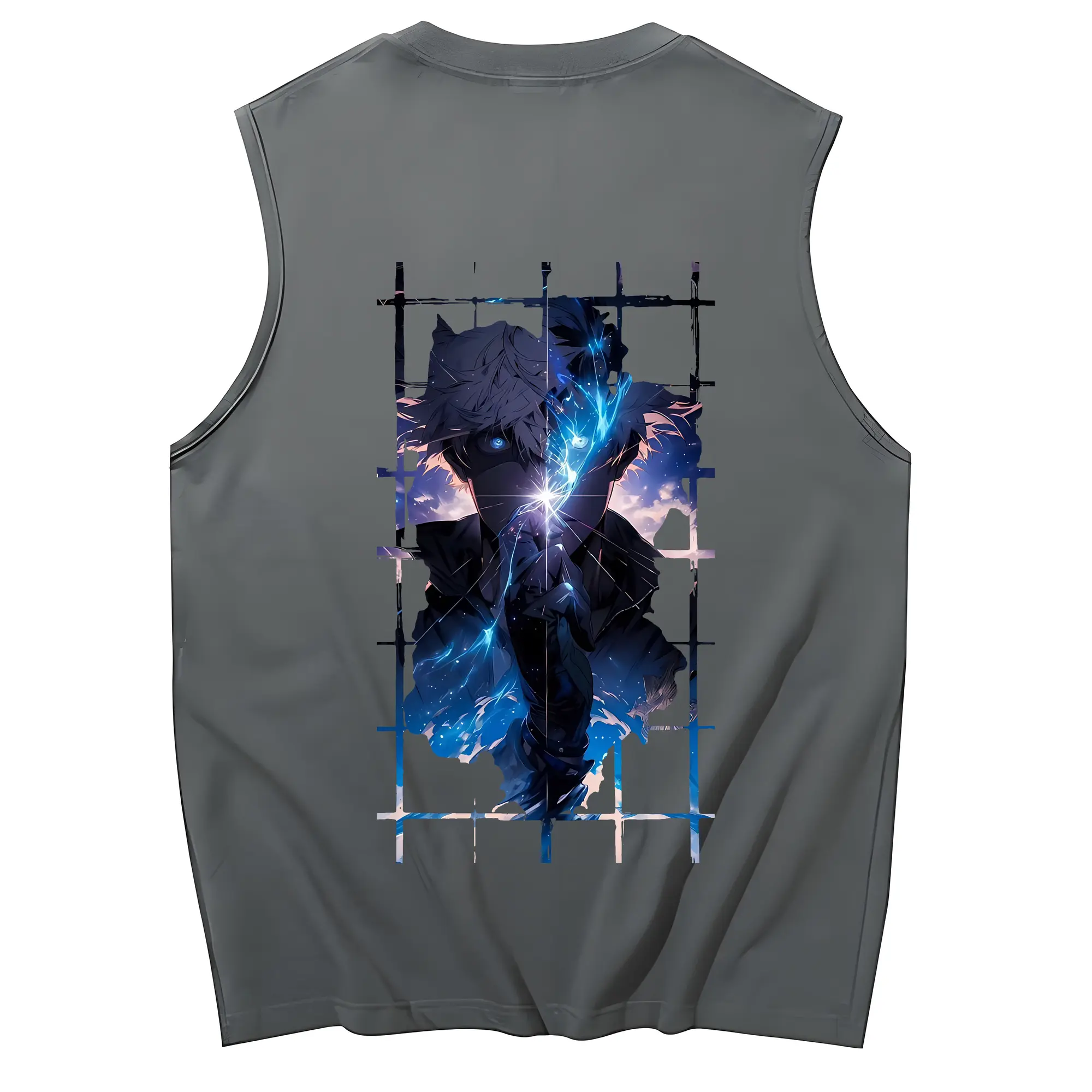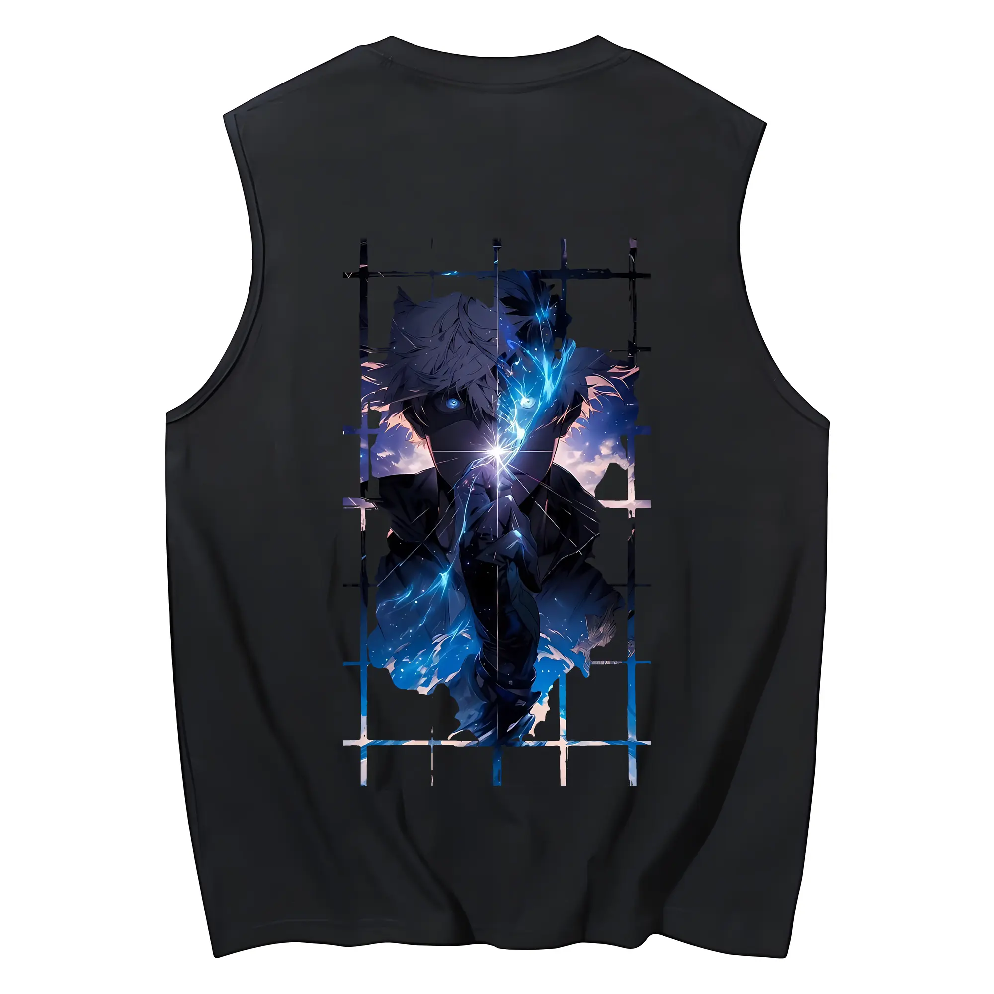 呪術廻戦 グッズ,五条 悟 - コットン100% タンクトップ ・ 背面プリント ・ タイトシルエット ・ 快適 通気性 ・ スポーツ カジュアル 散歩用