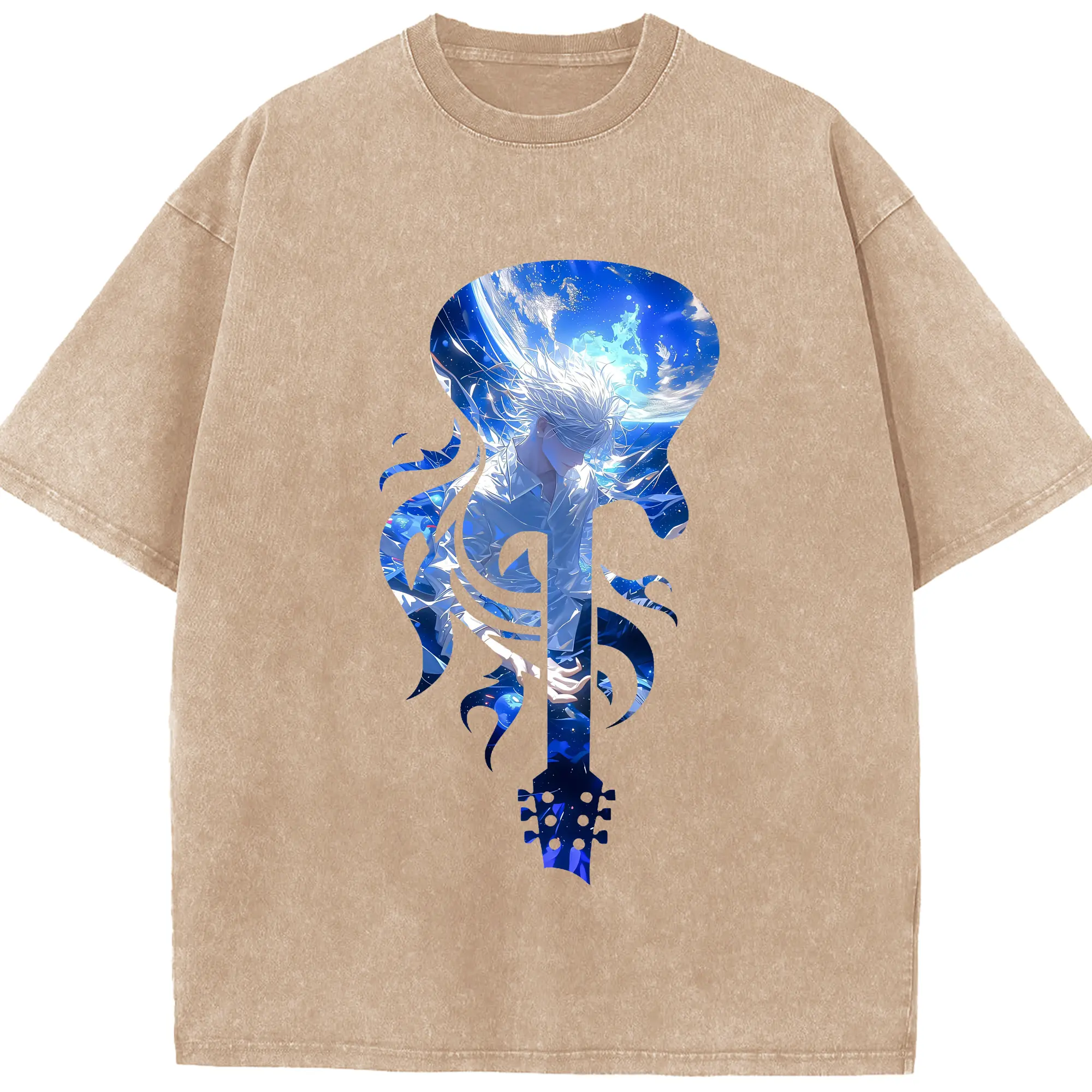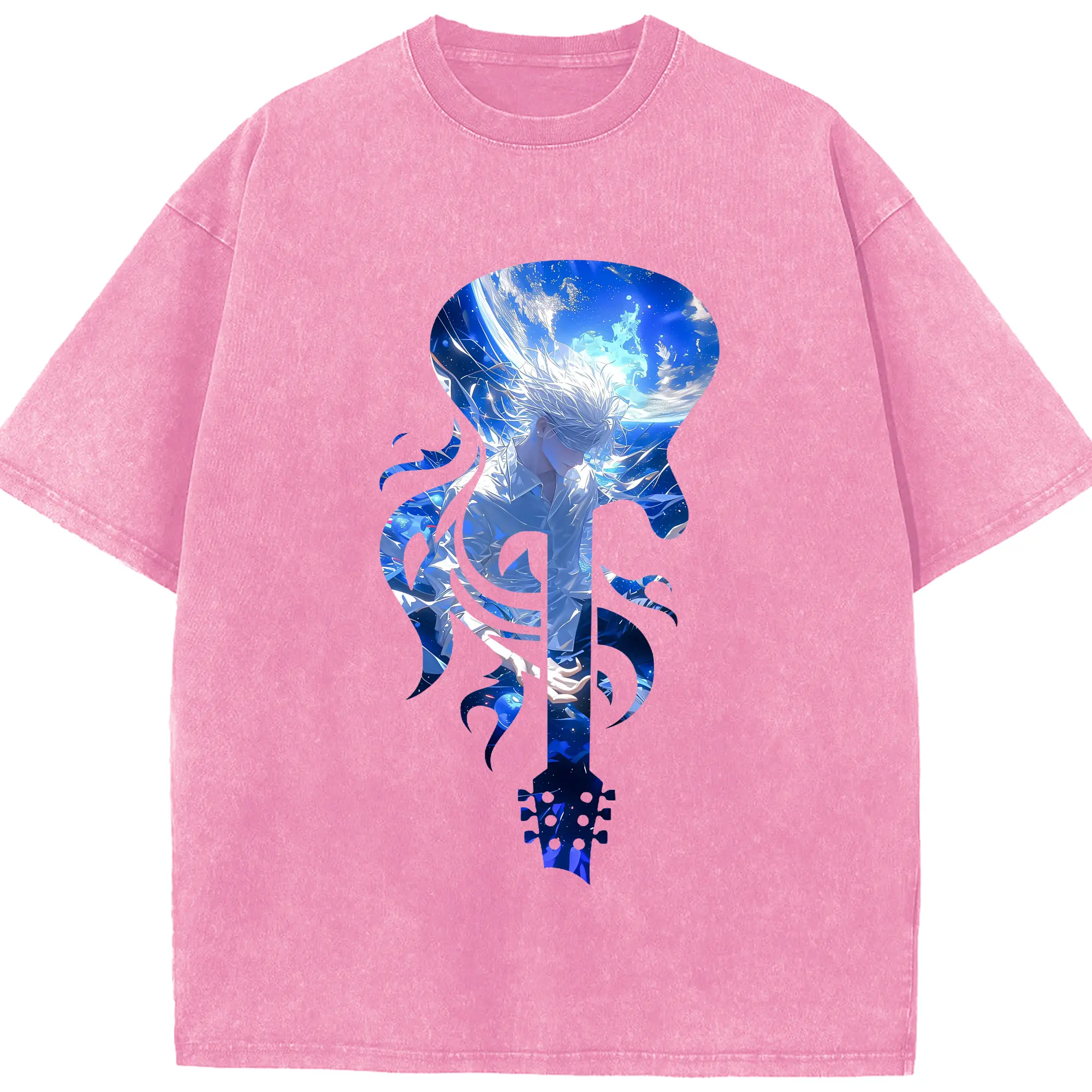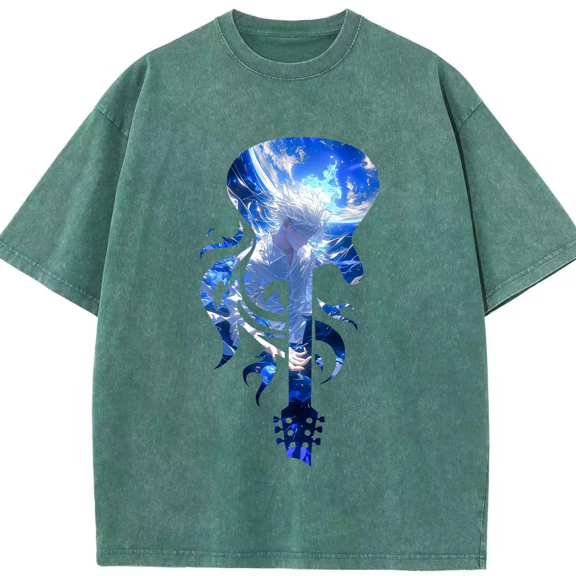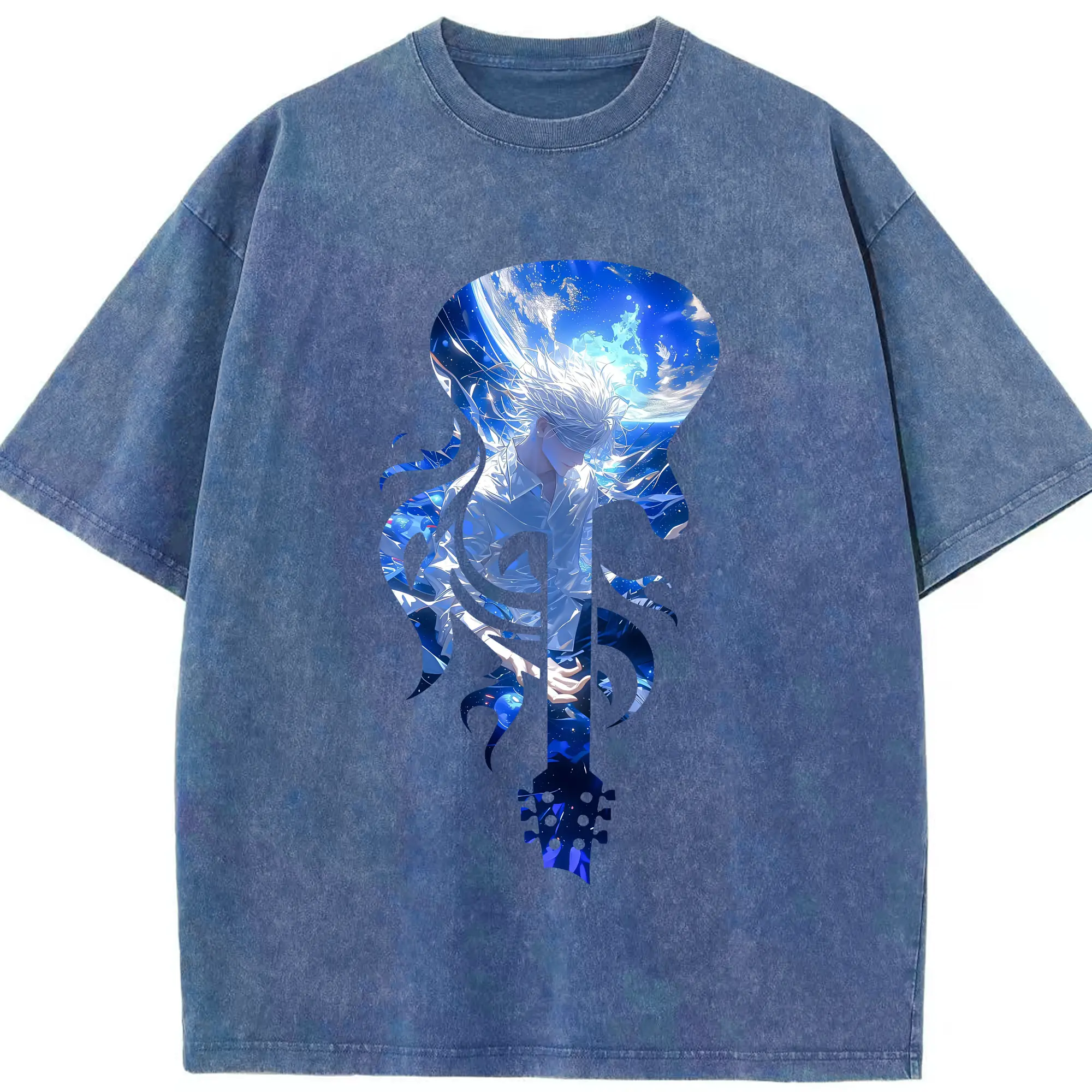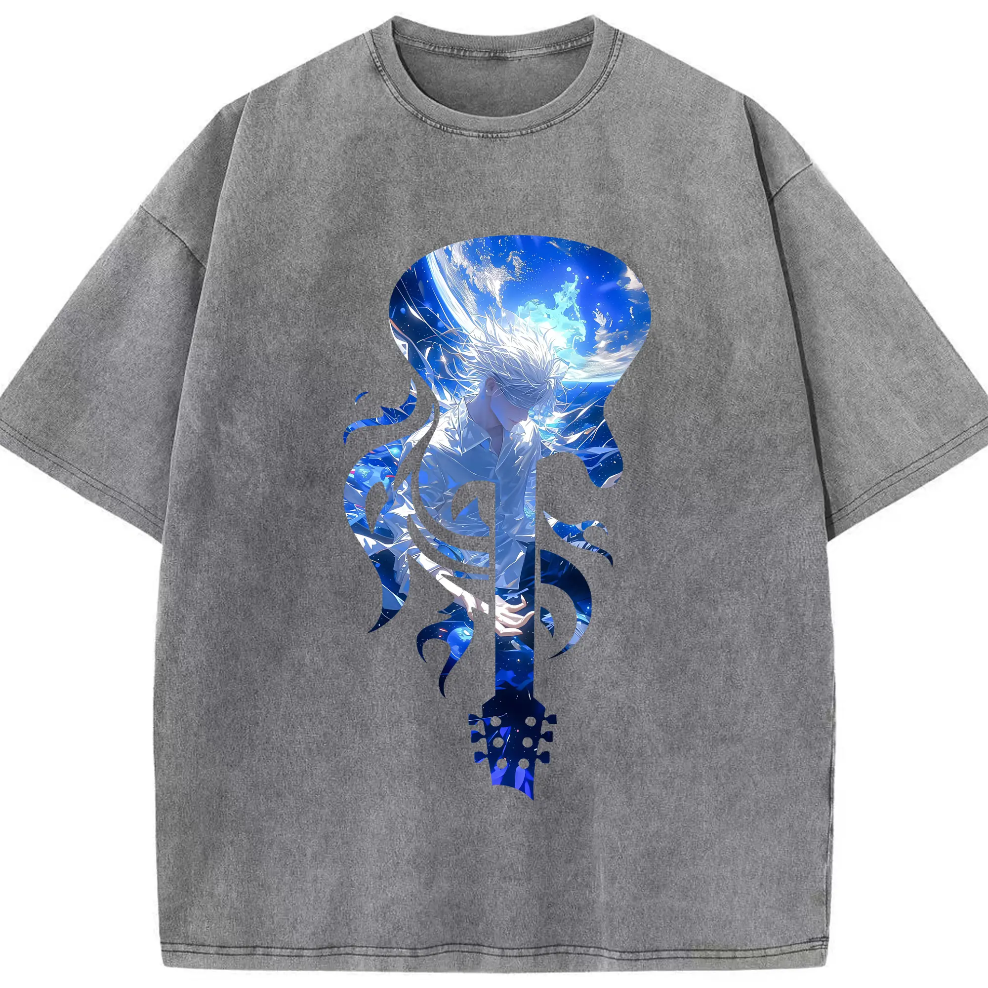 呪術廻戦 グッズ,五条 悟 - 綿100% ヴィンテージ風 半袖Tシャツ ・ フロントプリント ・ 柔らか肌触り ・ 通気性 快適 ・ スポーツ カジュアル 外出用