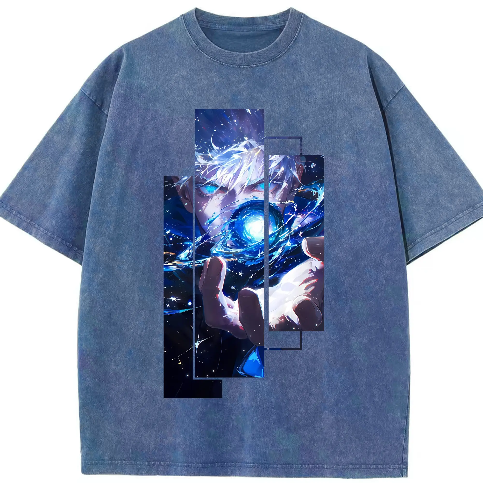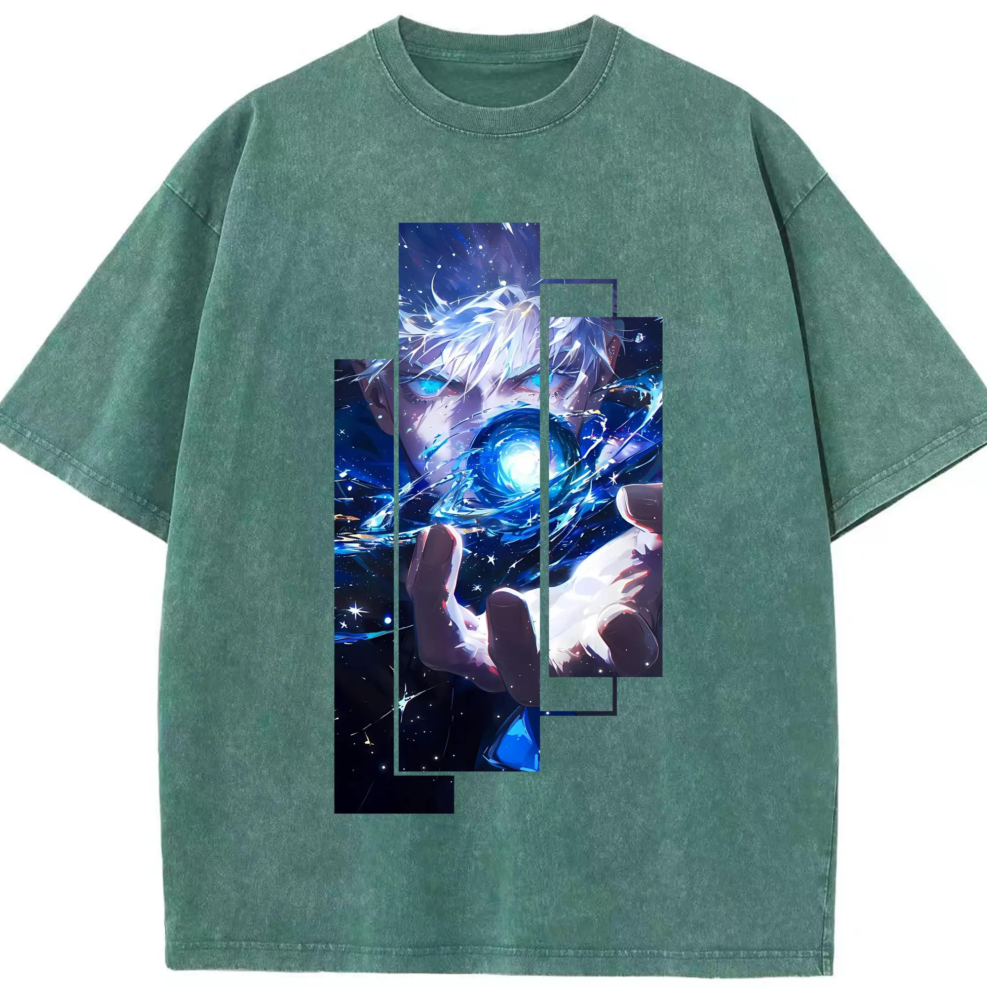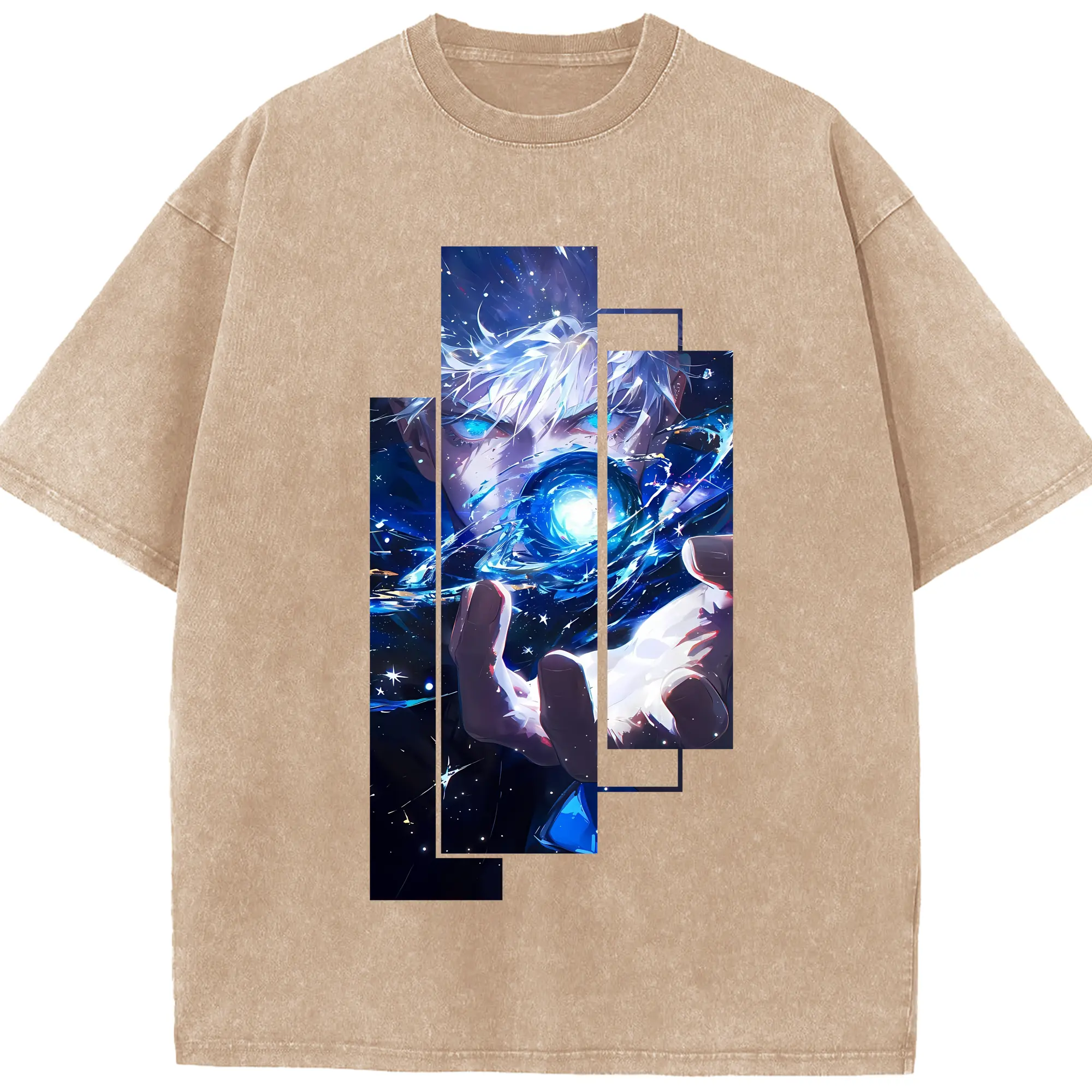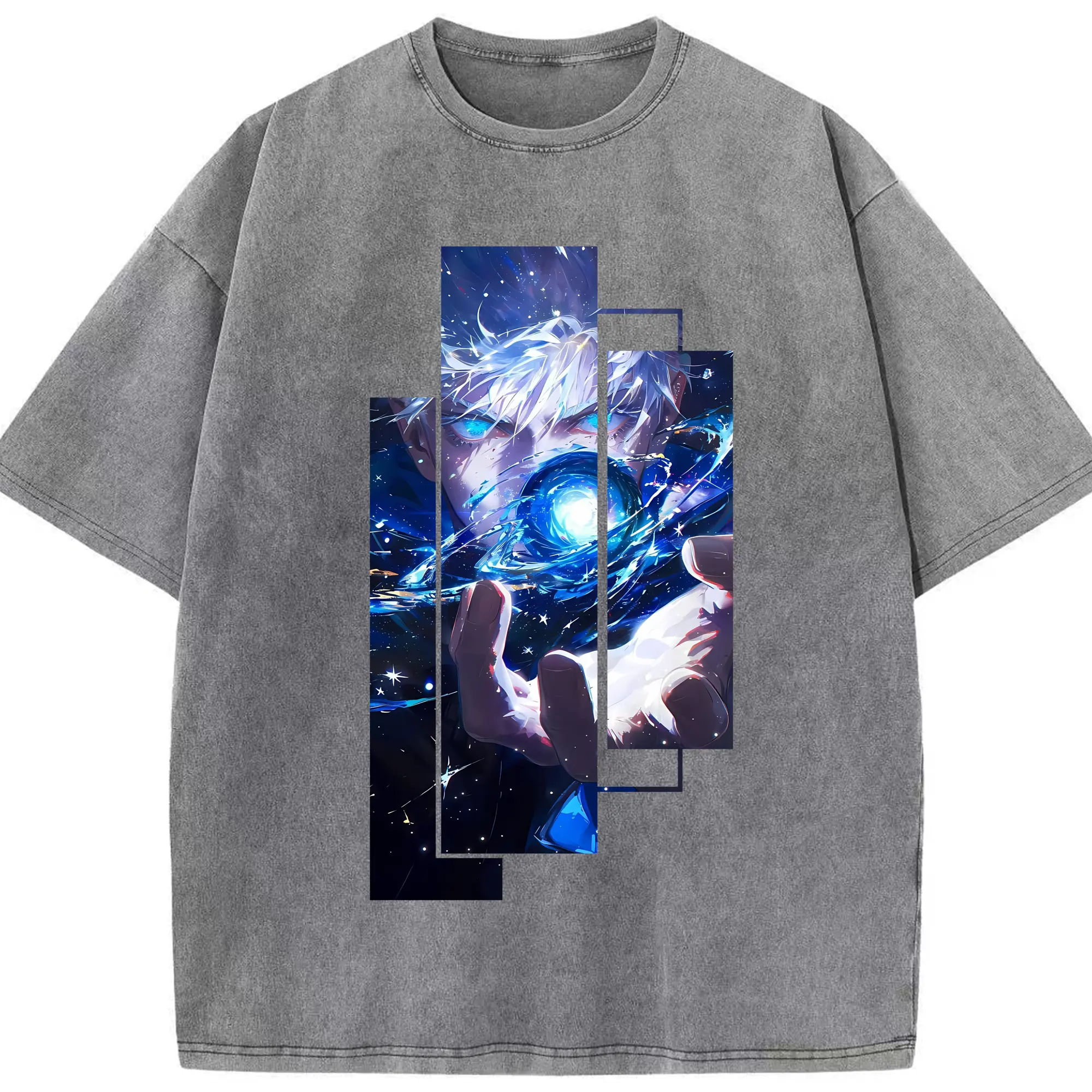 呪術廻戦 グッズ,五条 悟 - 綿100% ヴィンテージ風 半袖Tシャツ ・ フロントプリント ・ 柔らか肌触り ・ 通気性 快適 ・ スポーツ カジュアル 外出用