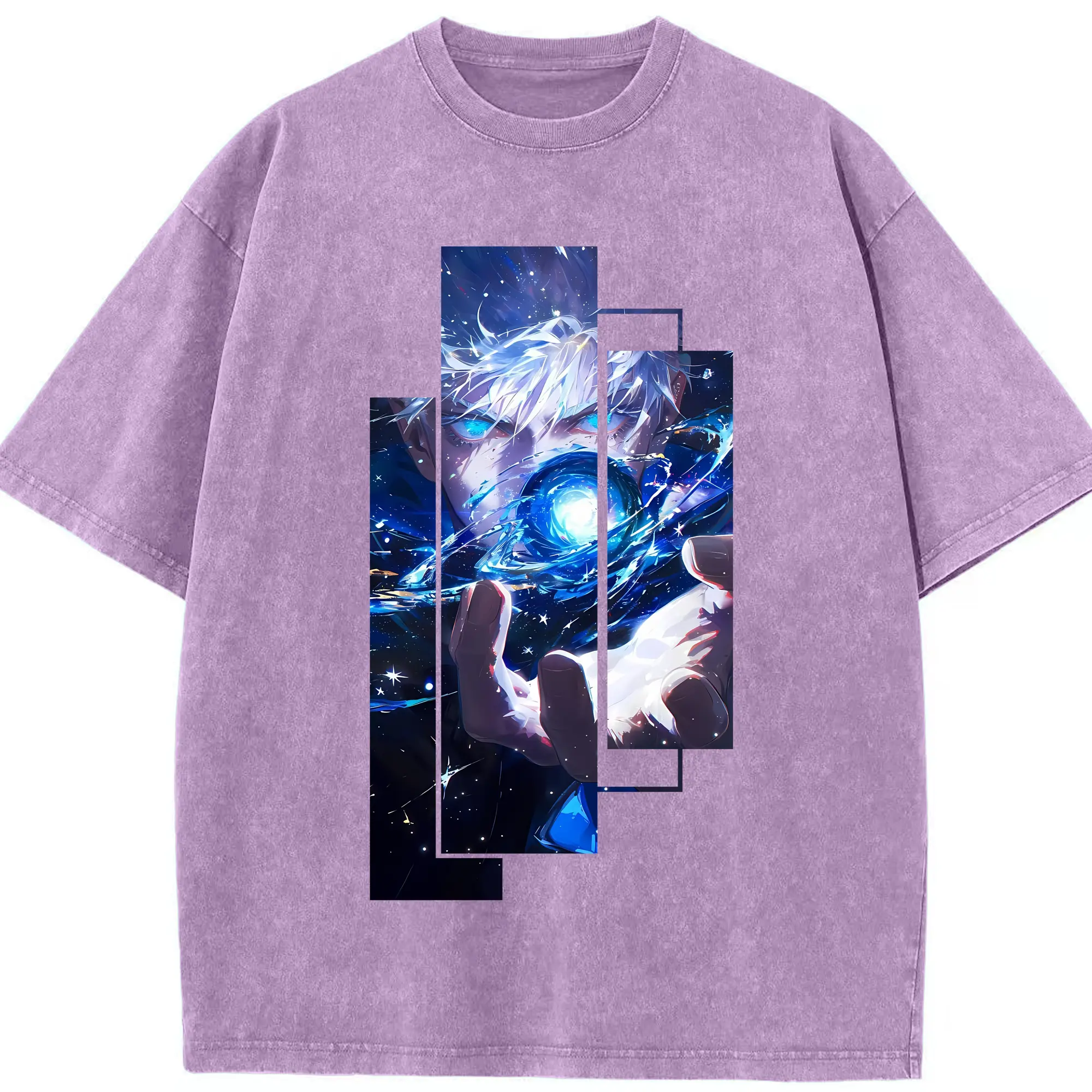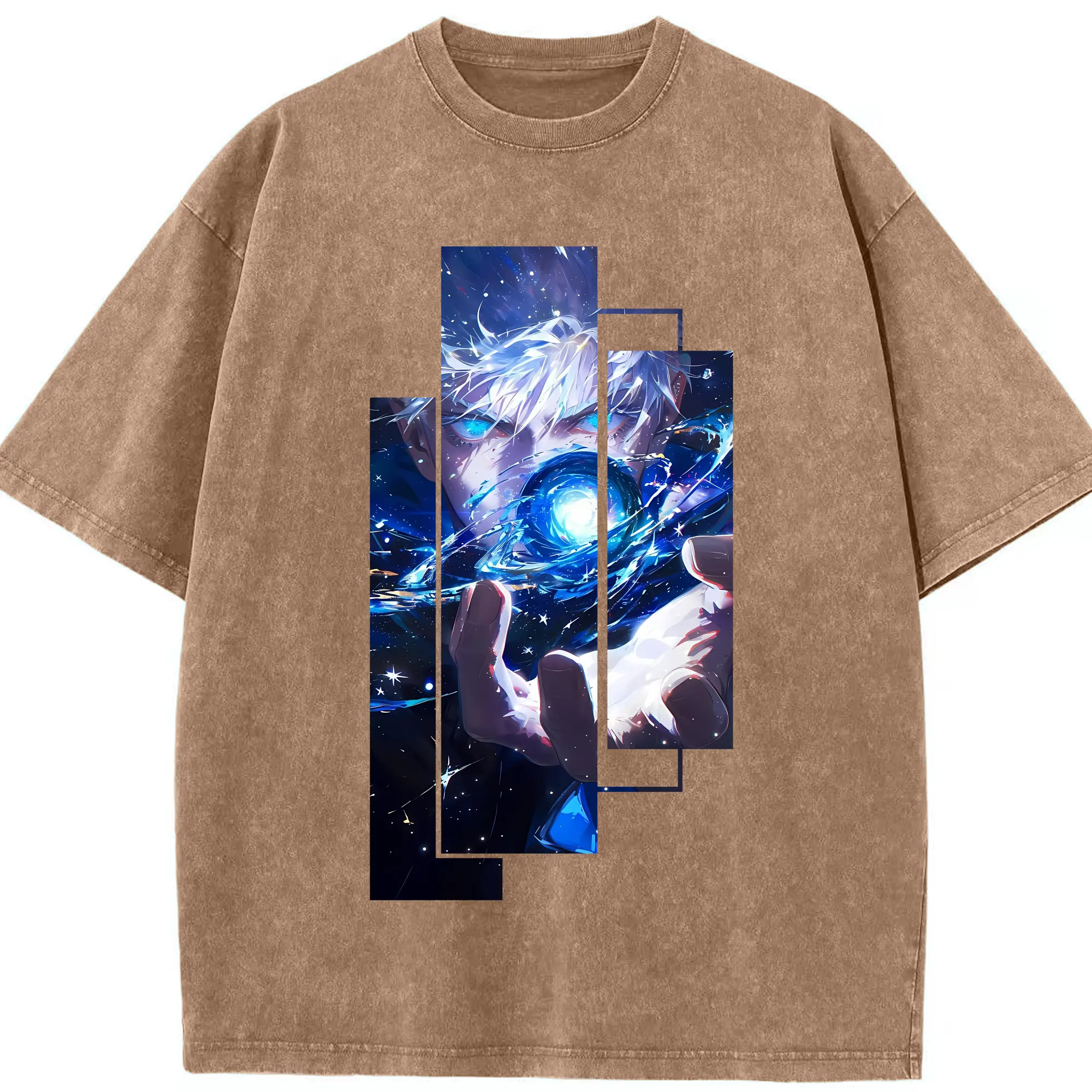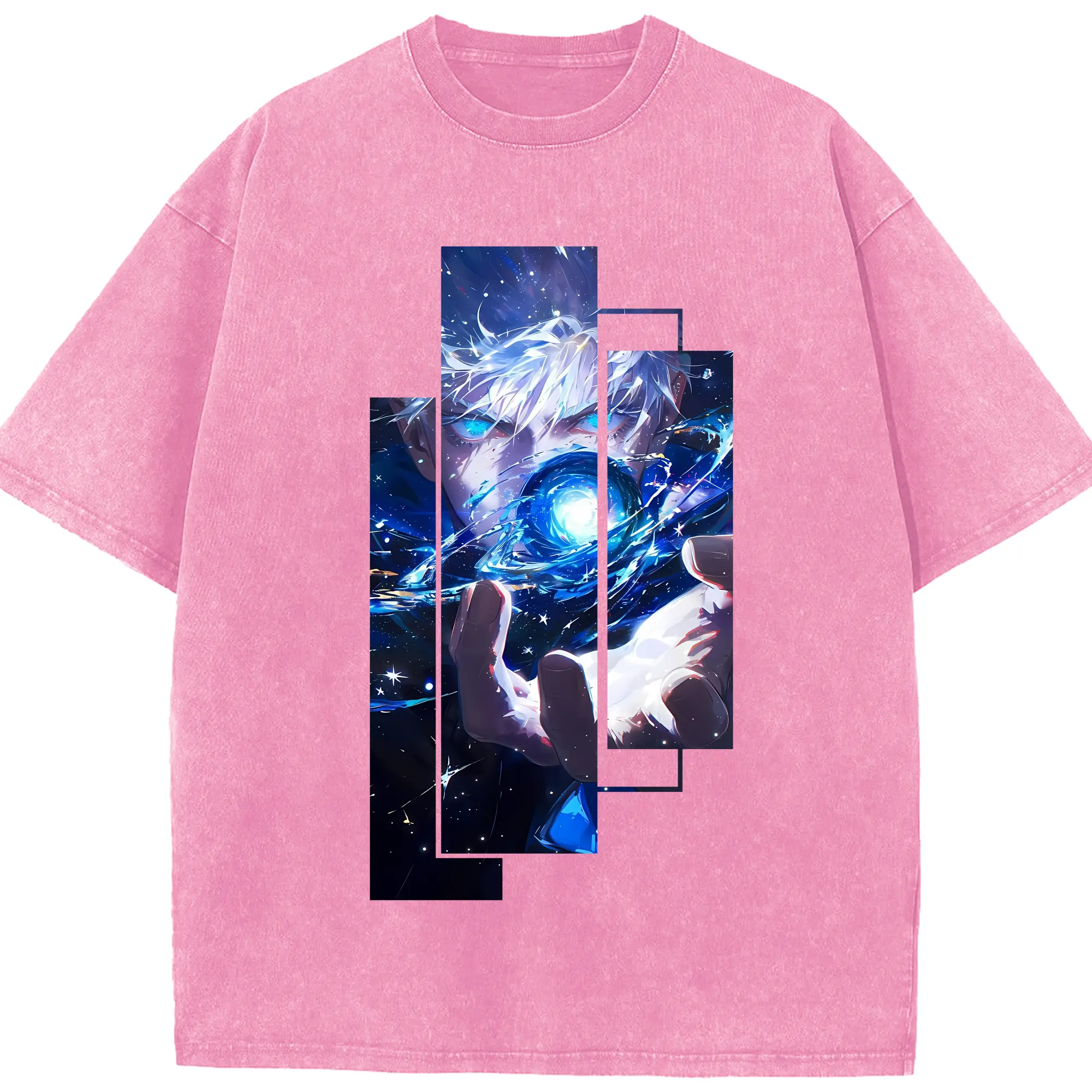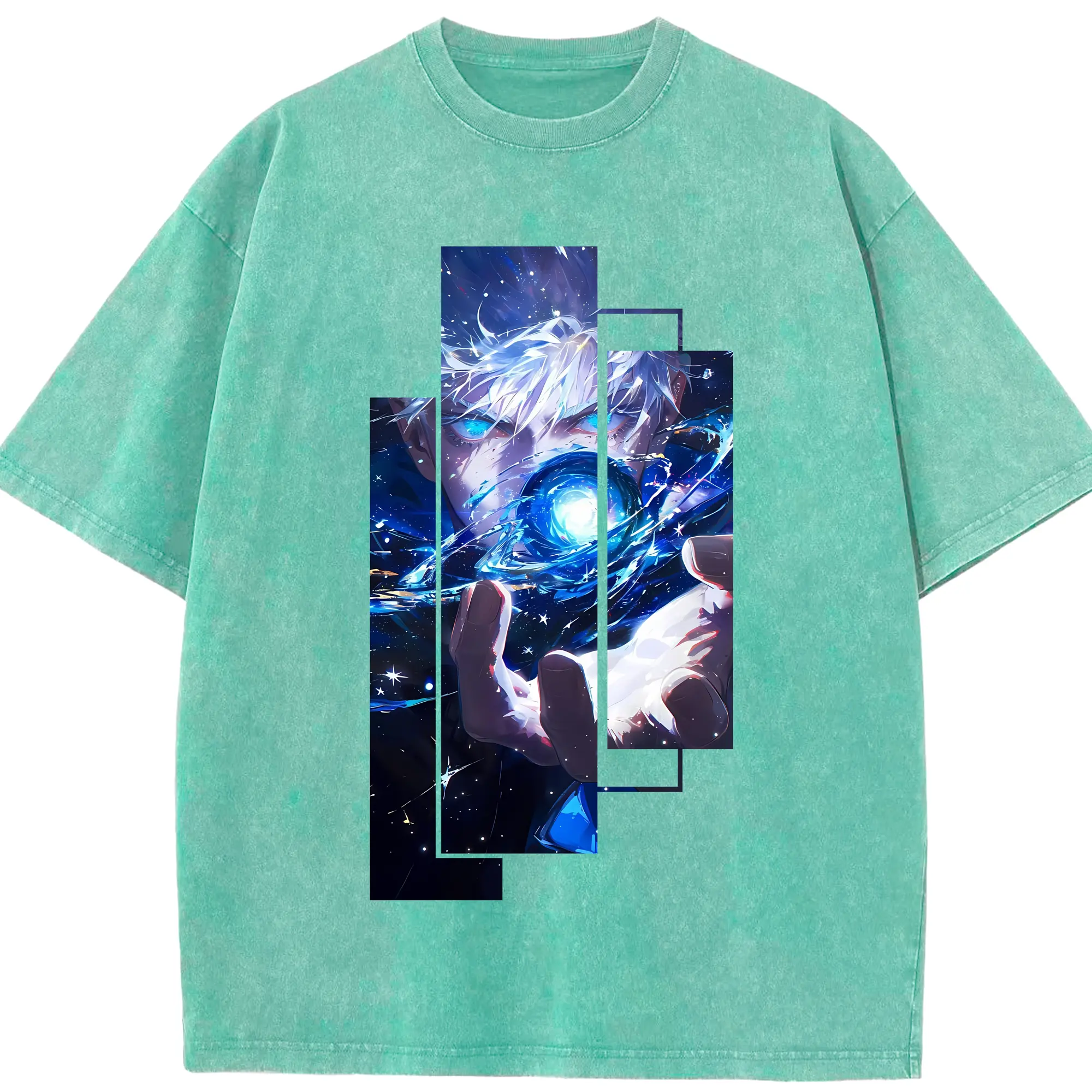 呪術廻戦 グッズ,五条 悟 - 綿100% ヴィンテージ風 半袖Tシャツ ・ フロントプリント ・ 柔らか肌触り ・ 通気性 快適 ・ スポーツ カジュアル 外出用