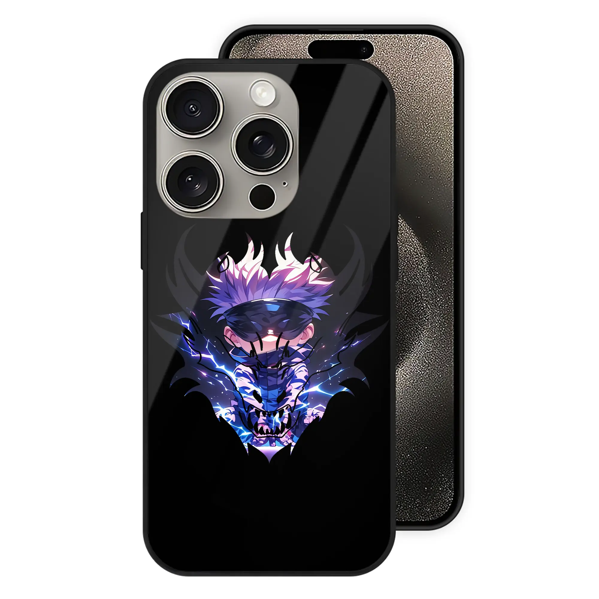 呪術廻戦 グッズ,五条 悟 - IPhone15Pro対応 ・ スマホケース ・ 背面ガラス ・ TPU+強化ガラス ・ 耐衝撃 ・ 黄変防止 ・ ワイヤレス充電対応 ・ 3D立体ボタン