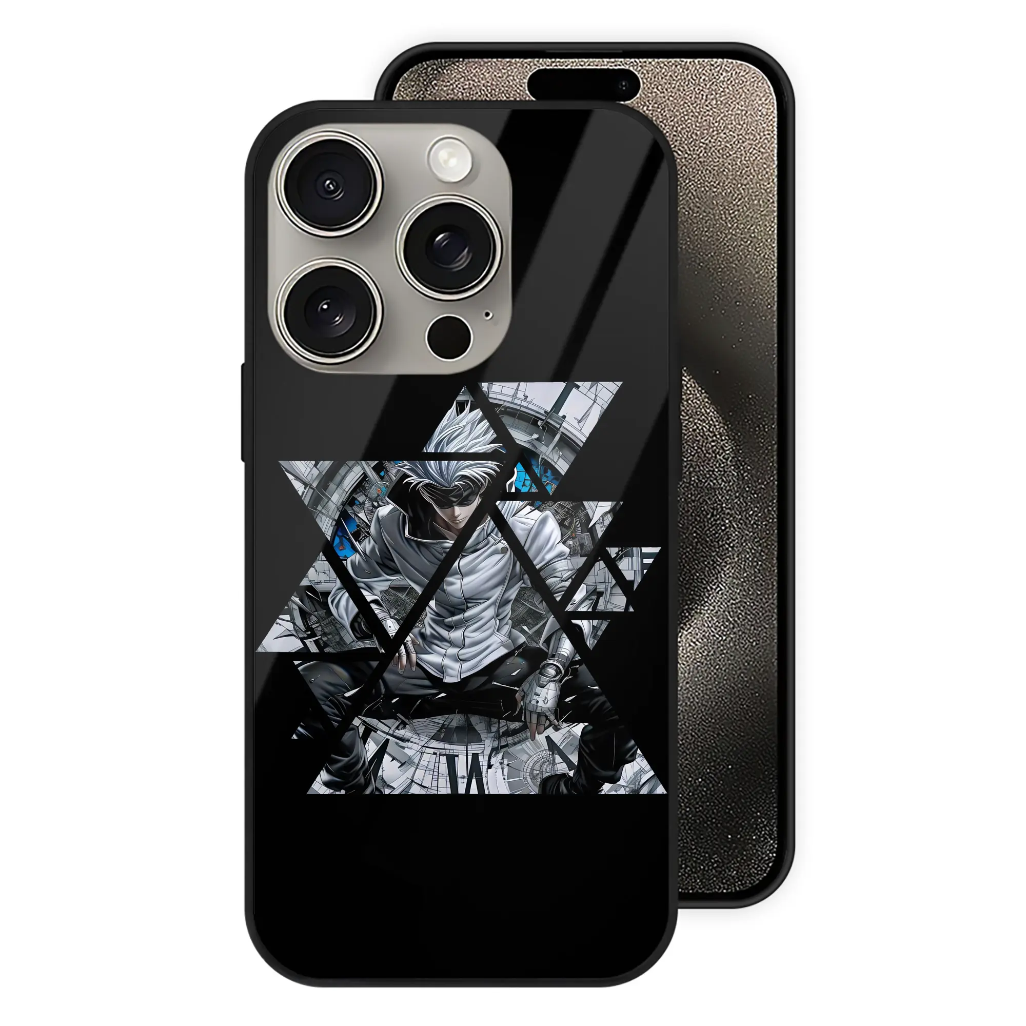 呪術廻戦 グッズ,五条 悟 - IPhone15Pro対応 ・ スマホケース ・ 背面ガラス ・ TPU+強化ガラス ・ 耐衝撃 ・ 黄変防止 ・ ワイヤレス充電対応 ・ 3D立体ボタン