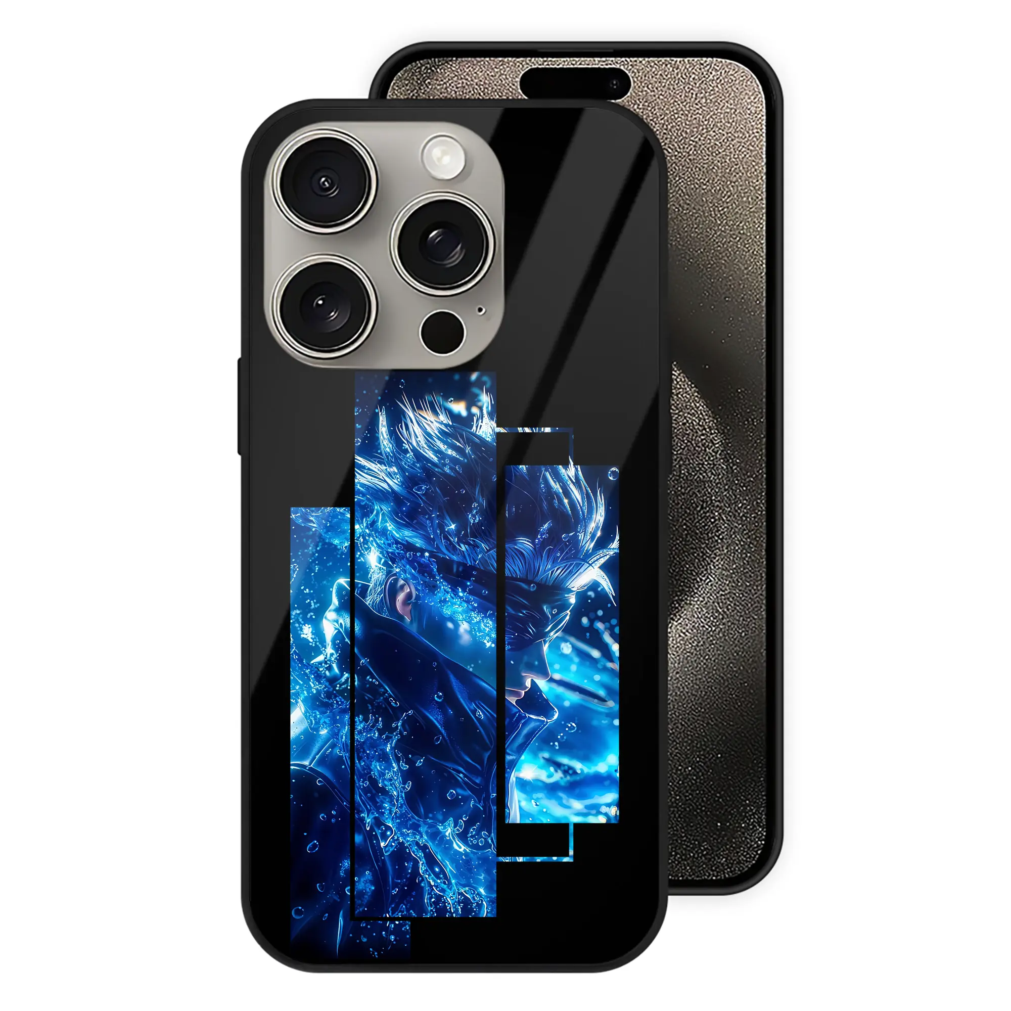 呪術廻戦 グッズ,五条 悟 - IPhone15Pro対応 ・ スマホケース ・ 背面ガラス ・ TPU+強化ガラス ・ 耐衝撃 ・ 黄変防止 ・ ワイヤレス充電対応 ・ 3D立体ボタン