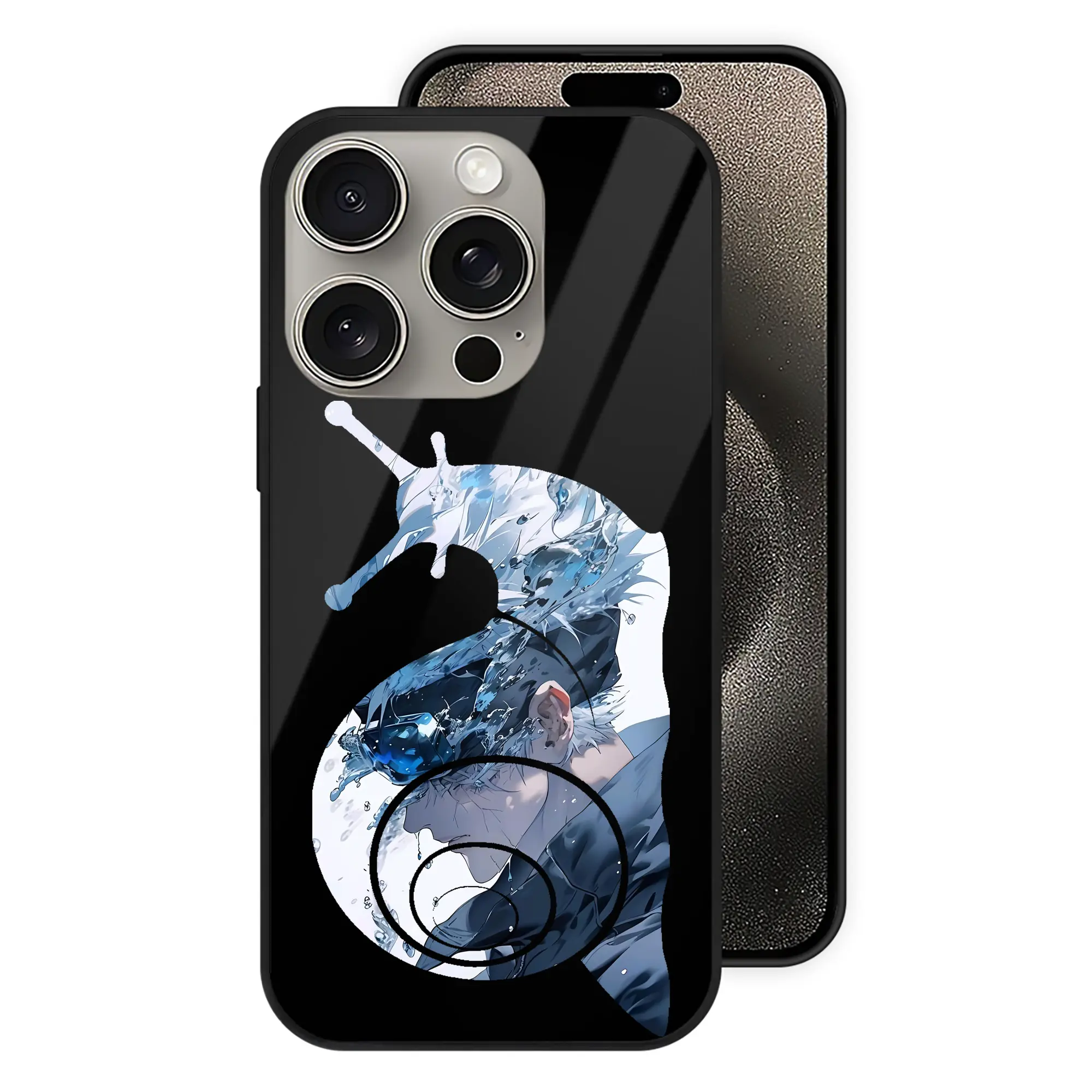 呪術廻戦 グッズ,五条 悟 - IPhone15Pro対応 ・ スマホケース ・ 背面ガラス ・ TPU+強化ガラス ・ 耐衝撃 ・ 黄変防止 ・ ワイヤレス充電対応 ・ 3D立体ボタン