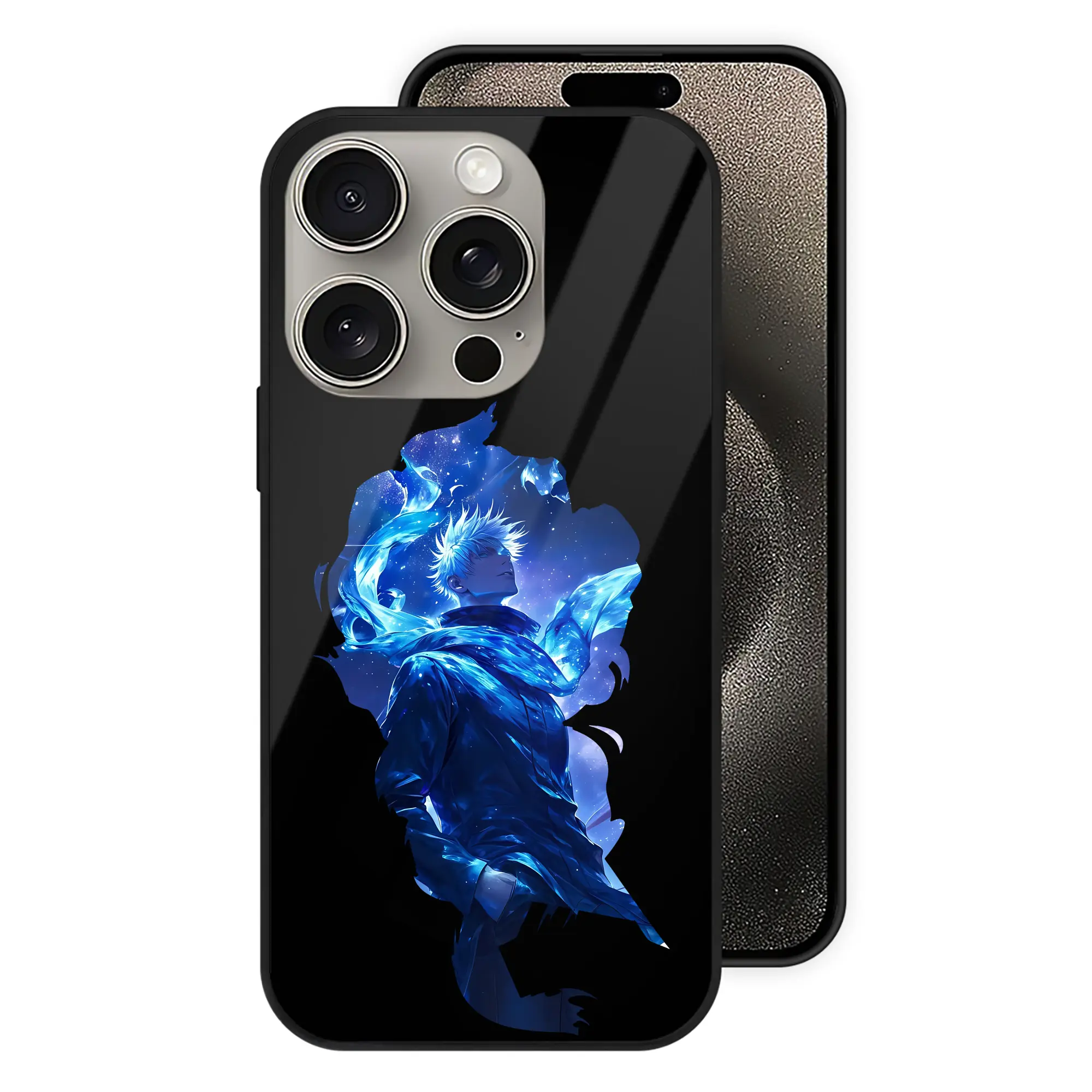 呪術廻戦 グッズ,五条 悟 - IPhone15Pro対応 ・ スマホケース ・ 背面ガラス ・ TPU+強化ガラス ・ 耐衝撃 ・ 黄変防止 ・ ワイヤレス充電対応 ・ 3D立体ボタン