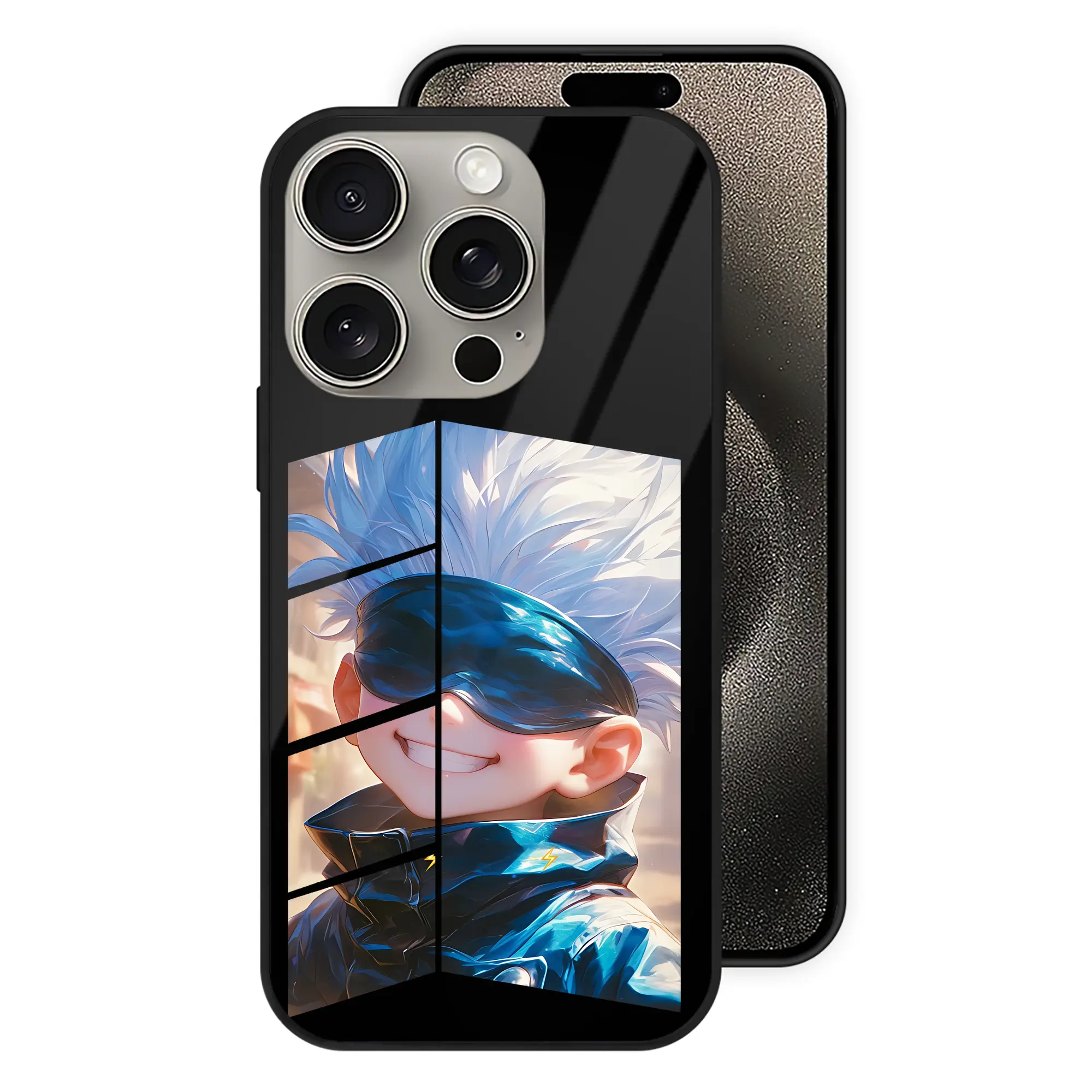 呪術廻戦 グッズ,五条 悟 - IPhone15Pro対応 ・ スマホケース ・ 背面ガラス ・ TPU+強化ガラス ・ 耐衝撃 ・ 黄変防止 ・ ワイヤレス充電対応 ・ 3D立体ボタン