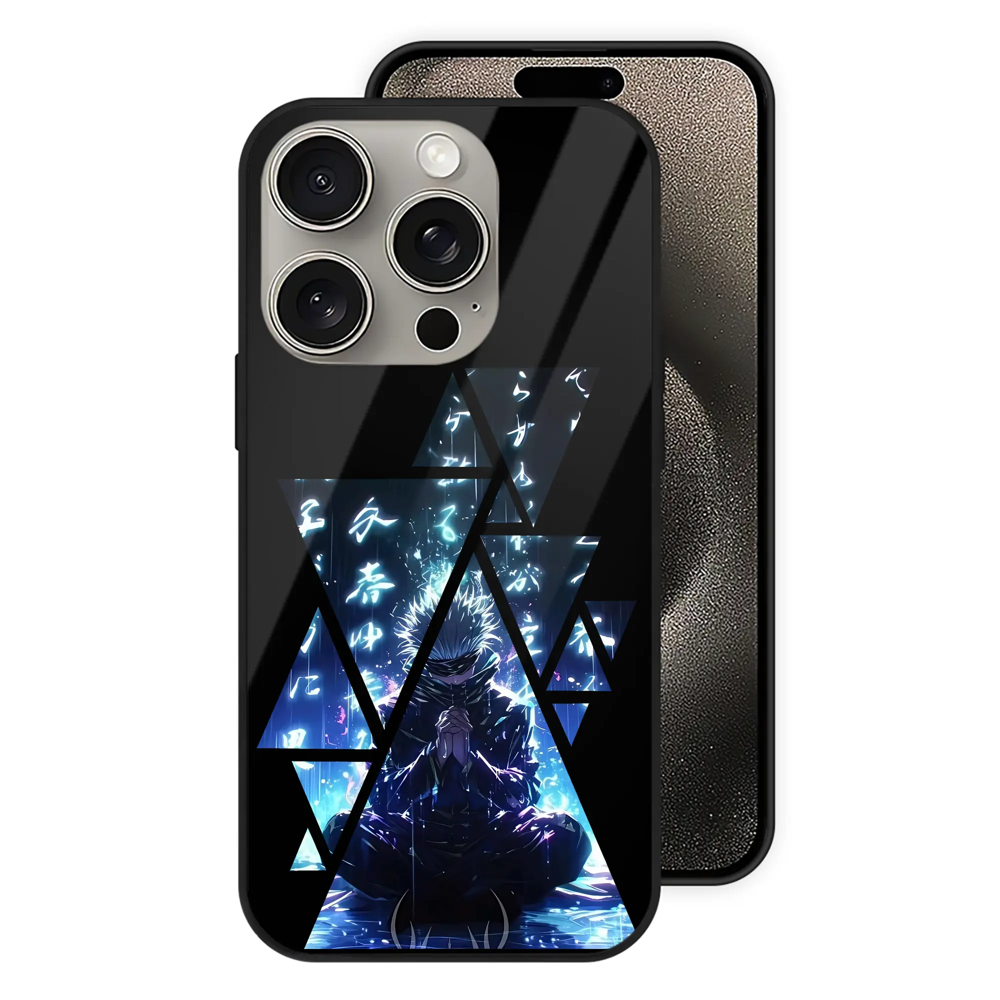 呪術廻戦 グッズ,五条 悟 - IPhone15Pro対応 ・ スマホケース ・ 背面ガラス ・ TPU+強化ガラス ・ 耐衝撃 ・ 黄変防止 ・ ワイヤレス充電対応 ・ 3D立体ボタン