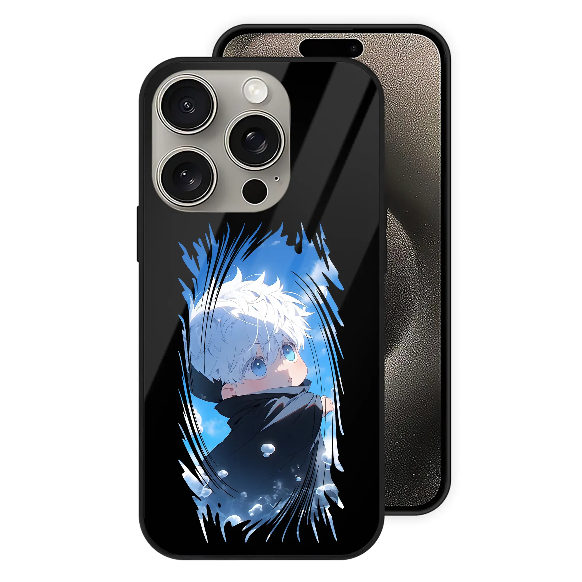 呪術廻戦 グッズ,五条 悟 - IPhone15Pro対応 ・ スマホケース ・ 背面ガラス ・ TPU+強化ガラス ・ 耐衝撃 ・ 黄変防止 ・ ワイヤレス充電対応 ・ 3D立体ボタン