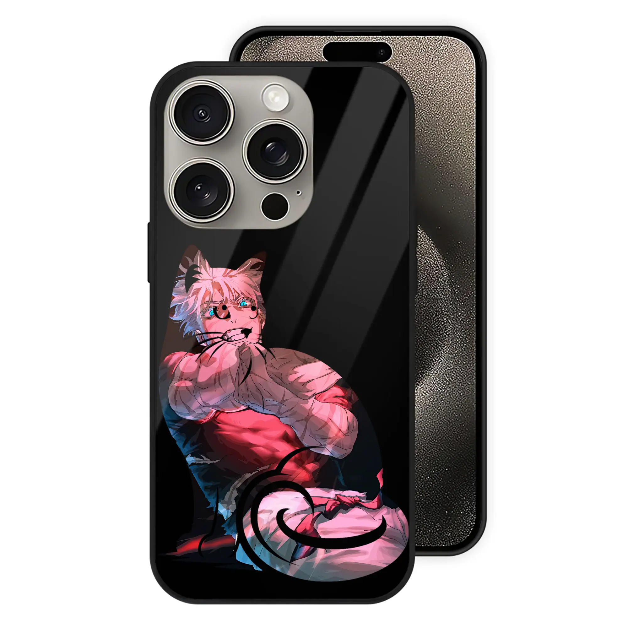 呪術廻戦 グッズ,五条 悟 - IPhone15Pro対応 ・ スマホケース ・ 背面ガラス ・ TPU+強化ガラス ・ 耐衝撃 ・ 黄変防止 ・ ワイヤレス充電対応 ・ 3D立体ボタン