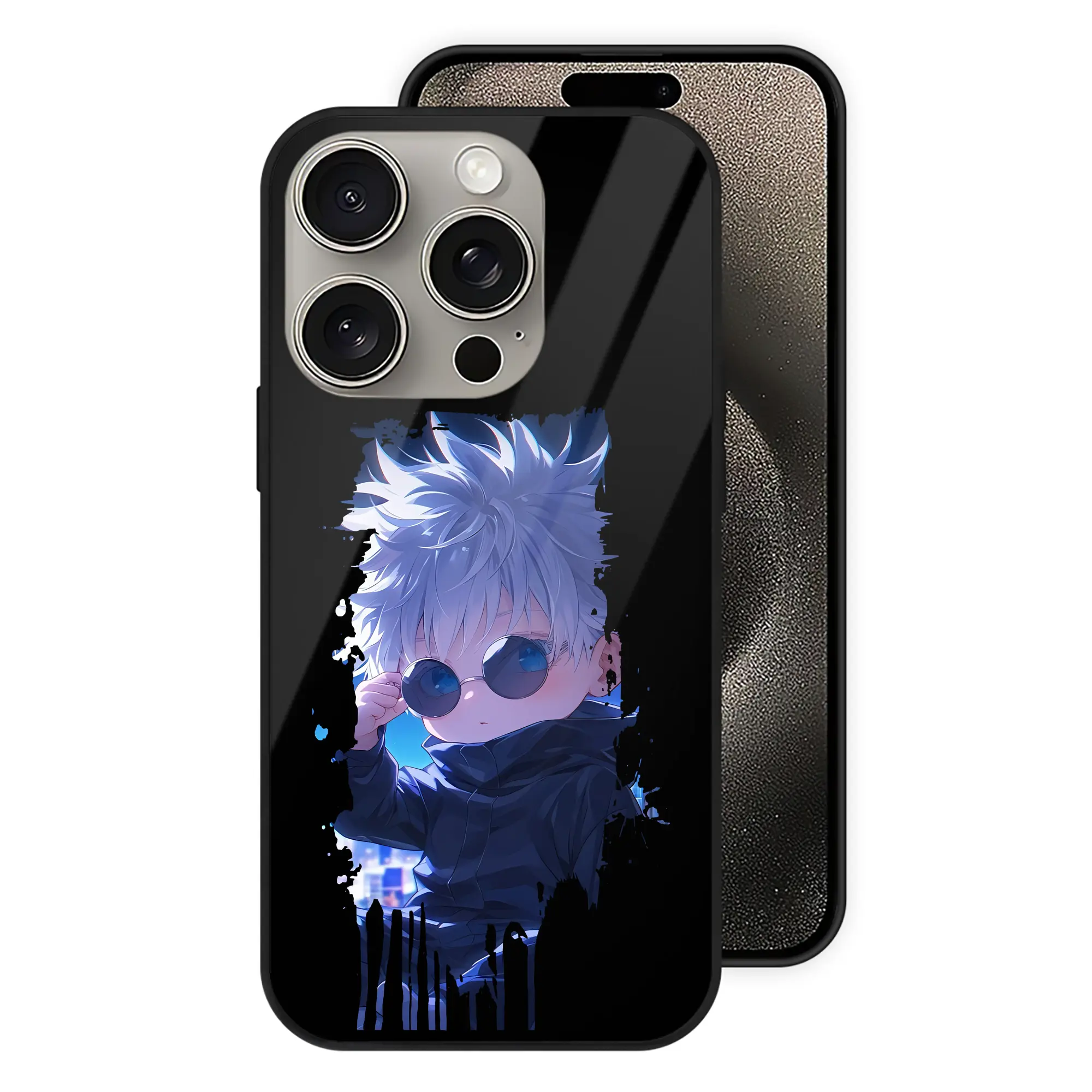 呪術廻戦 グッズ,五条 悟 - IPhone15Pro対応 ・ スマホケース ・ 背面ガラス ・ TPU+強化ガラス ・ 耐衝撃 ・ 黄変防止 ・ ワイヤレス充電対応 ・ 3D立体ボタン