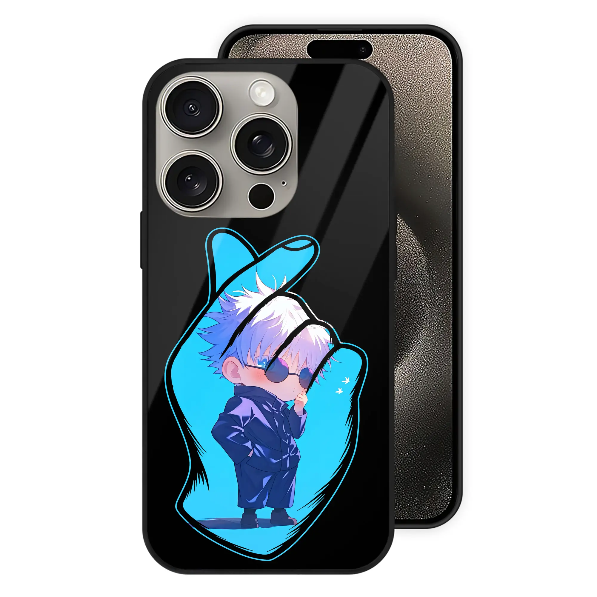 呪術廻戦 グッズ,五条 悟 - IPhone15Pro対応 ・ スマホケース ・ 背面ガラス ・ TPU+強化ガラス ・ 耐衝撃 ・ 黄変防止 ・ ワイヤレス充電対応 ・ 3D立体ボタン