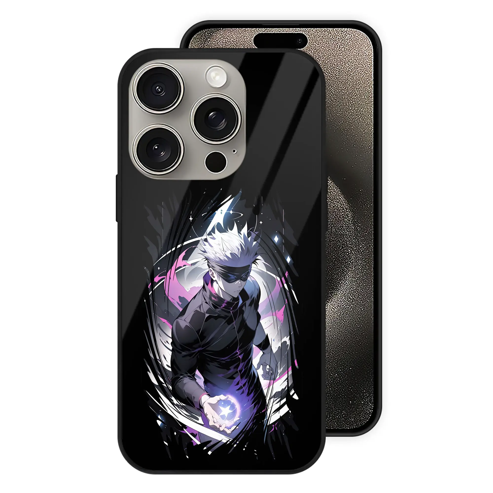 呪術廻戦 グッズ,五条 悟 - IPhone15Pro対応 ・ スマホケース ・ 背面ガラス ・ TPU+強化ガラス ・ 耐衝撃 ・ 黄変防止 ・ ワイヤレス充電対応 ・ 3D立体ボタン