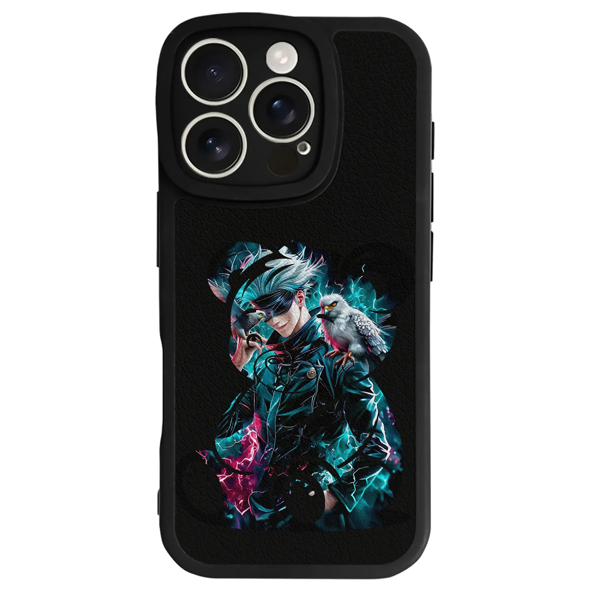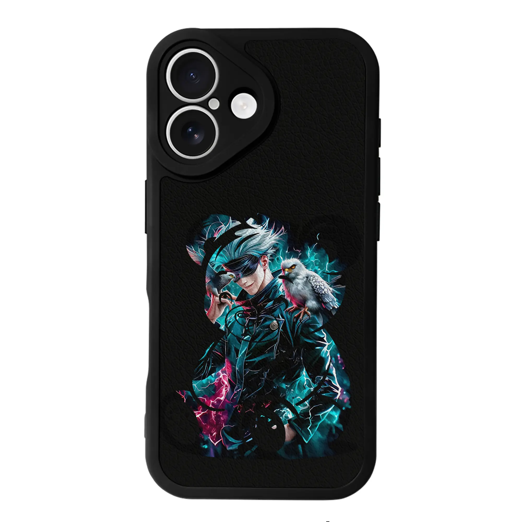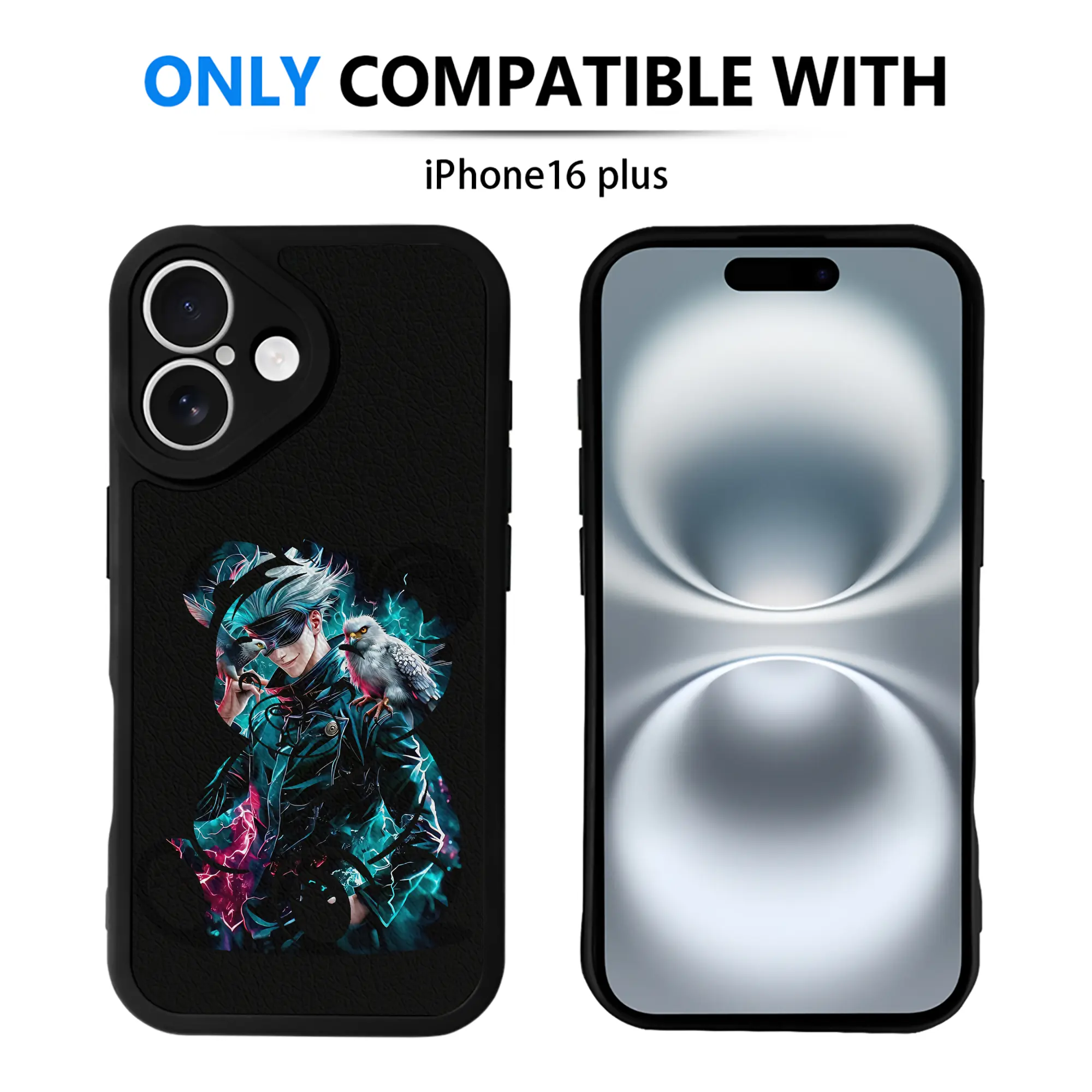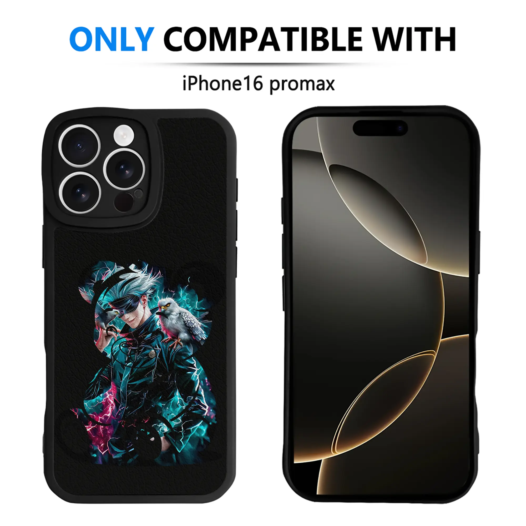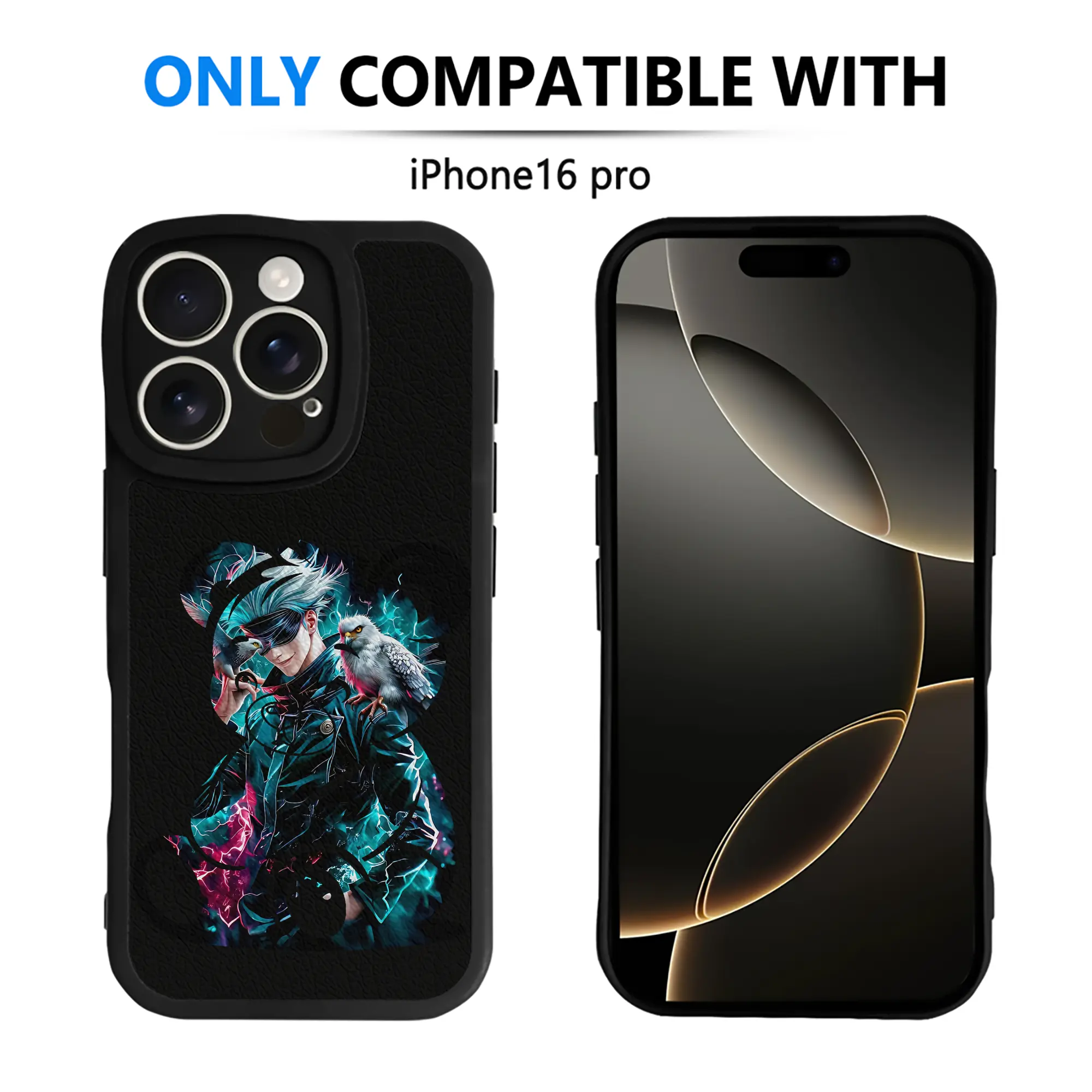 呪術廻戦 グッズ,五条 悟 - IPhone 16シリーズ対応 ・ シリコンスマホケース ・ レザー調 ・ 高精度フィット ・ 耐衝撃 ・ ワイヤレス充電対応 ・ 精密カット