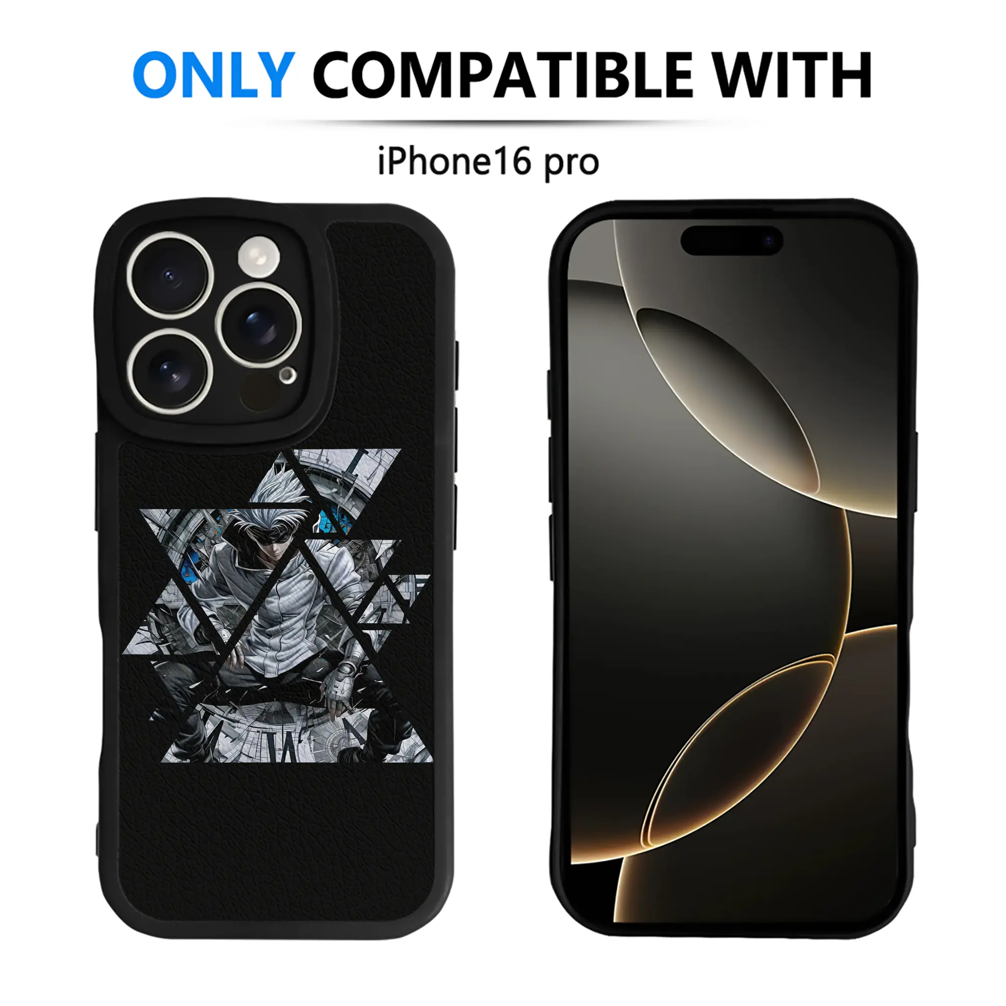 呪術廻戦 グッズ,五条 悟 - IPhone 16シリーズ対応 ・ シリコンスマホケース ・ レザー調 ・ 高精度フィット ・ 耐衝撃 ・ ワイヤレス充電対応 ・ 精密カット
