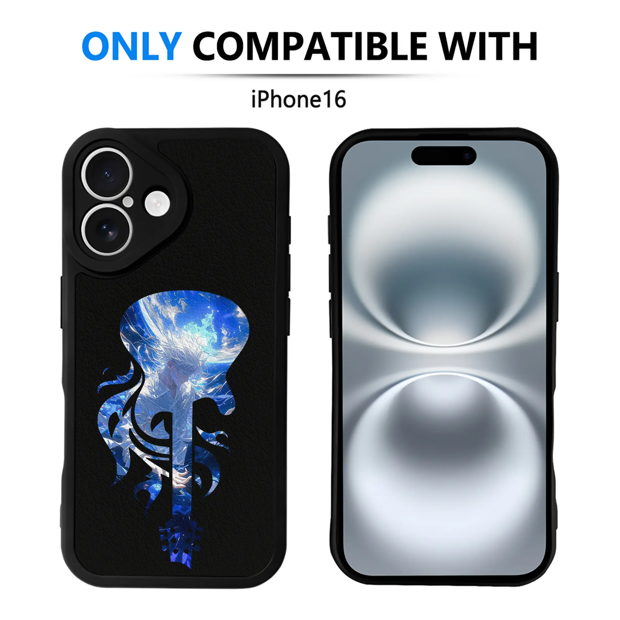 呪術廻戦 グッズ,五条 悟 - IPhone 16シリーズ対応 ・ シリコンスマホケース ・ レザー調 ・ 高精度フィット ・ 耐衝撃 ・ ワイヤレス充電対応 ・ 精密カット