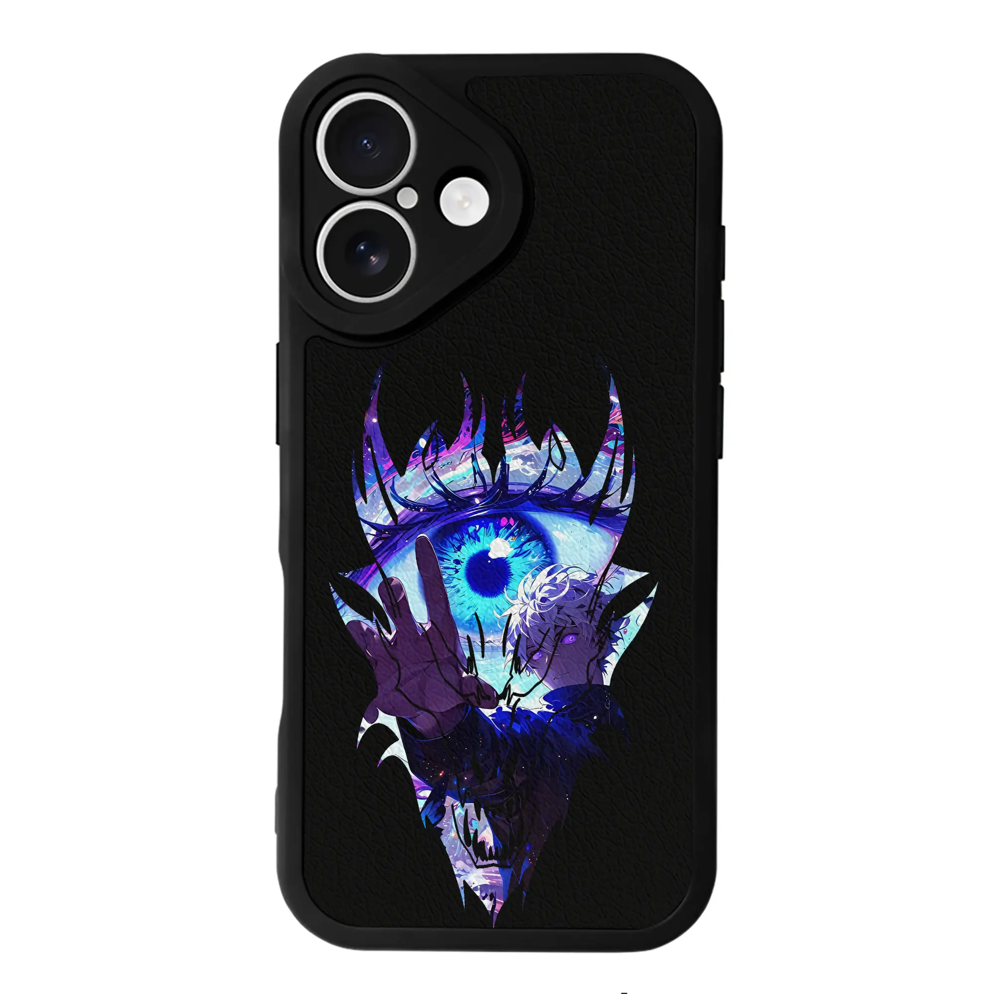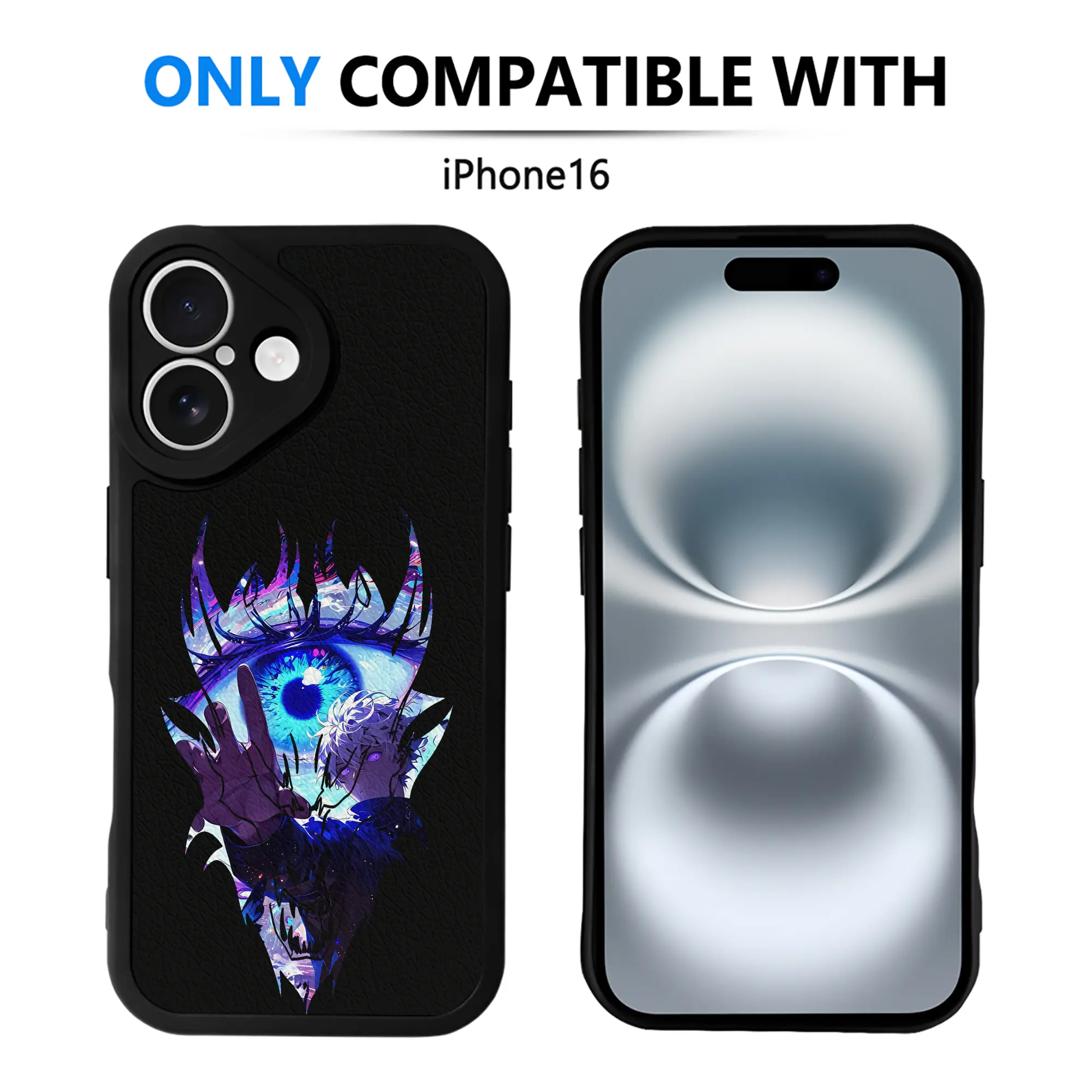 呪術廻戦 グッズ,五条 悟 - IPhone 16シリーズ対応 ・ シリコンスマホケース ・ レザー調 ・ 高精度フィット ・ 耐衝撃 ・ ワイヤレス充電対応 ・ 精密カット