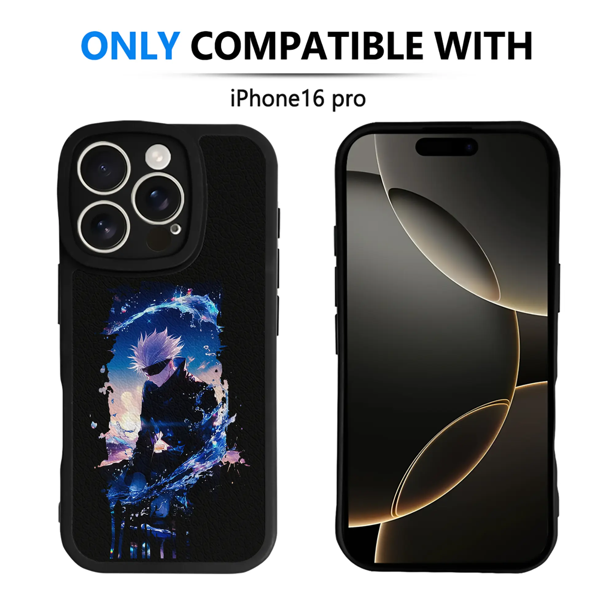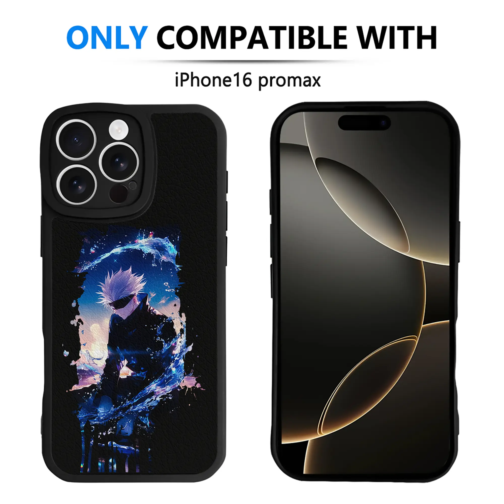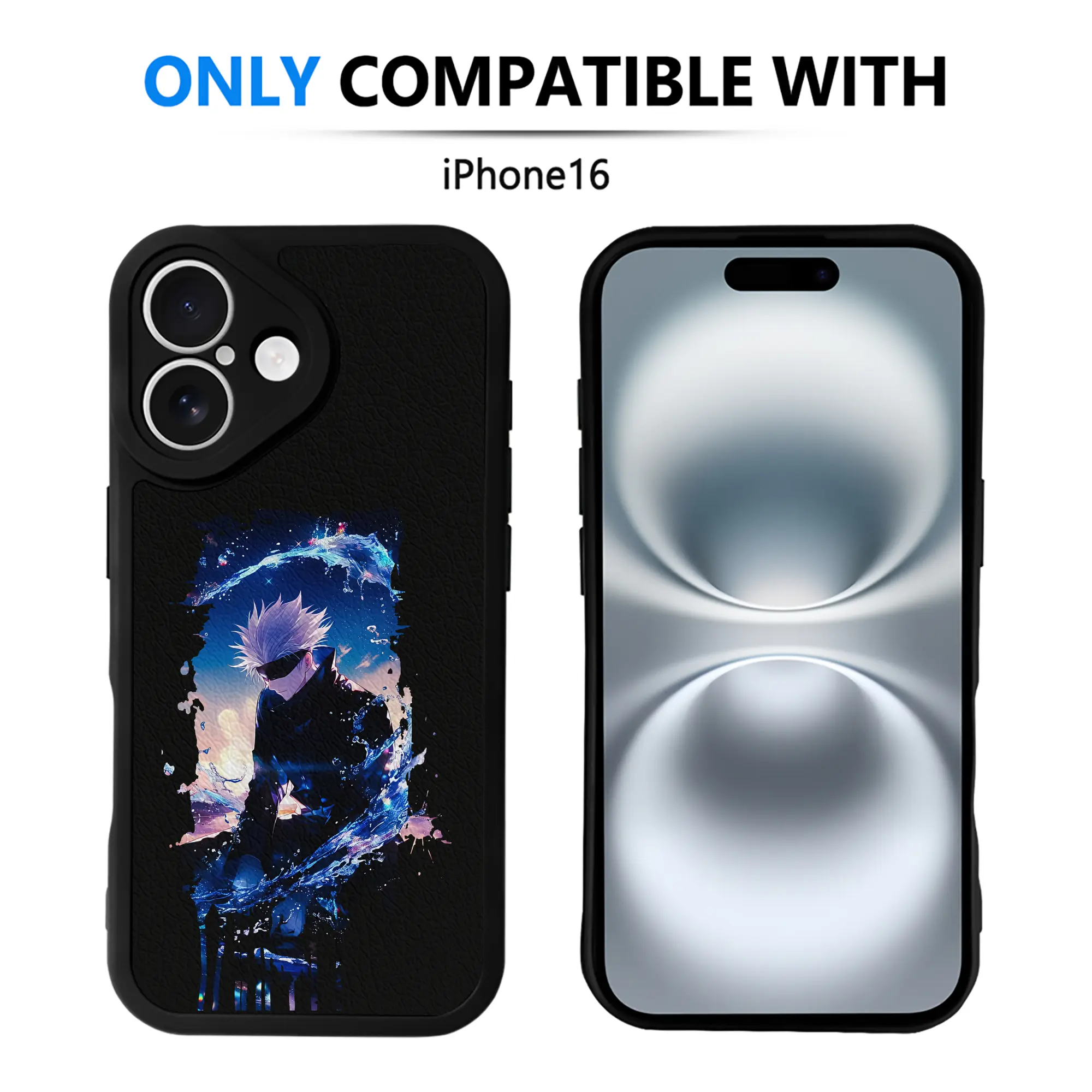呪術廻戦 グッズ,五条 悟 - IPhone 16シリーズ対応 ・ シリコンスマホケース ・ レザー調 ・ 高精度フィット ・ 耐衝撃 ・ ワイヤレス充電対応 ・ 精密カット