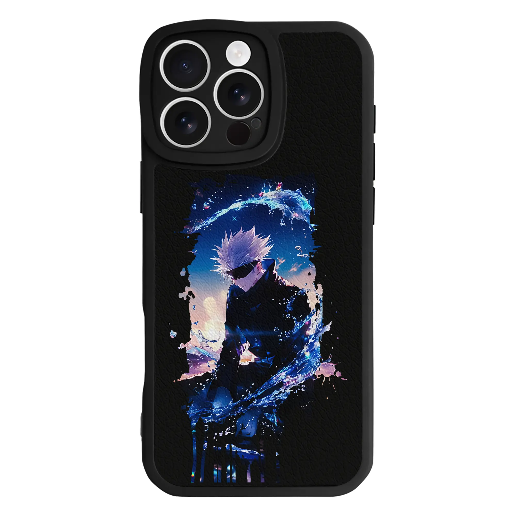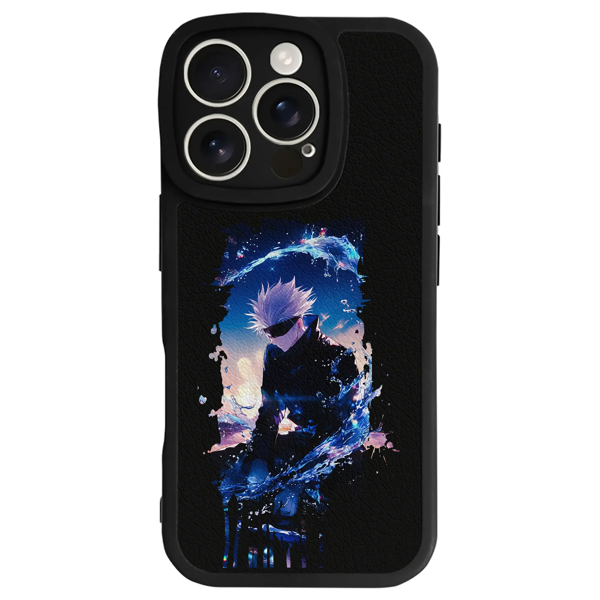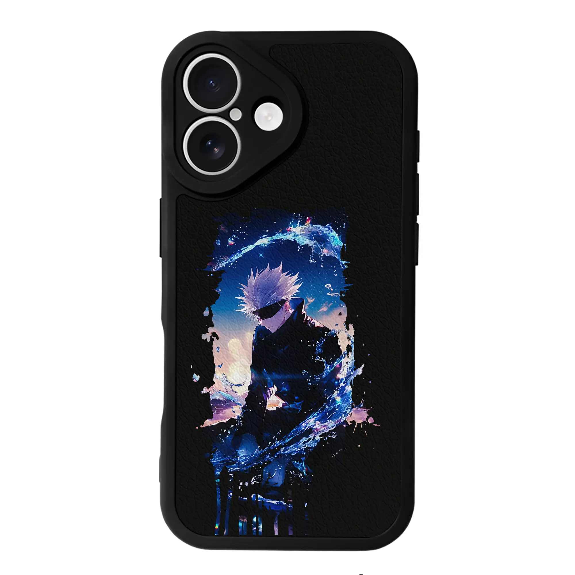 呪術廻戦 グッズ,五条 悟 - IPhone 16シリーズ対応 ・ シリコンスマホケース ・ レザー調 ・ 高精度フィット ・ 耐衝撃 ・ ワイヤレス充電対応 ・ 精密カット